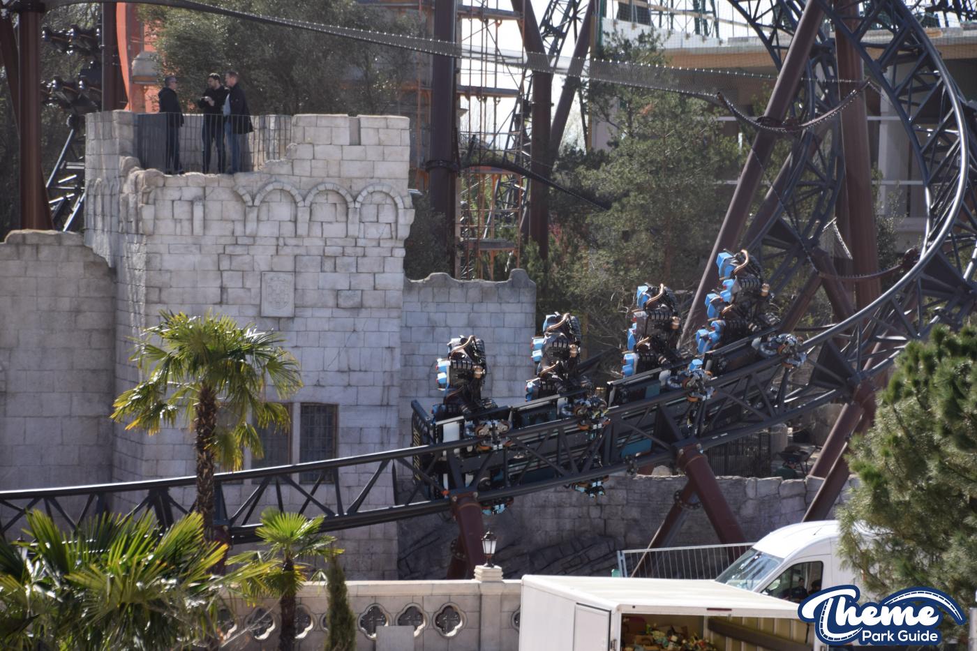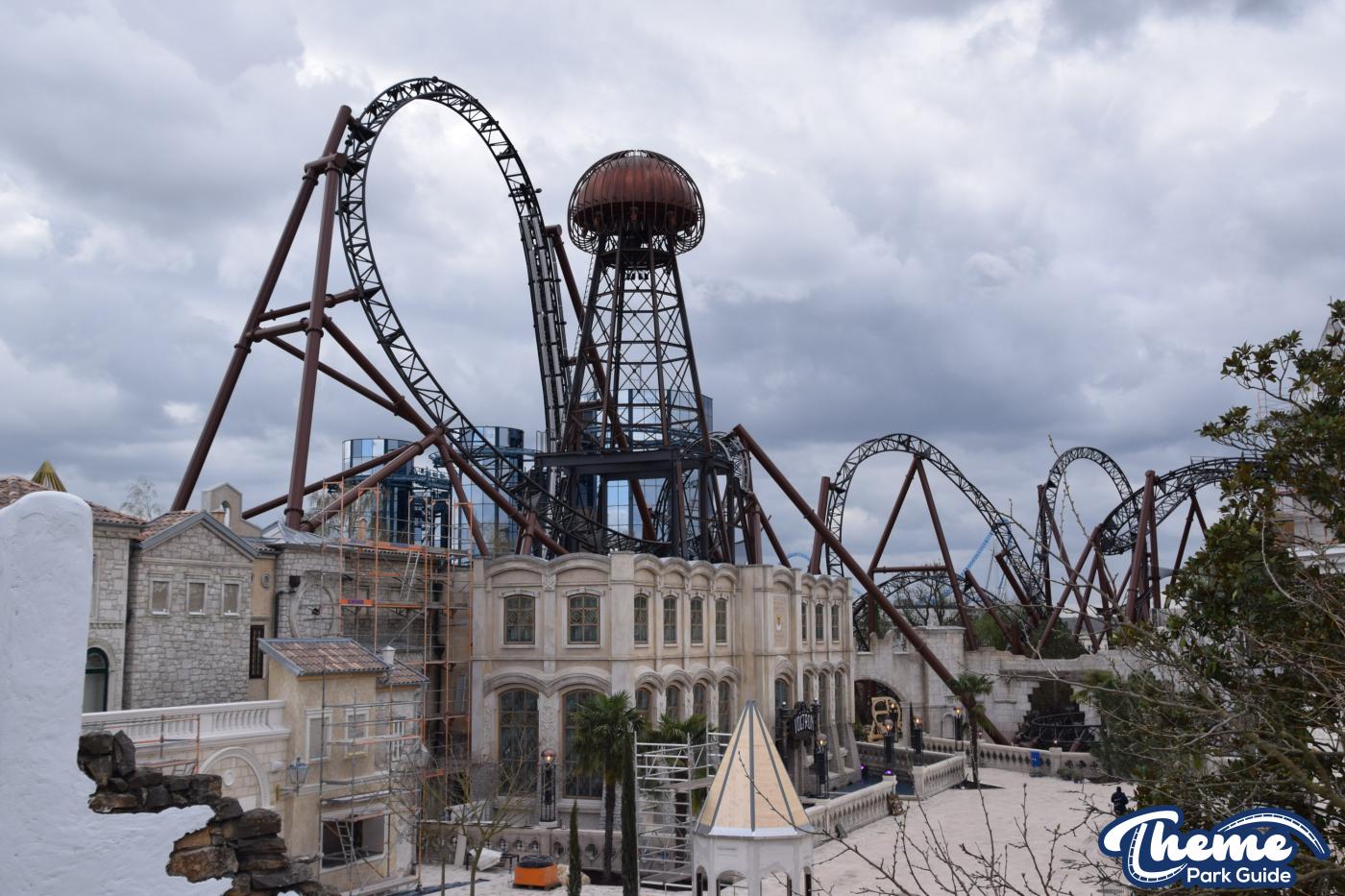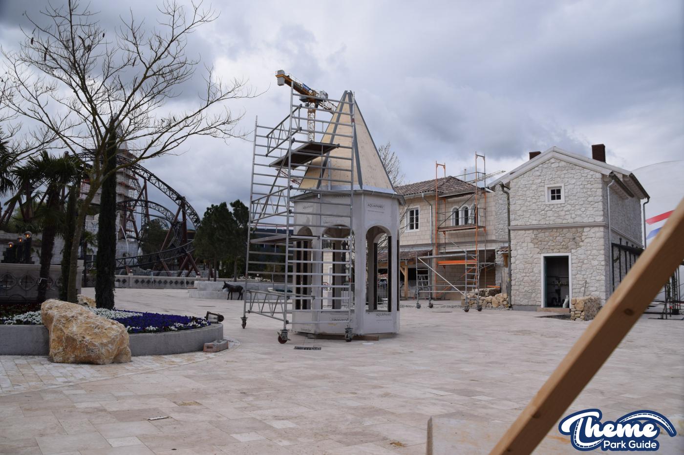 Built by Mack Rides in collaboration with Rimac, Voltron features multiple launches, seven inversions, and a record‑breaking steep launch angle. From inside the Croatian-themed area, visitors could see the coaster’s dramatic “Voltron” spires and explore parts of the immersive queue and themed landscaping.