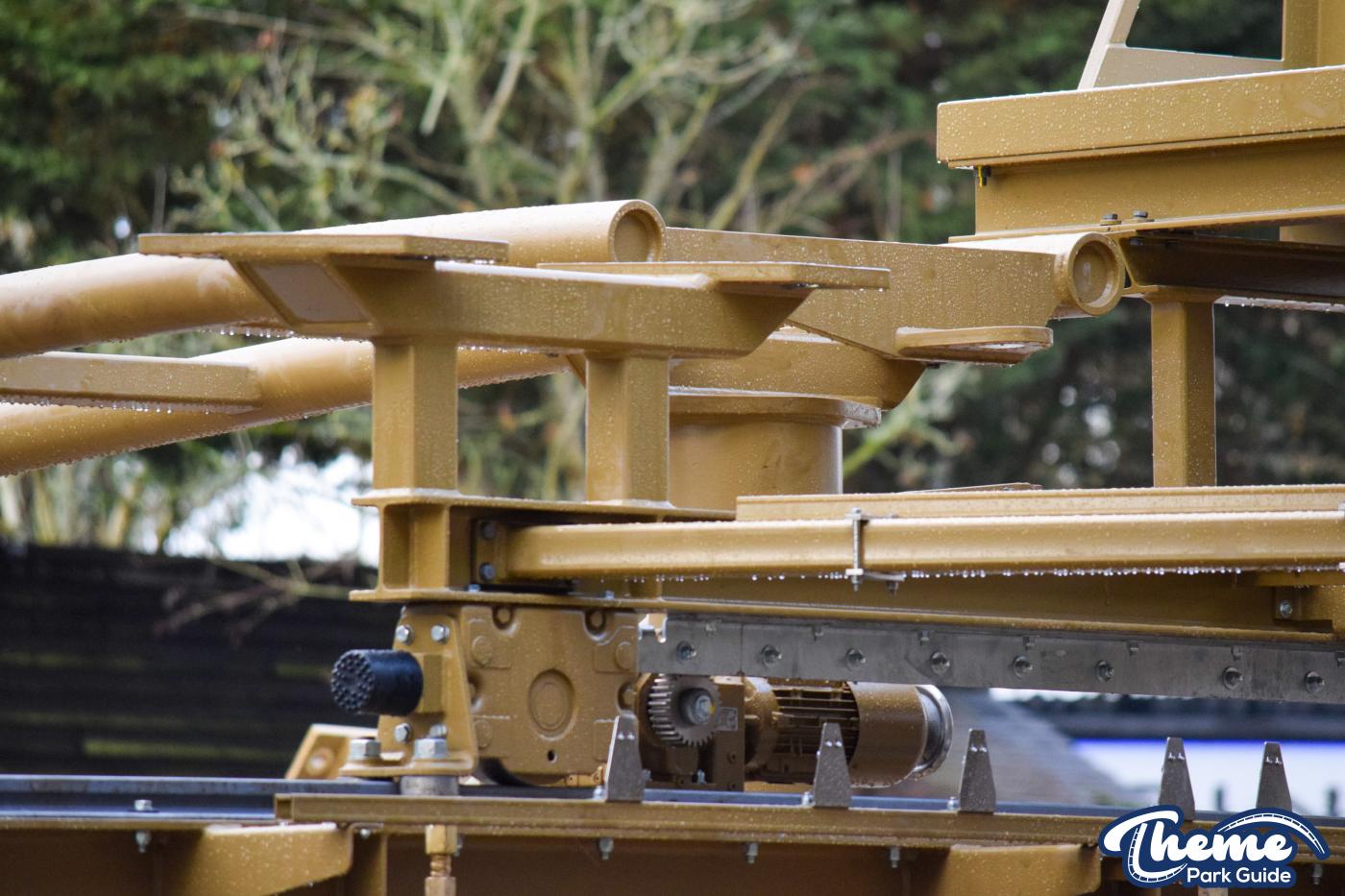 The first turn coming out of the station has also started to be installed. The transfer track system has been installed and then the first main bit of track in the circuit has been installed. Supports for the following sections of the track have been installed. It won't be long until these sections are installed and the track leading up to the lift hill is ready.