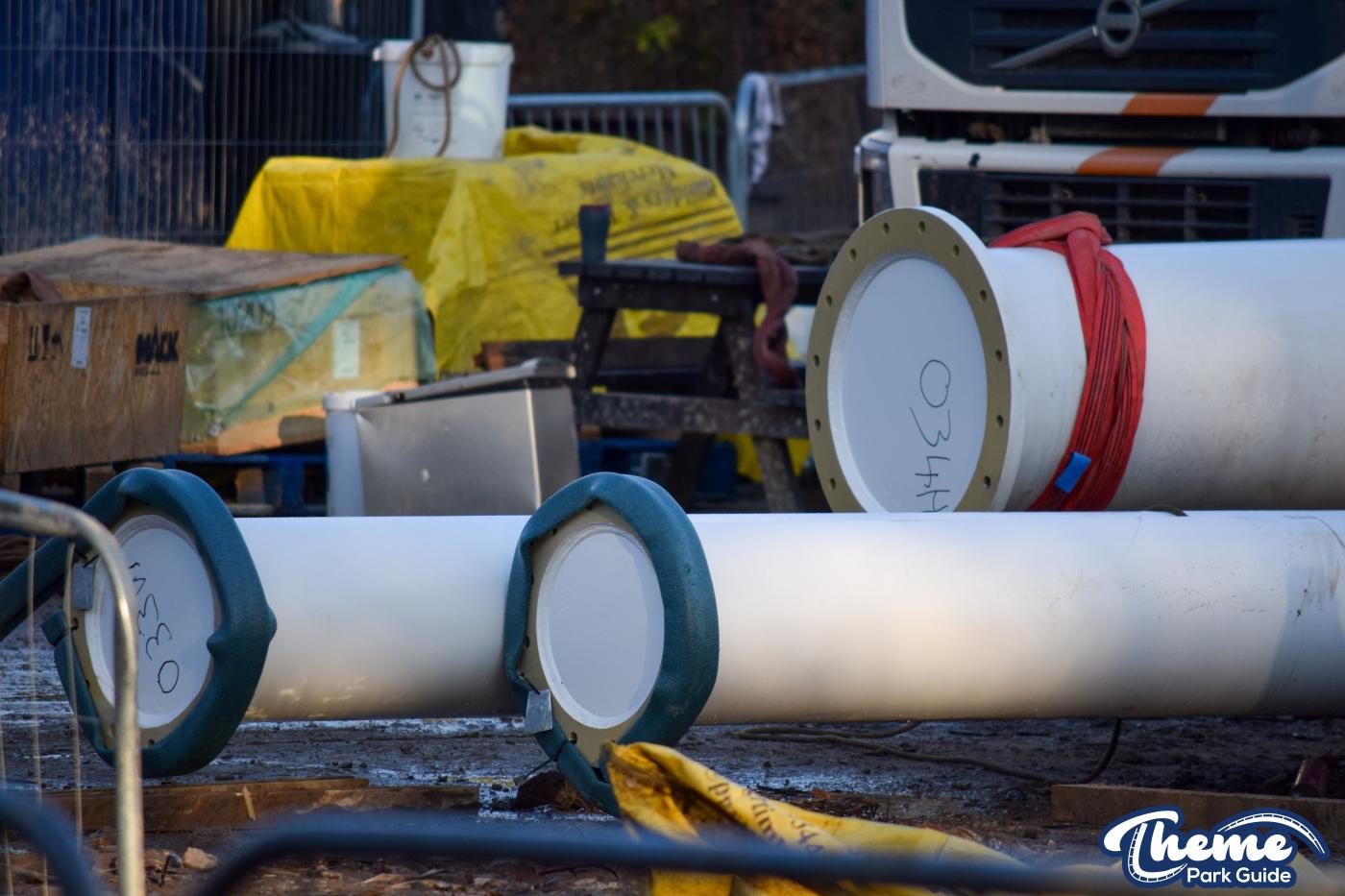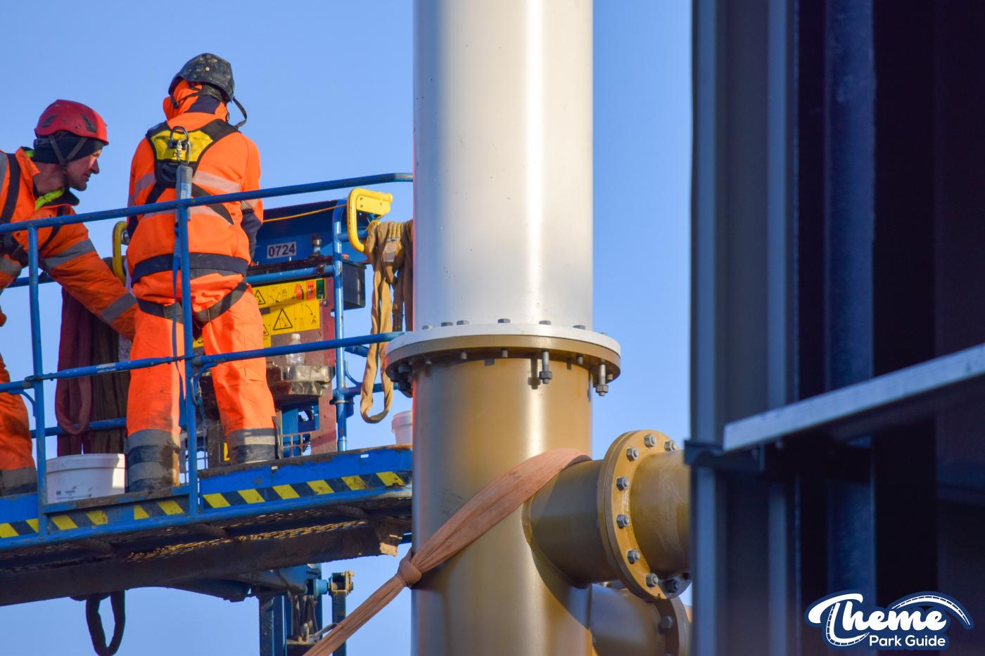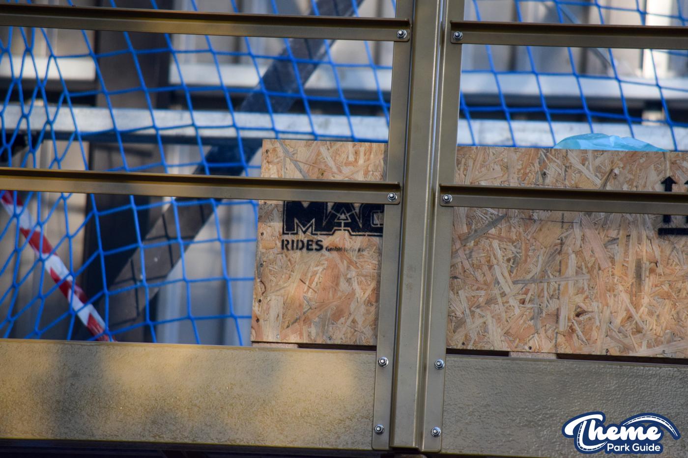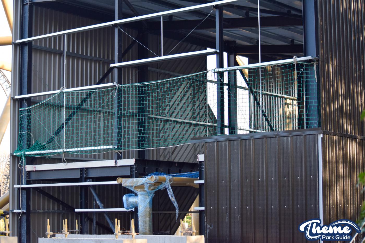 The track for the splash-down section of the rollercoaster has been installed, and the track leading into the break run has been completed. The final 15 seconds of the ride looks insane and we can't wait to ride it very soon.