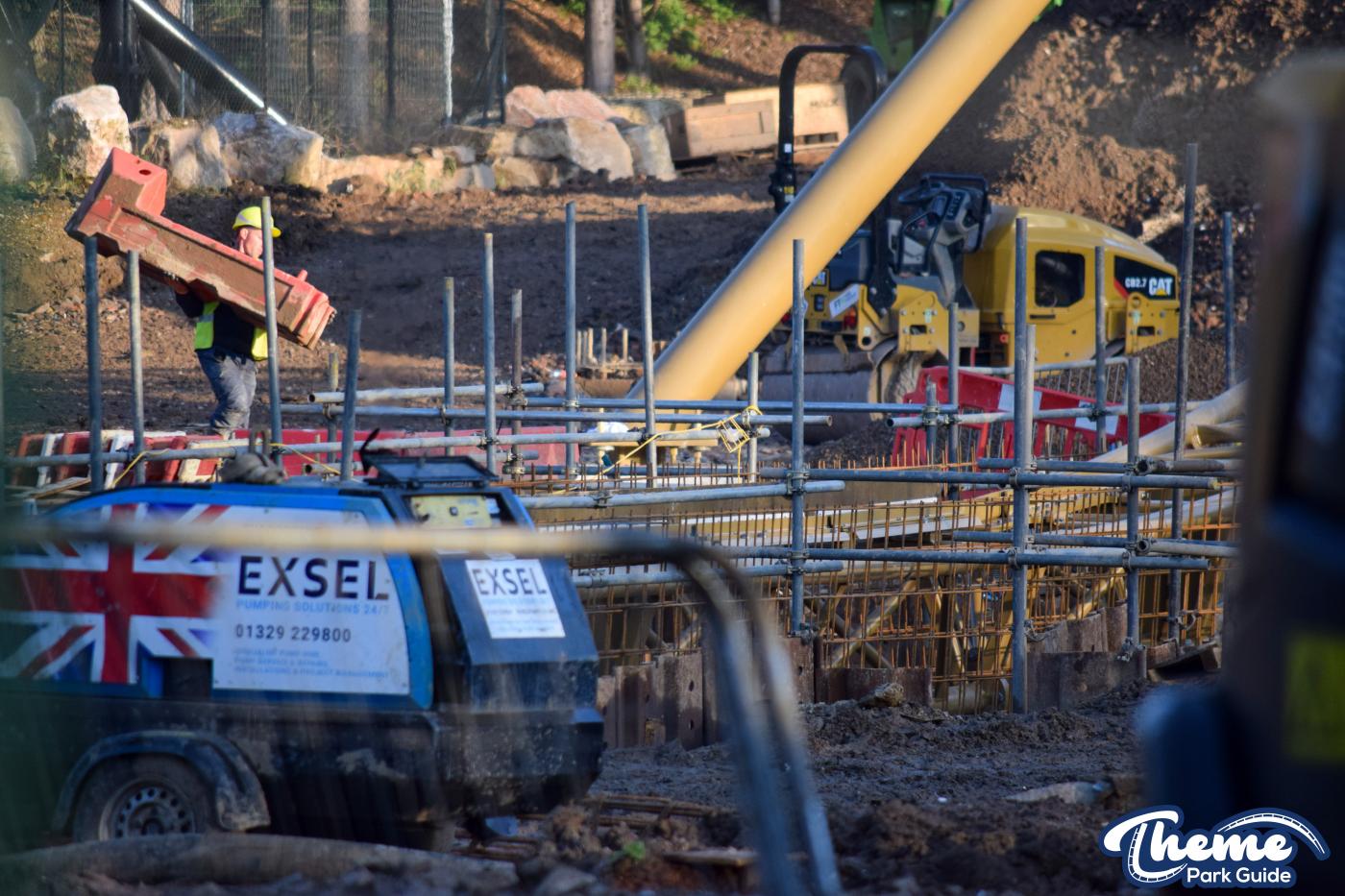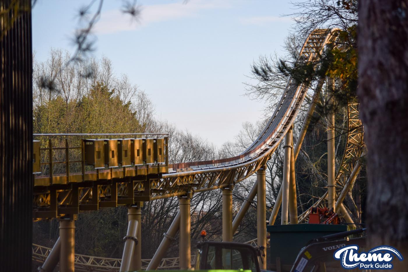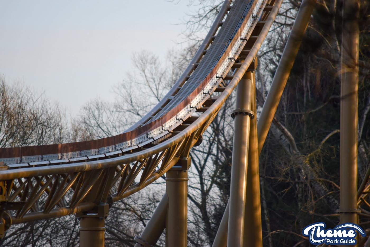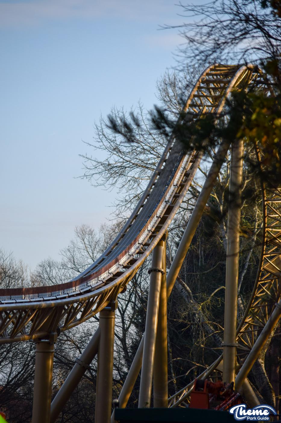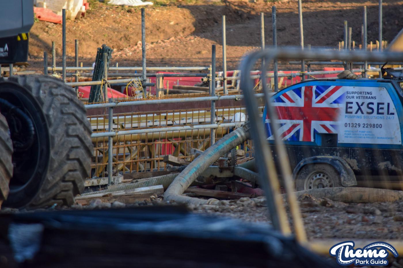 The track for the splash-down section of the rollercoaster has been installed, and the track leading into the break run has been completed. The final 15 seconds of the ride looks insane and we can't wait to ride it very soon.