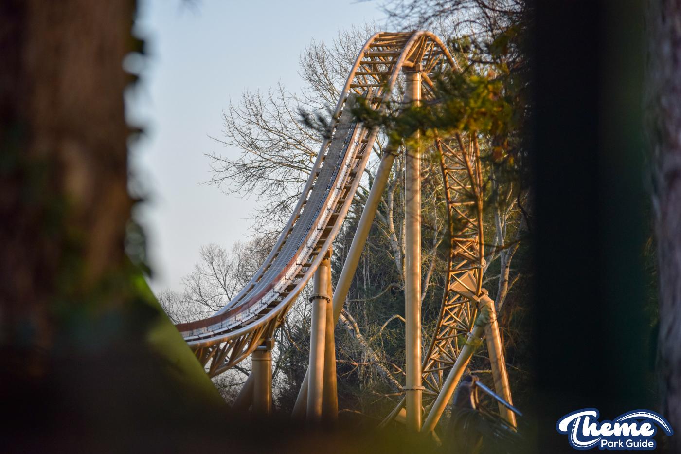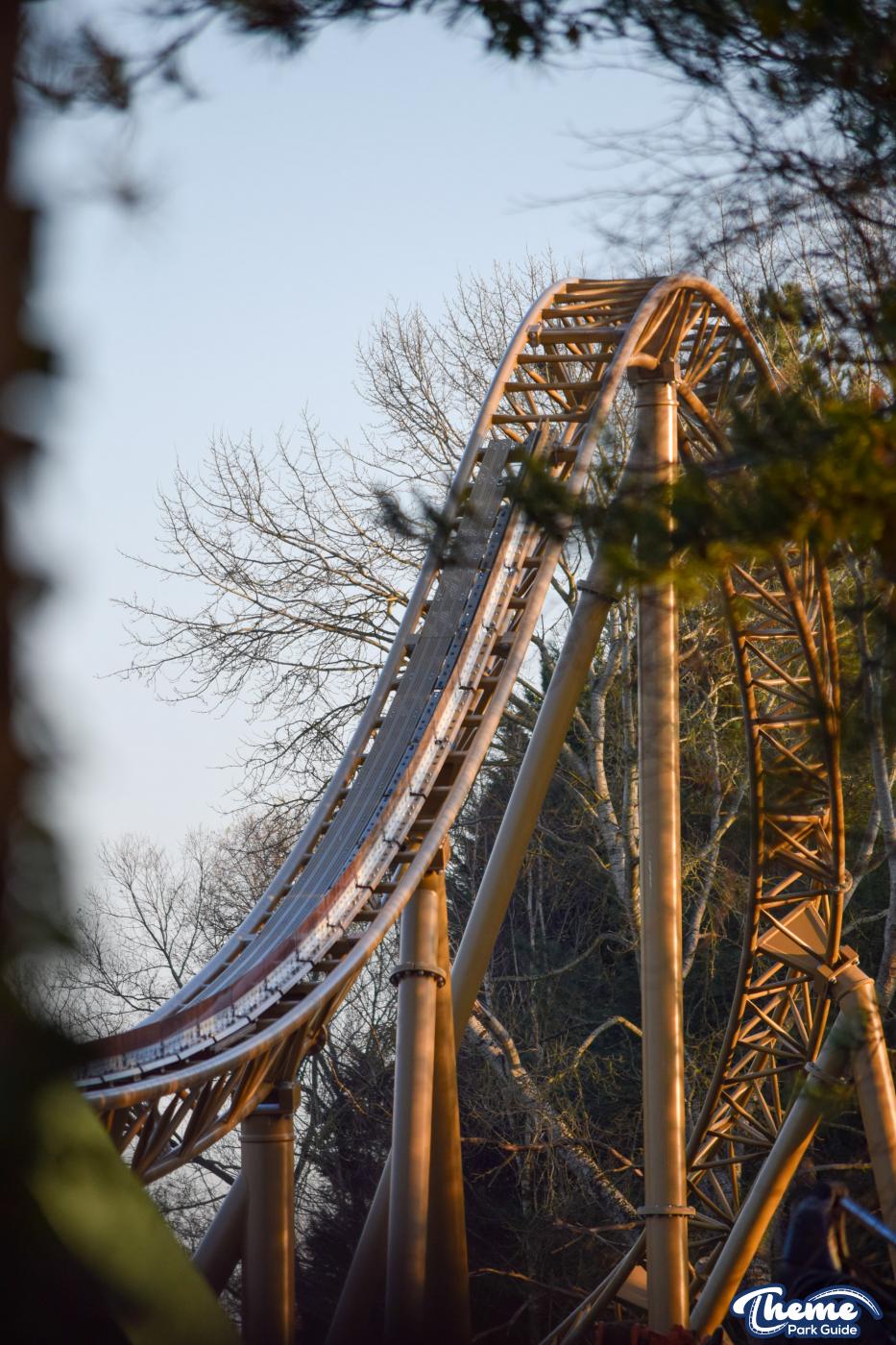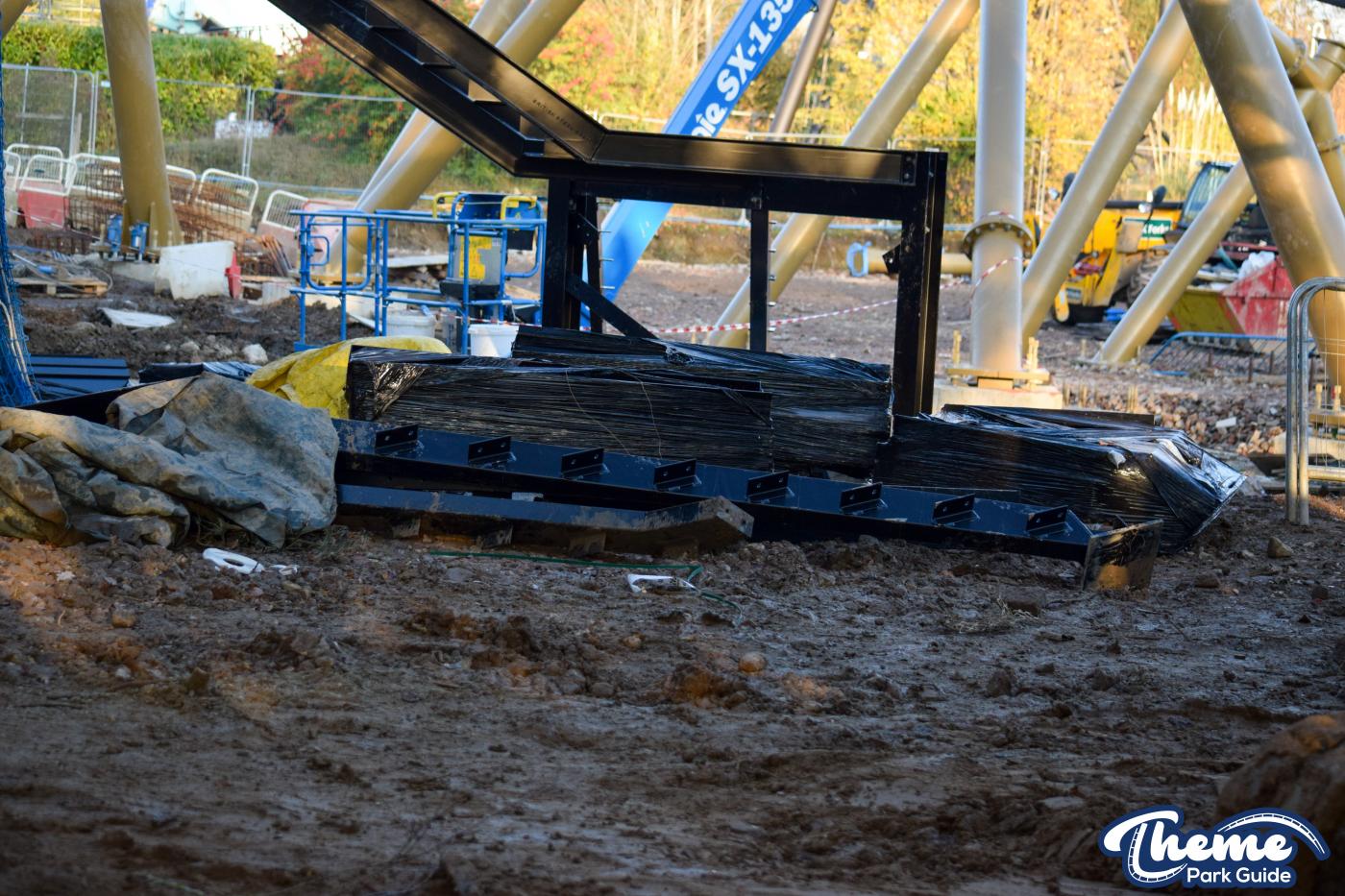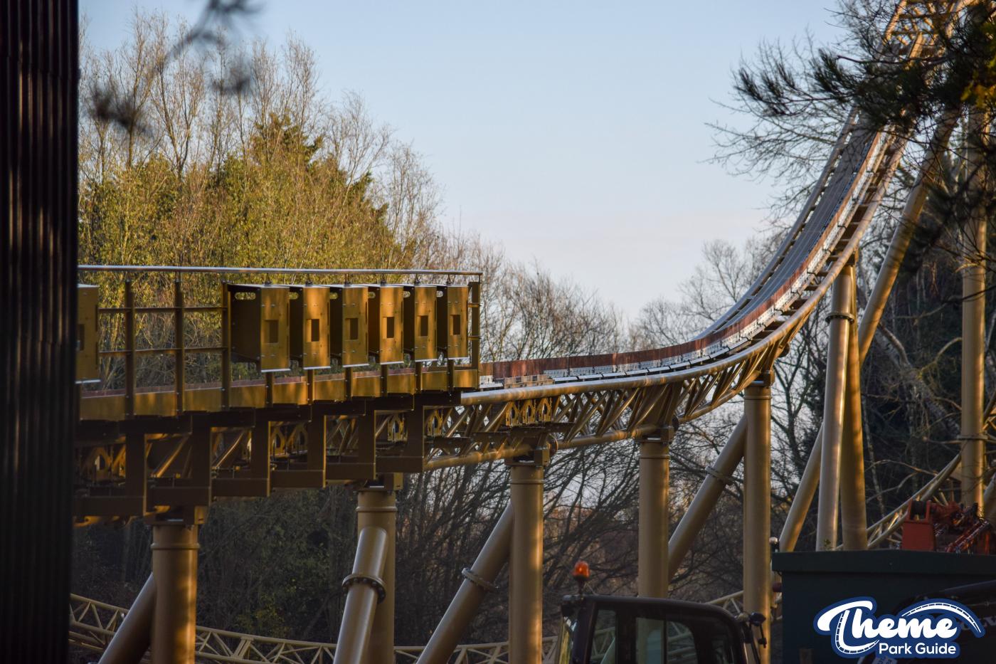 The track for the splash-down section of the rollercoaster has been installed, and the track leading into the break run has been completed. The final 15 seconds of the ride looks insane and we can't wait to ride it very soon.