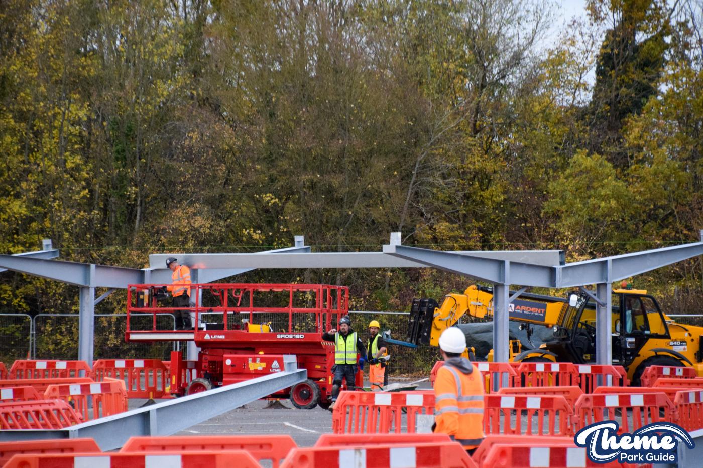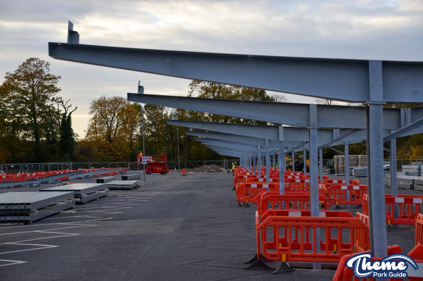 Work has officially begun on the installation of solar panels over the car parks at LEGOLAND Windsor Resort, marking a major step in the park’s ongoing sustainability efforts. Construction crews have started erecting large metal support beams across one of the main parking areas, which will form the framework for the new solar canopies.