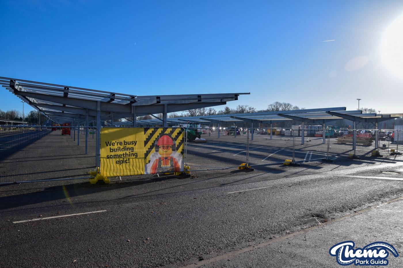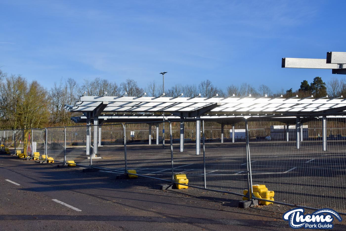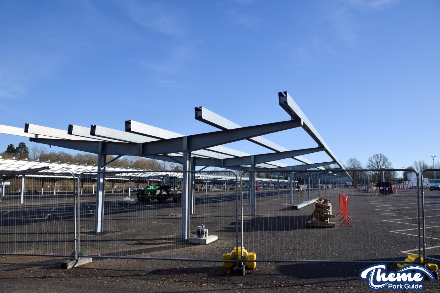 The installation of solar panels over the car park at LEGOLAND Windsor is progressing well. All of the support frames are now in place, and foundations for a new electric substation have been installed alongside the road. A number of solar panels have already been fitted, marking clear progress on the project.
