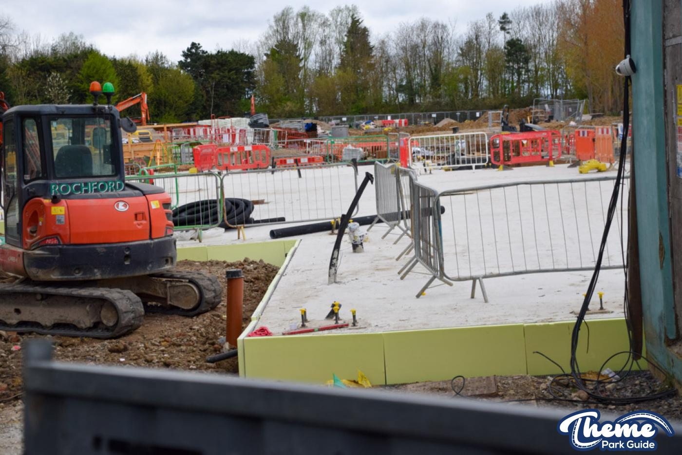 It’s incredible to see just how big this new ride and land is going to be, and we can’t wait to watch it take shape over the coming months. Looking at the foundations currently being poured for the coaster, it also appears that some of the side walls for the station building are beginning to be worked on.