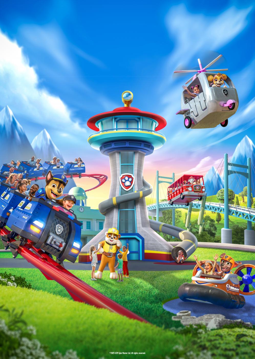 First look images unveiled today of the hotly anticipated new attraction - dedicated to the top-rated animated preschool series from Spin Master that airs on Nickelodeon and streams on Paramount+ - follow the installation of the iconic PAW Patrol Lookout Tower™, a real-life replica of the tower seen and played with by millions of children across the world. The Lookout Tower will form part of the new ‘Chase’s Mountain Mission’ ride, the attraction’s entry level rollercoaster.