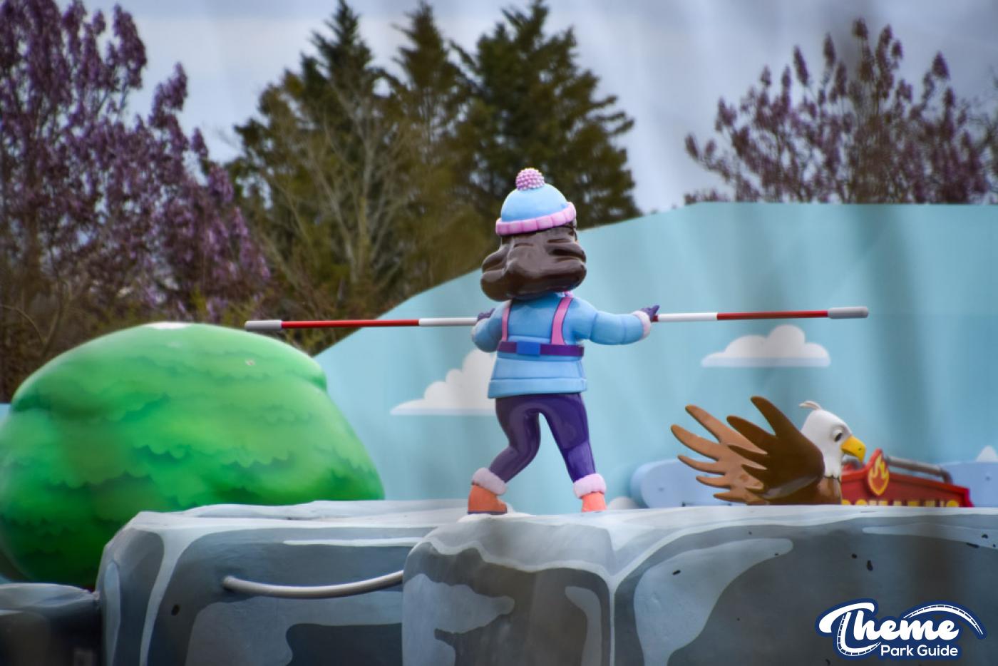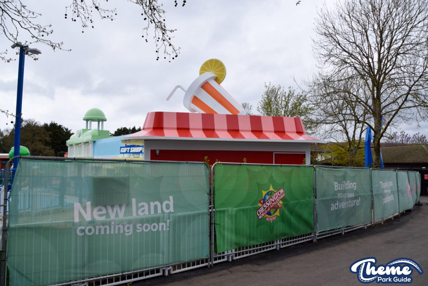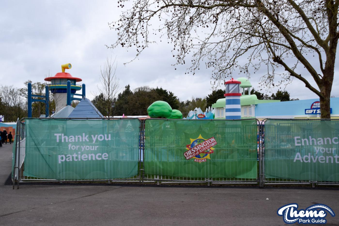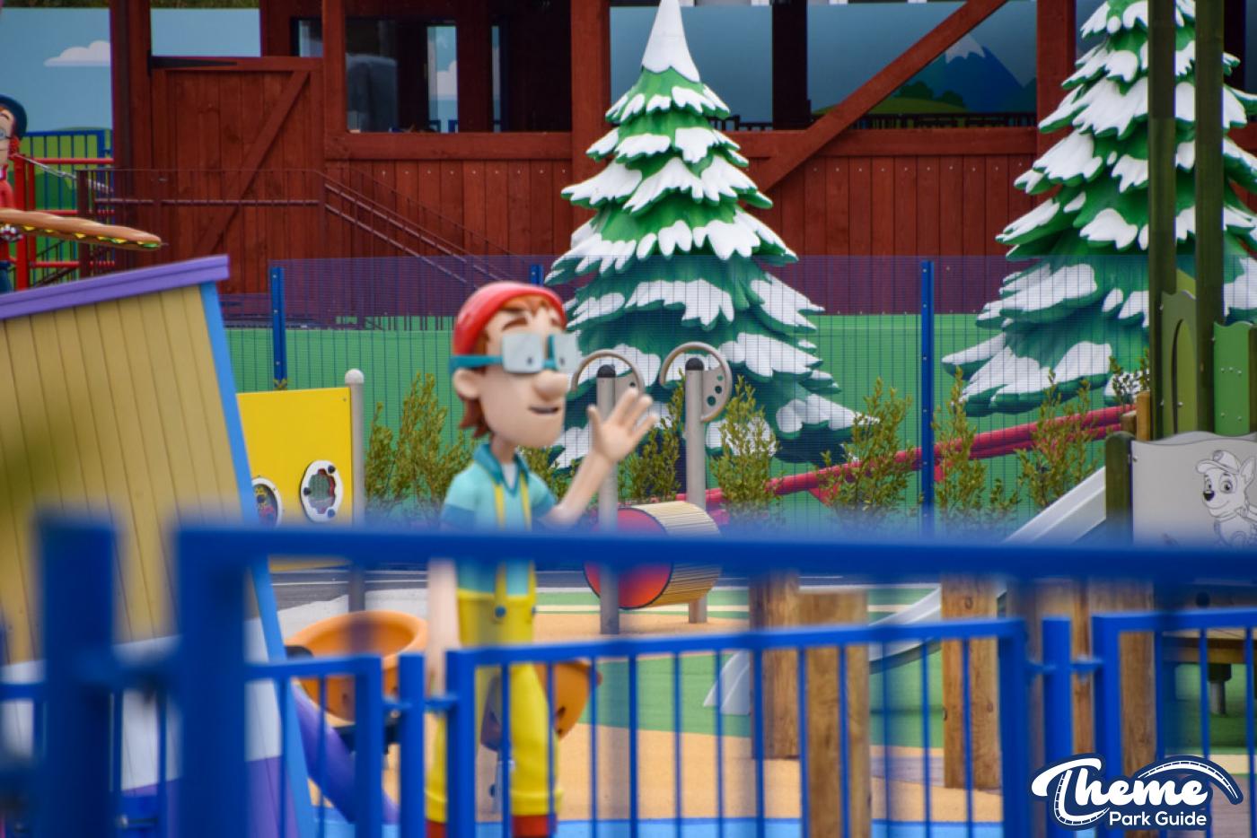 The overall theming and level of polish in this area are incredible and unlike anything we’ve seen at a Merlin theme park before. Since our last update, many more themed elements have been installed, and all of the ride and area signs have now been unwrapped. The entrance signage looks brilliant, and queue time boards are now being put in place, including one visible for Chase’s Mountain Mission near the entrance.