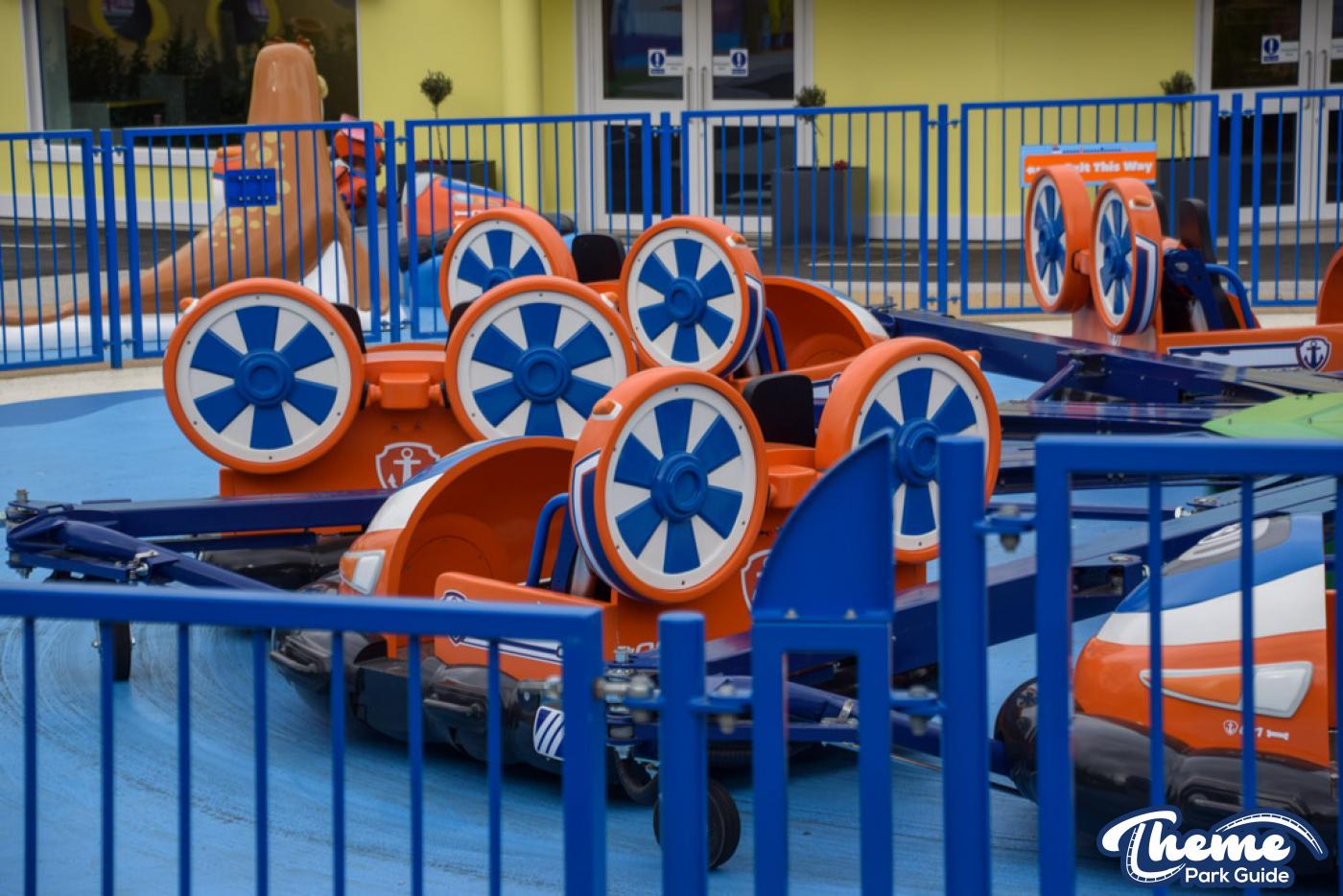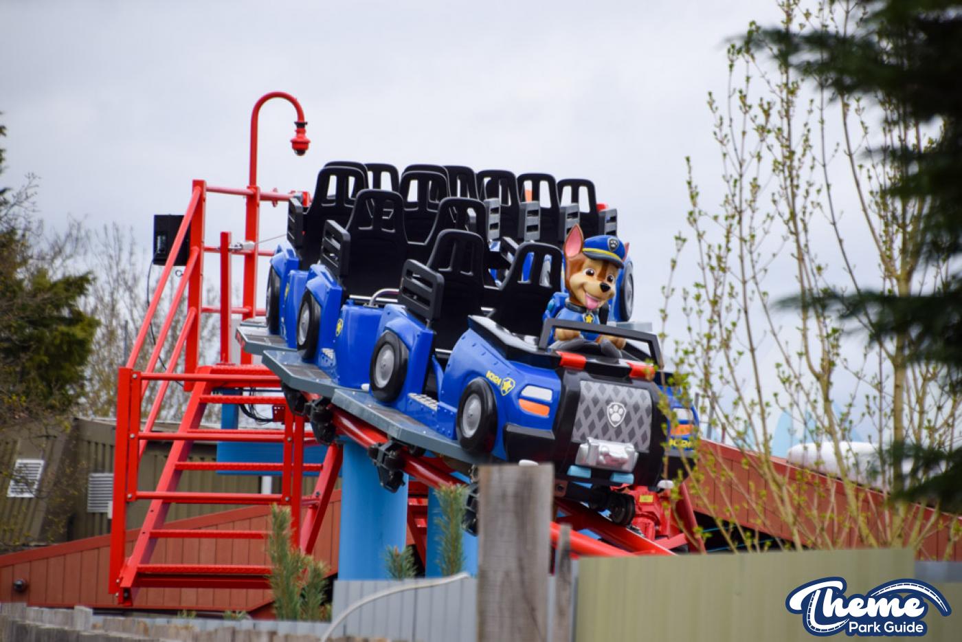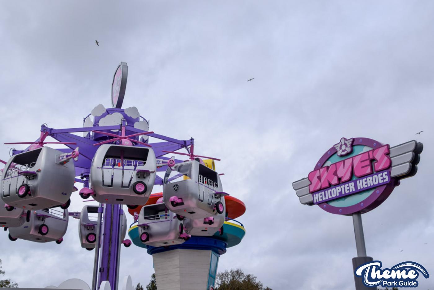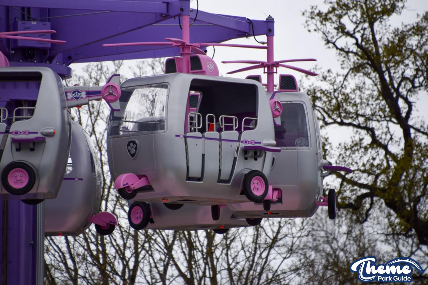 With the Easter half term here, we’ve spotted two of the new attractions testing in the World of PAW Patrol land. For the first time, both Chase’s Mountain Mission and Skye’s Helicopter Heroes have been seen testing. Chase’s Mountain Mission looks fantastic, with some really cute theming on the train, especially the traffic cones on the back, while Skye’s Helicopter Heroes looks like great fun, even if it may be a bit of a squeeze for adults.