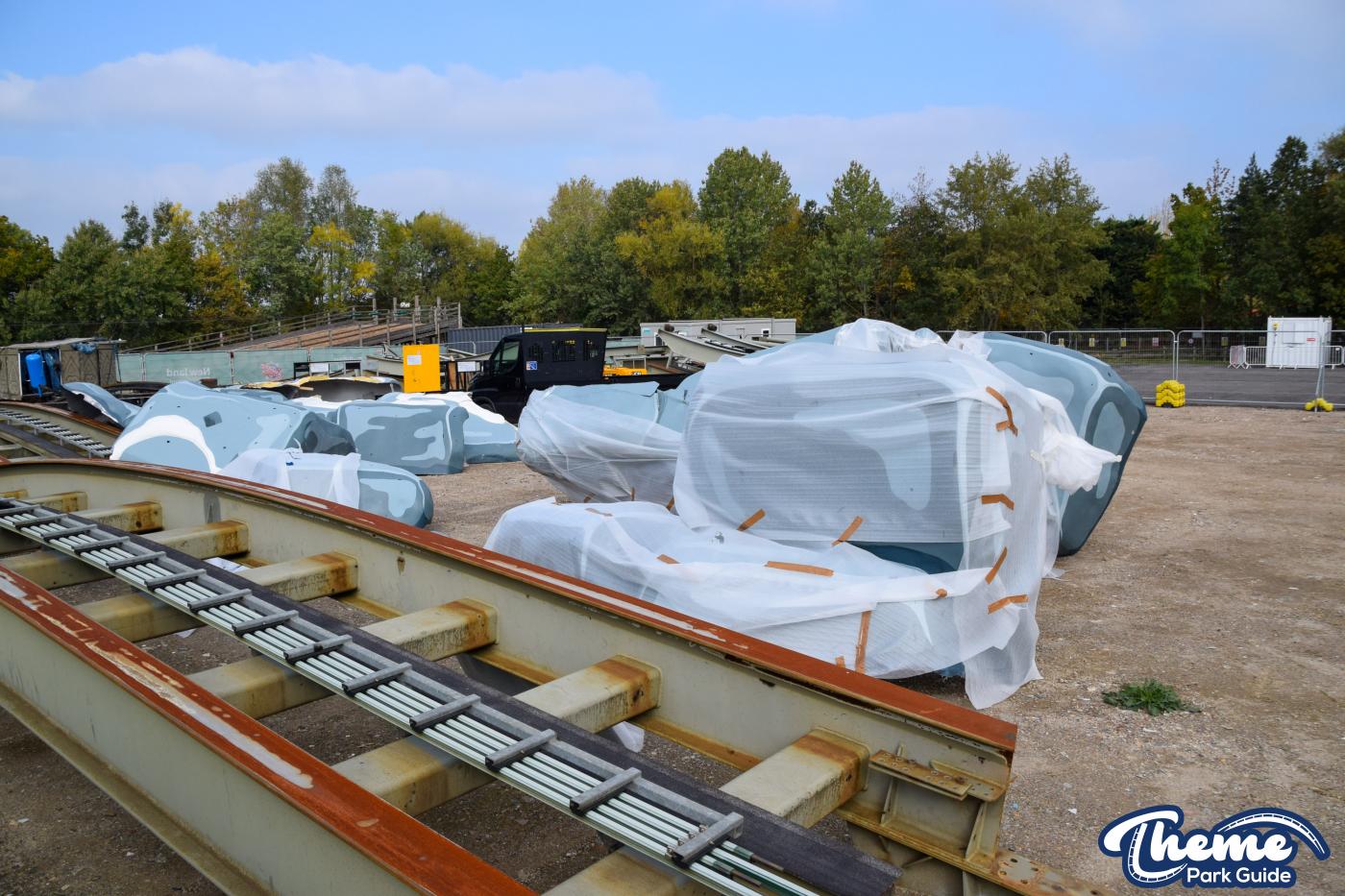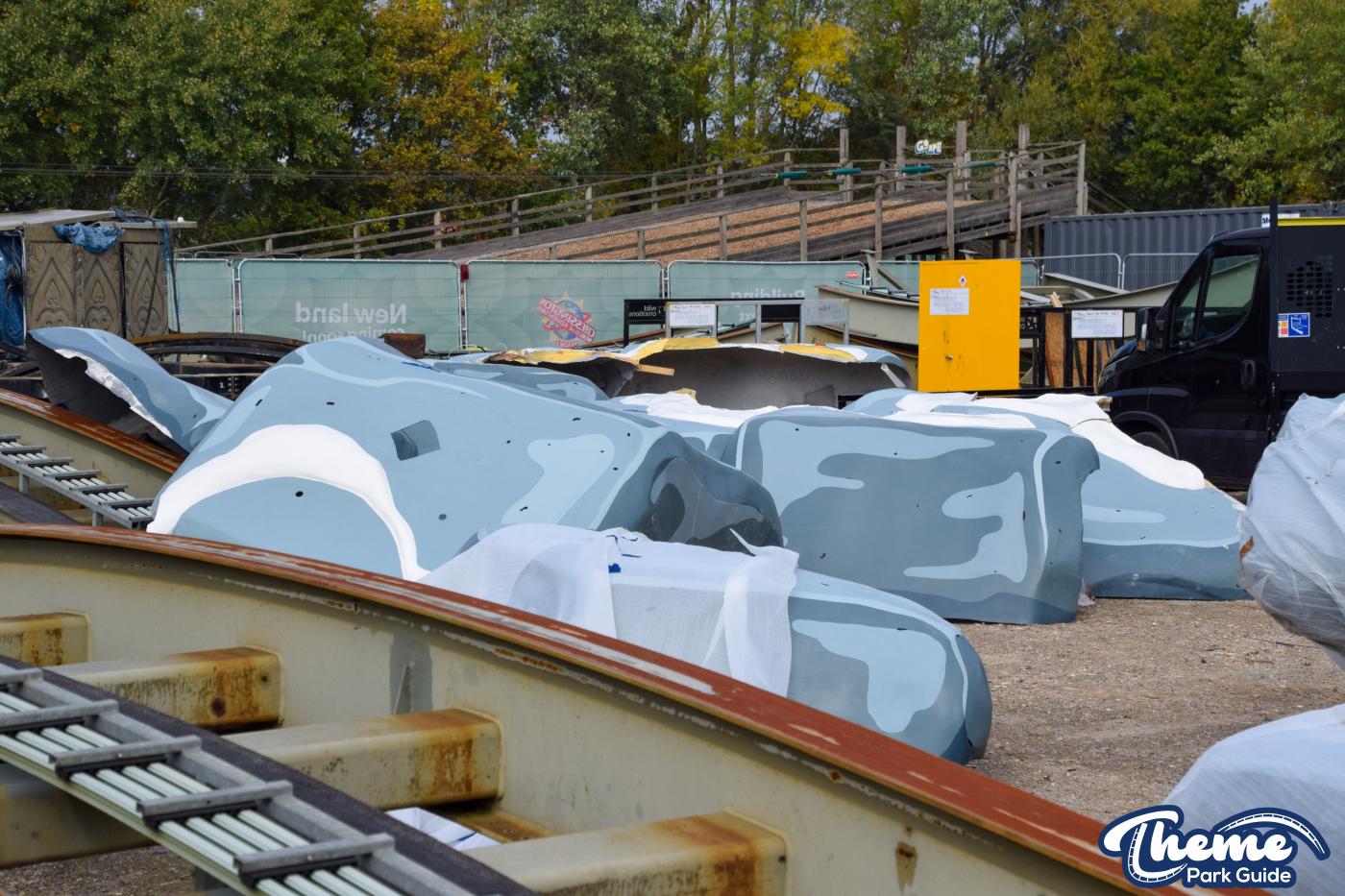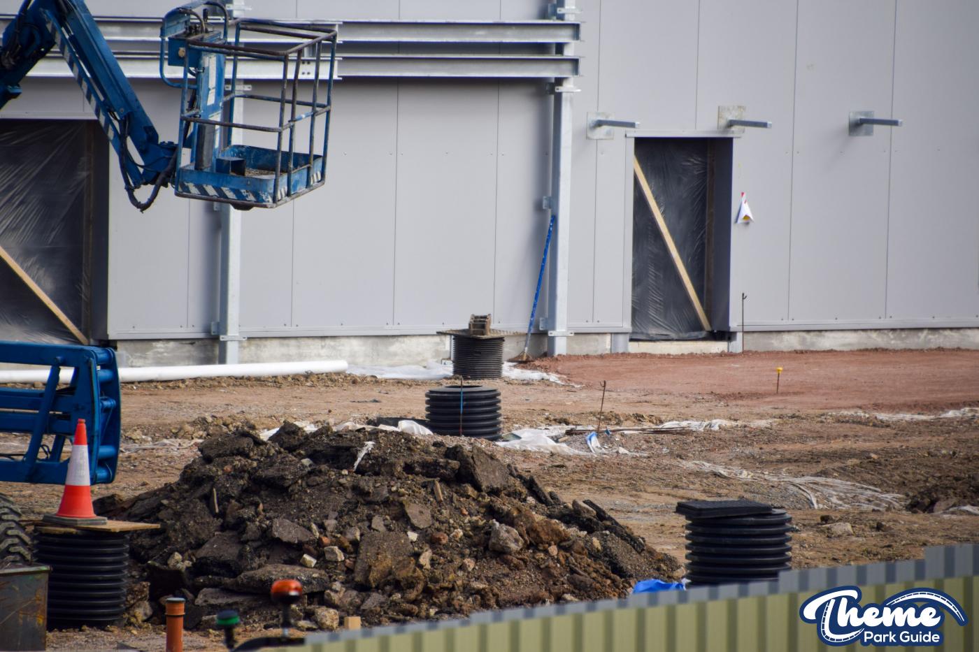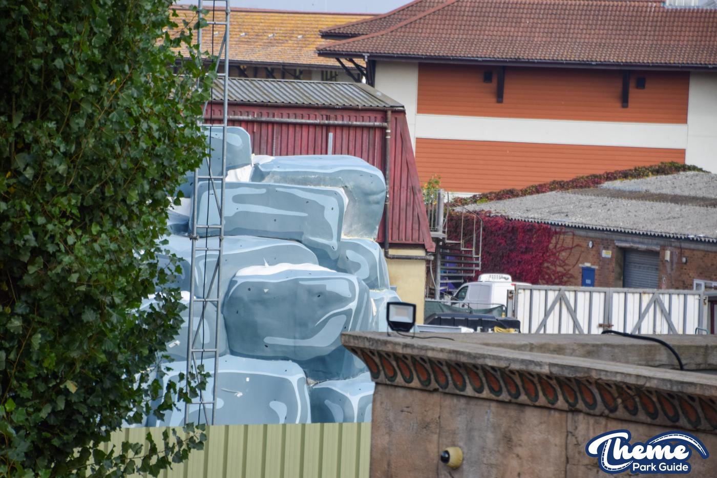 Work has now begun on mapping out the exit paths for the new rollercoaster, offering the first hints at how guests will flow through the area once the ride opens. Theming is also starting to take shape, with large rock mountain structures being installed around the coaster site, signalling the beginning of immersive environmental detailing.