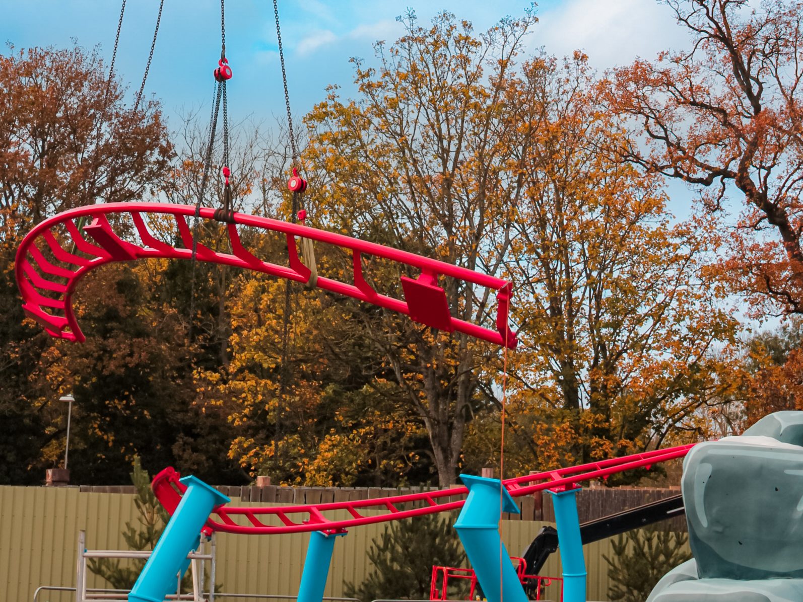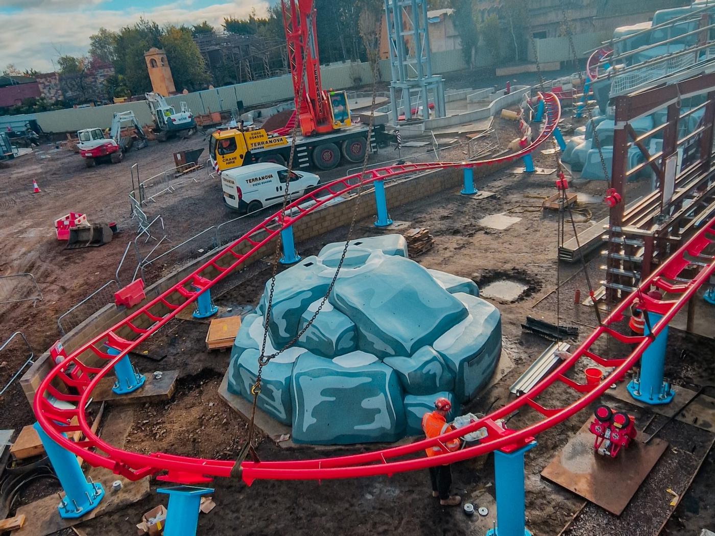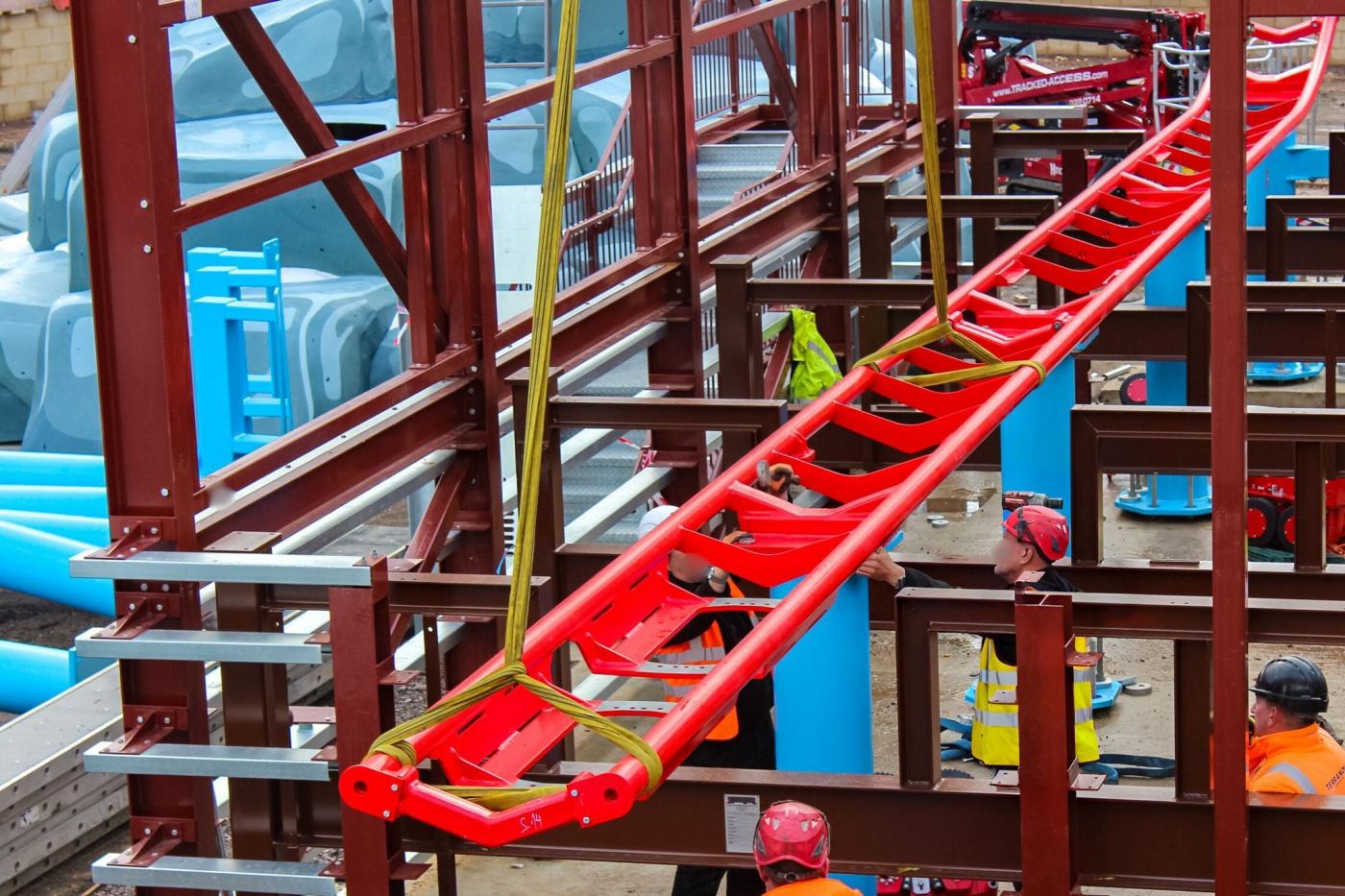 That’s right — the entire rollercoaster track is now fully installed, all completed in just a few days! The bright and playful colour scheme really captures the spirit of Adventure Bay, and it’s already looking fantastic.