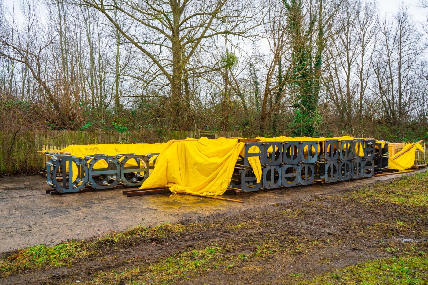 These are the ground pins the supports will be connected to and are the first new rollercoaster parts to arrive on the island since the construction of THE SWARM in 2011