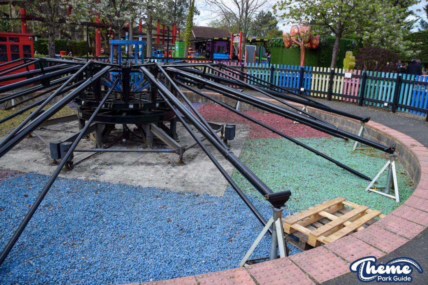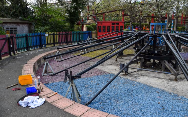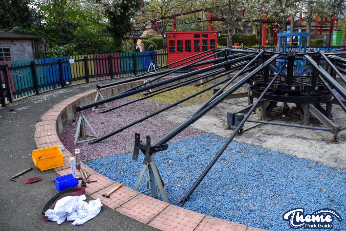 Elmer’s Flying Jumbos at Chessington is now being reassembled for the 2026 season. The ride’s arms have been freshly repainted, with brackets for the cars also receiving a refresh and being reinstalled.