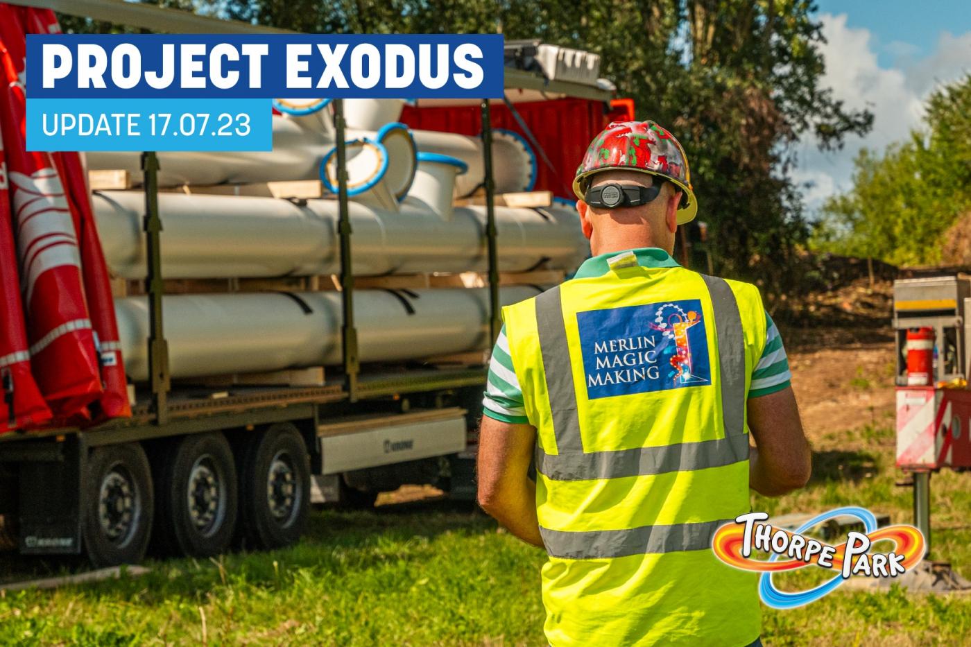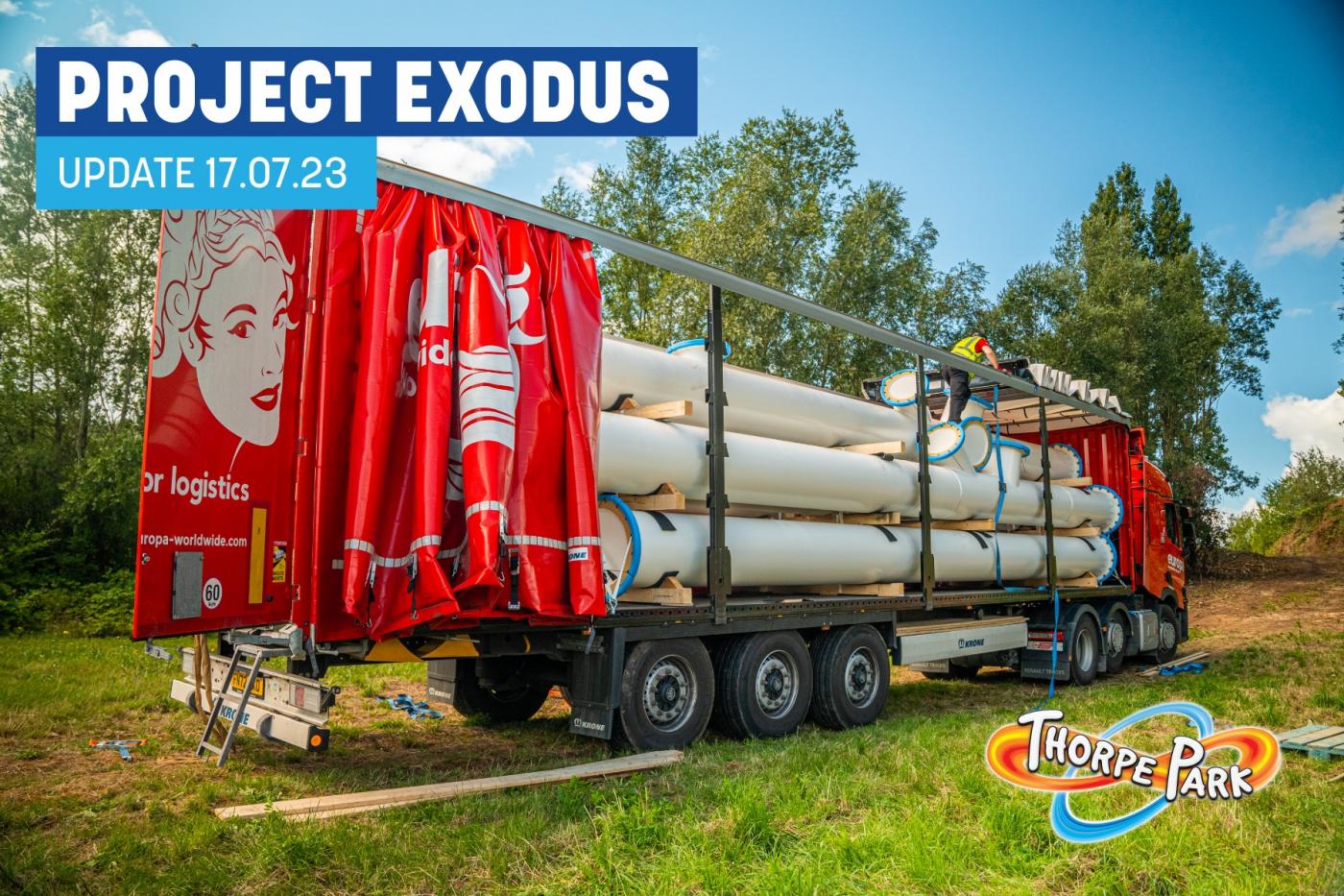 Thorpe Park has today received a delivery of supports for the new rollercoaster built by Mack Rides. This is the first delivery of many which looks to be being stored on the island next to The Swarm.