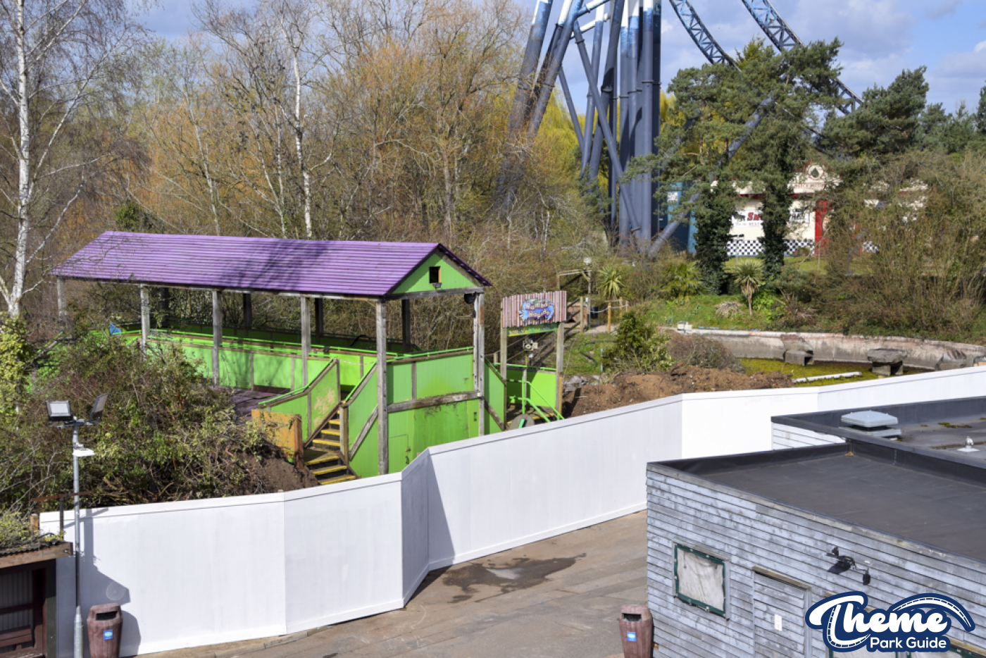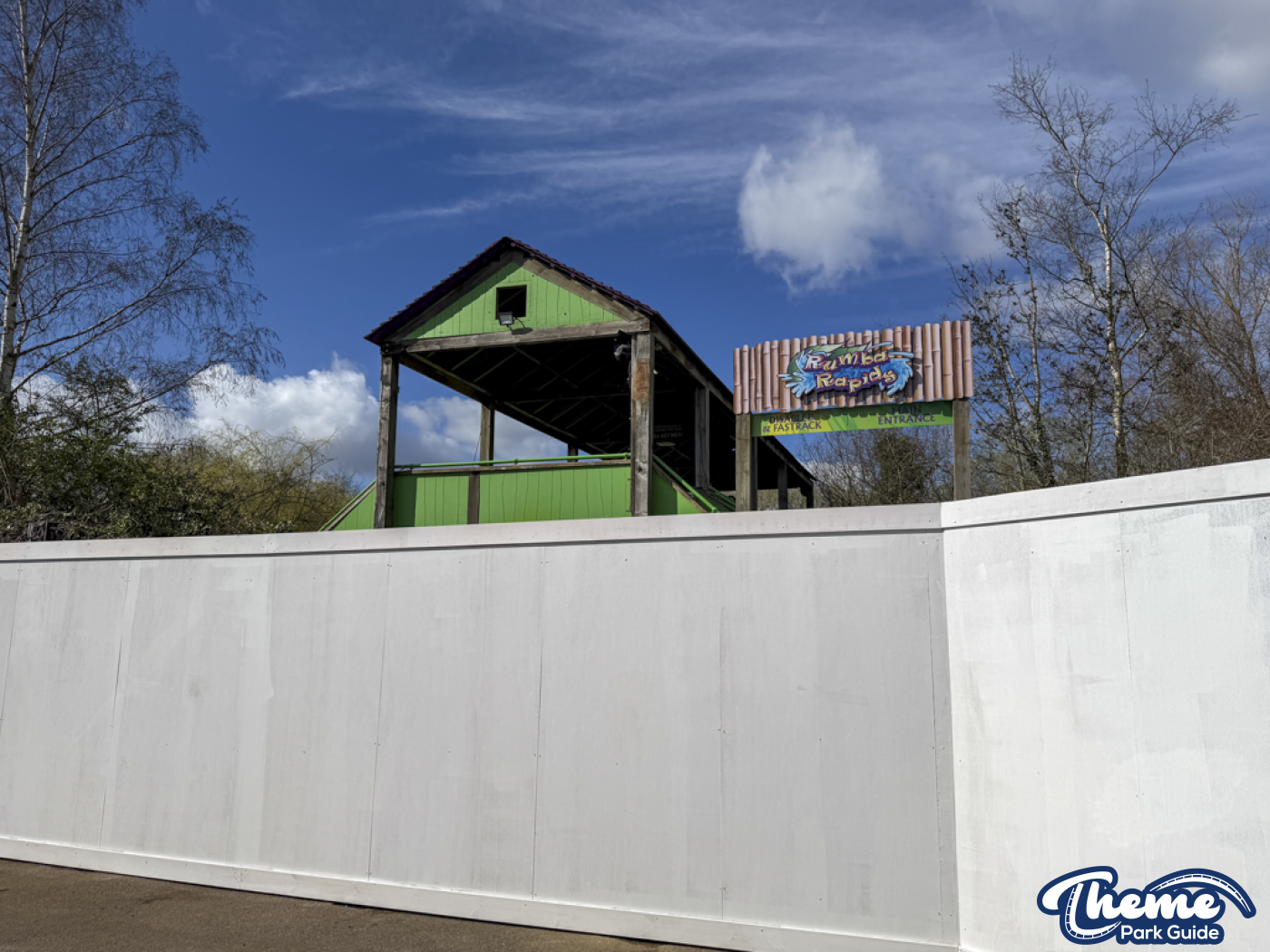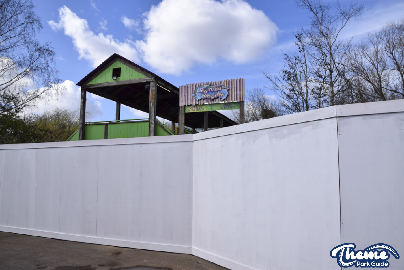 Following Thorpe Park’s announcement that Rumba Rapids will be leaving the park, visible signs of its removal have already begun to take shape. Construction walls are steadily going up around the attraction, with white barriers now surrounding the ride’s entrance and sections of the nearby viewing area. By next Saturday, during the annual passholder day, it’s expected that the remaining viewing areas will also be sealed off, likely hidden behind additional walls.