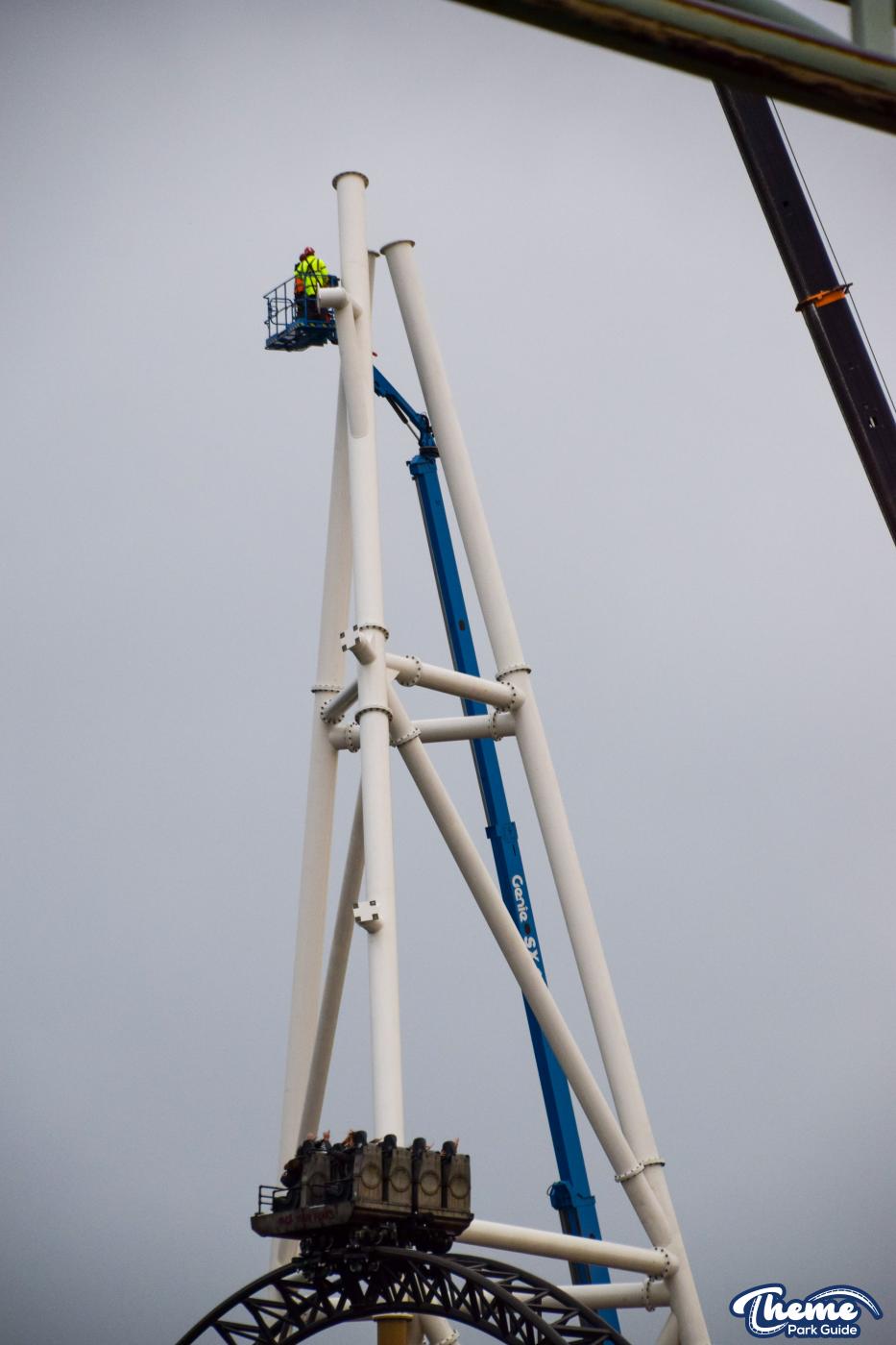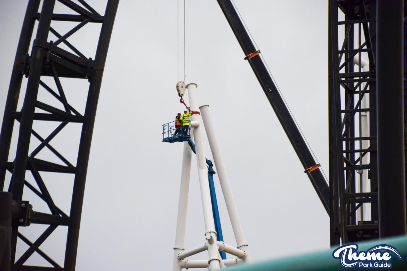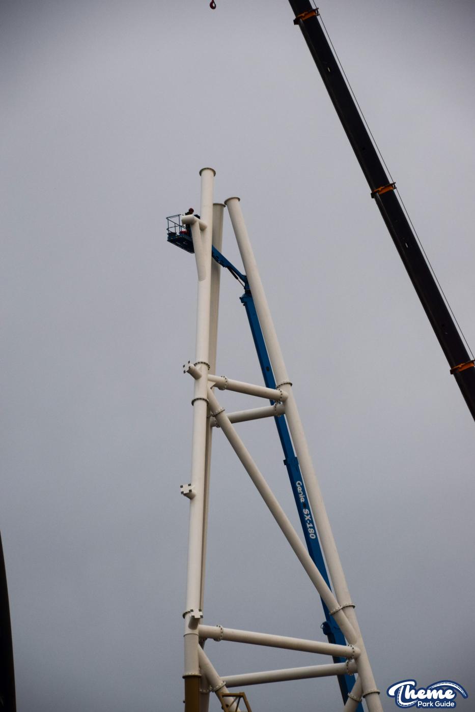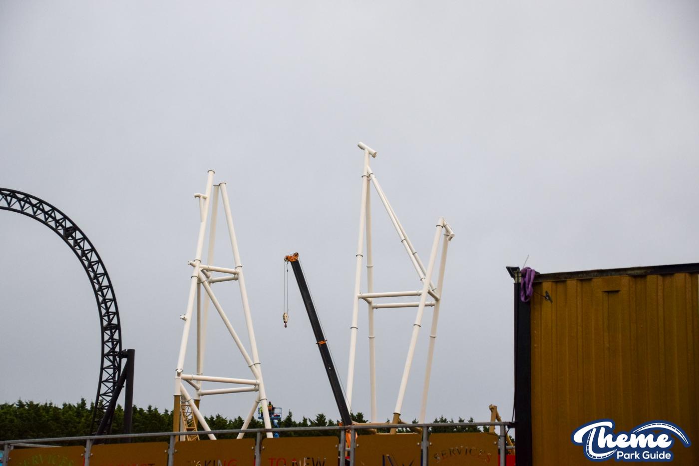 Of course, the main point of focus for the construction site at the moment is building the two towers for one of the inversions. When we visited the park yesterday the second tower was tiny however on a passing-through visit today. It has grown in size and is almost as tall as the main structure standing at 165ft.