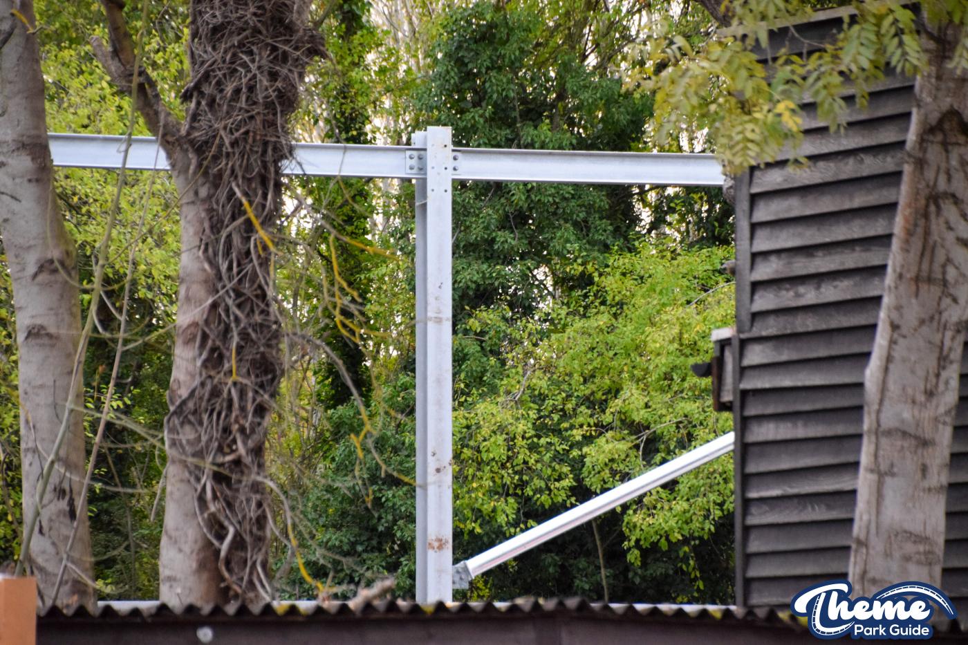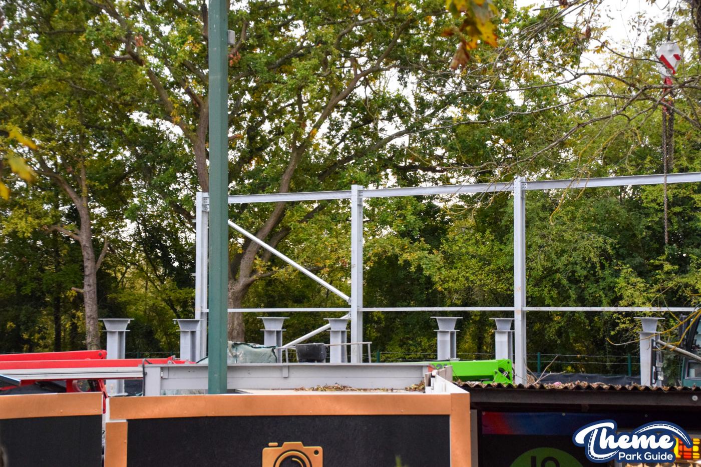 Huge progress has today been made on the maintenance building for the rollercoaster with more steel structures installed along with the metal supports that will hold the track for the maintenance building. No track has been installed yet but we expect it will be installed before the building is completed and a roof is installed.