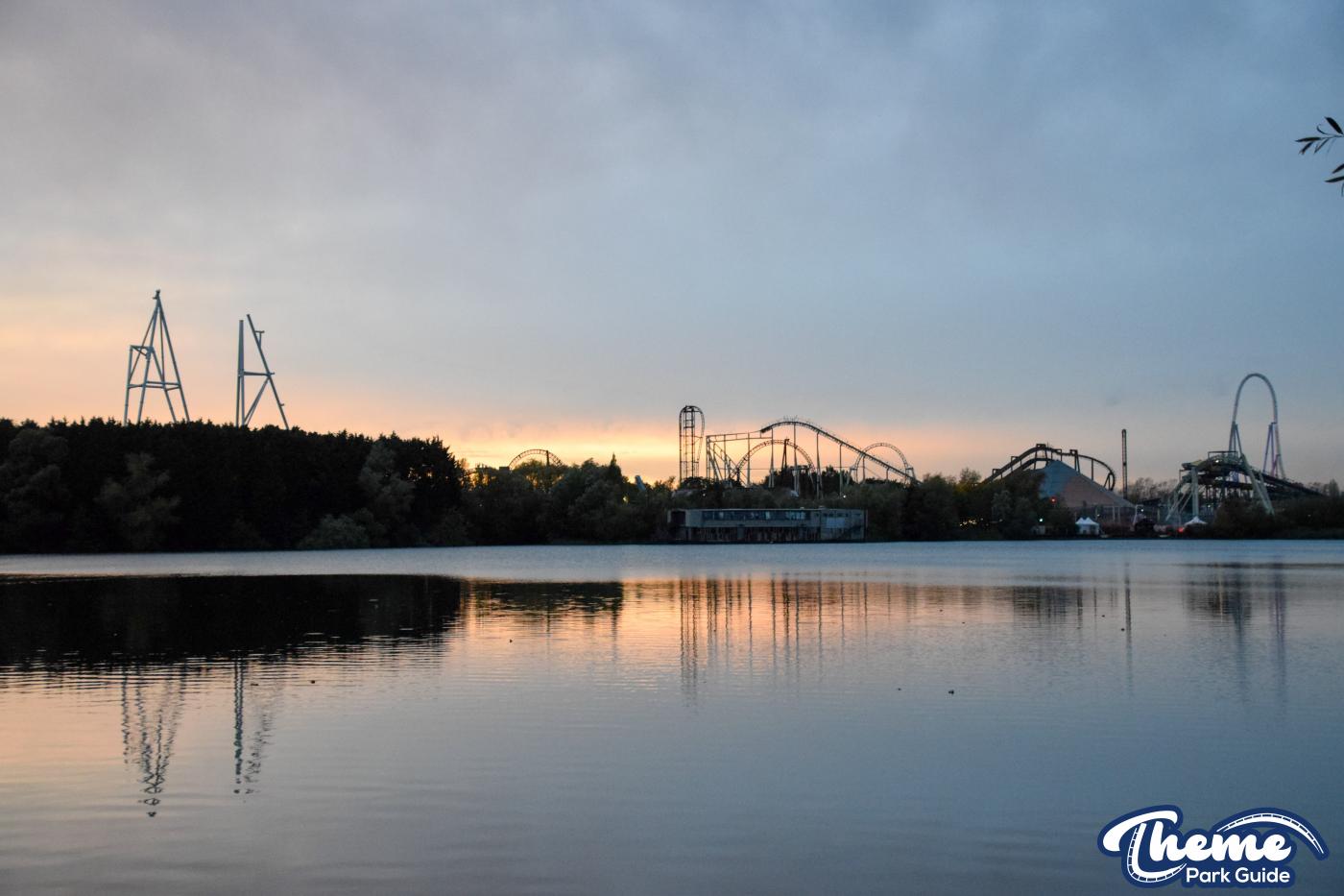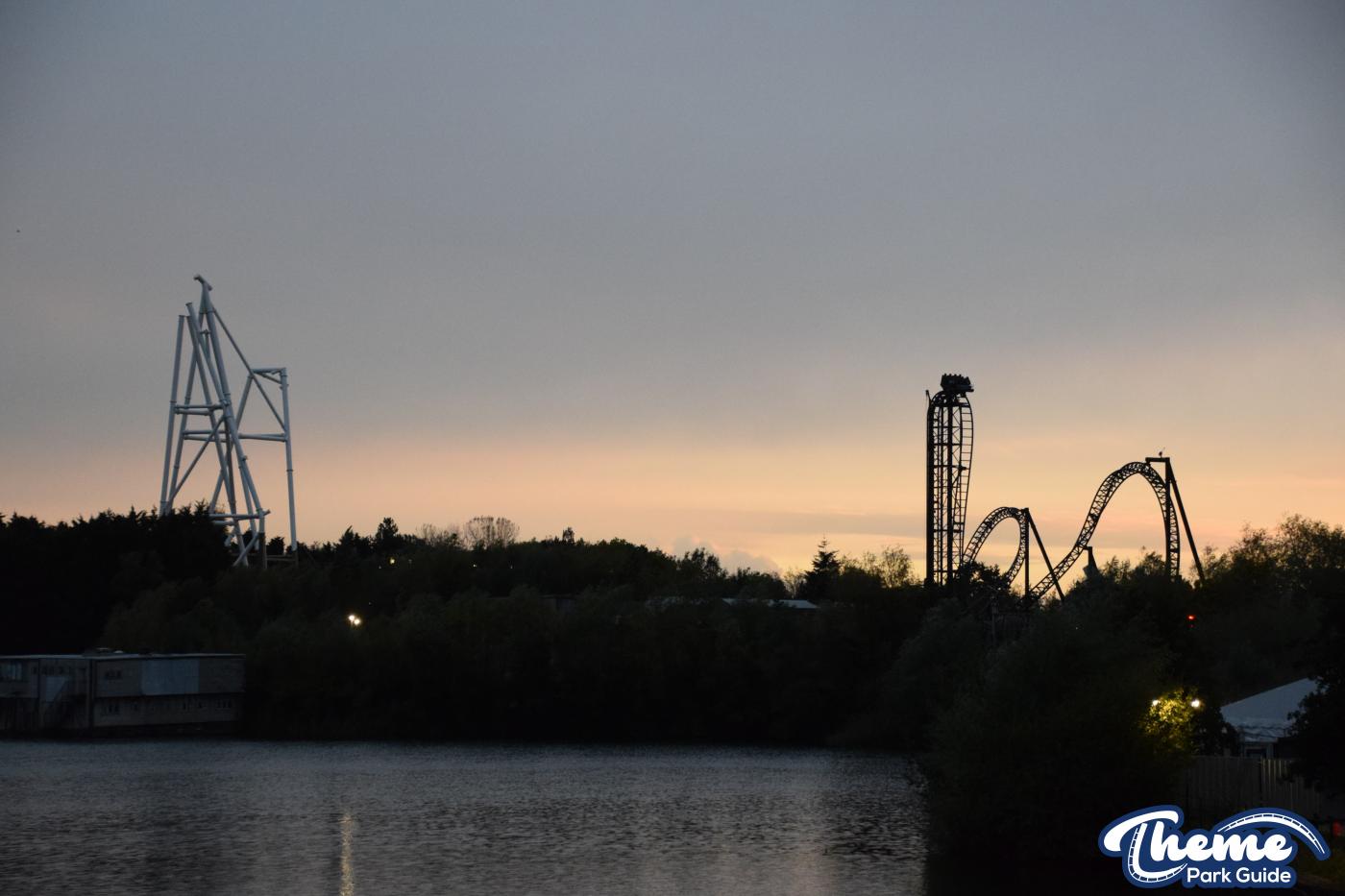 The sun has set over Thorpe Park which marks the end of another busy of construction at Project Exodus (Hyperia)