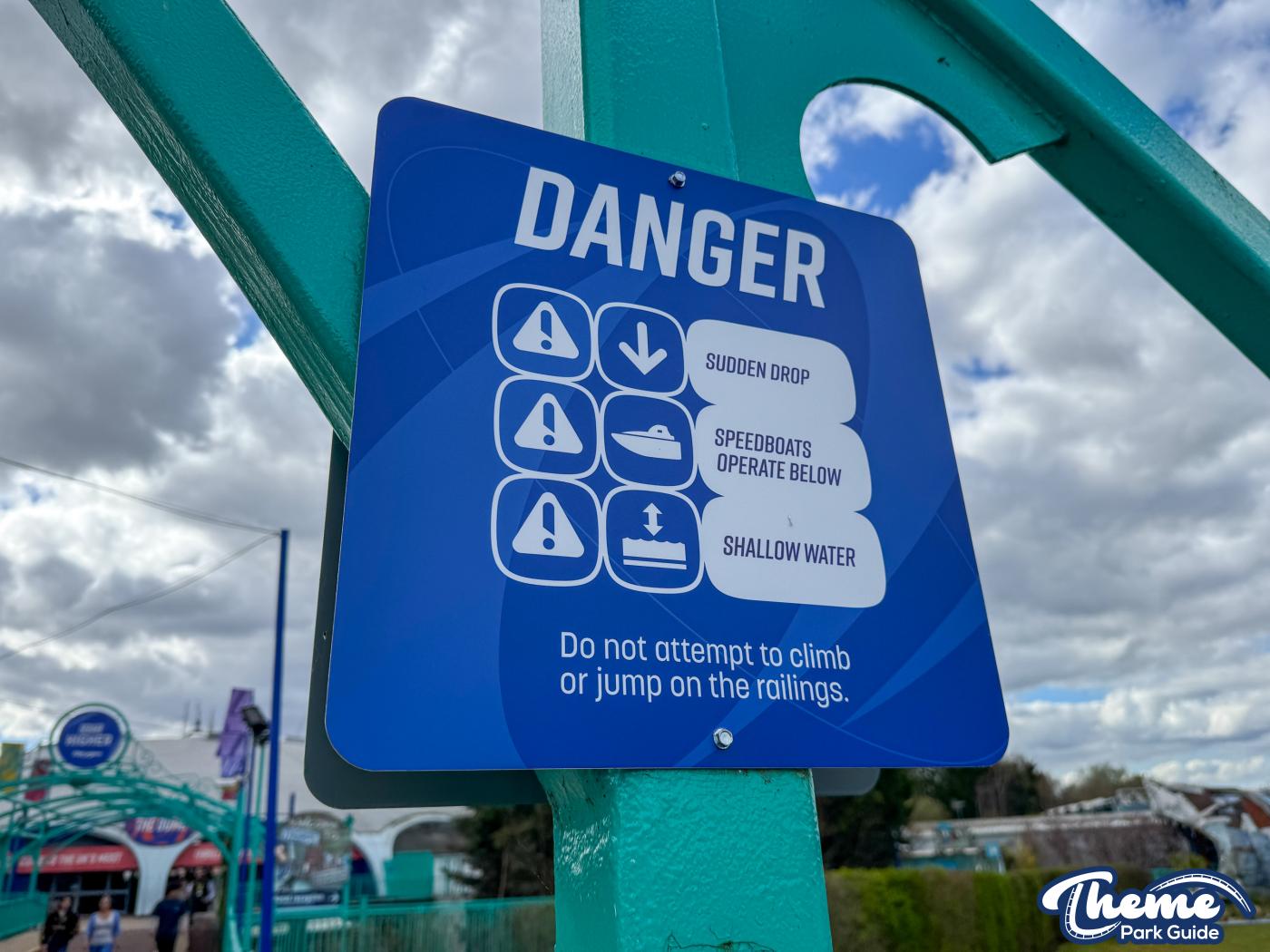 New warning signs have been installed on the bridge into the park, alerting guests to the drop below.