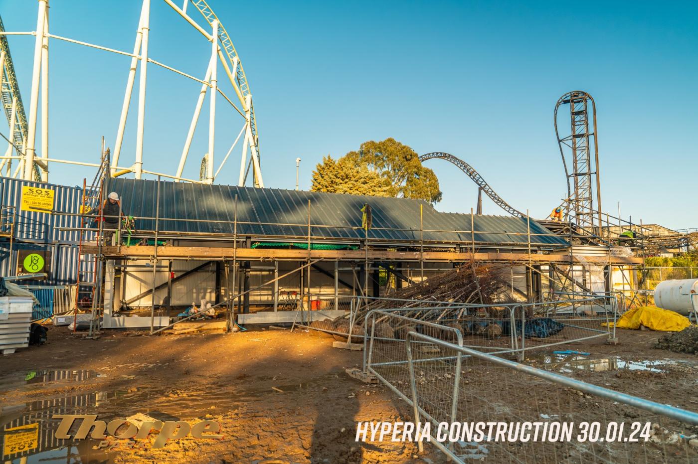 Work is progressing on the new Hyperia exit shop and photo kiosk.