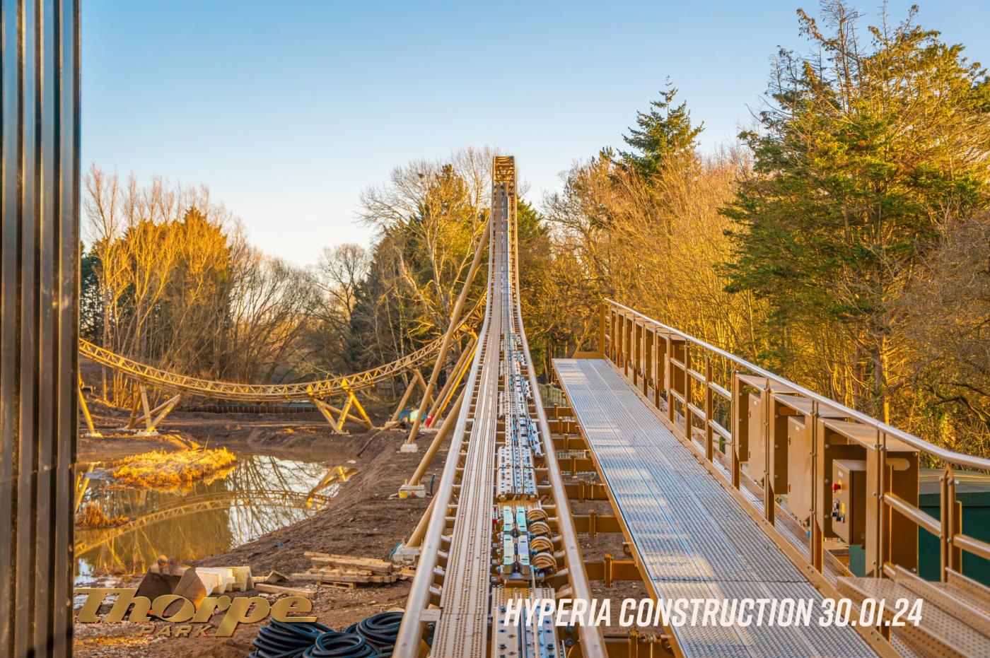 Track work is nearly complete including the outward bank outside the station - lift hill construction is due to start very soon.