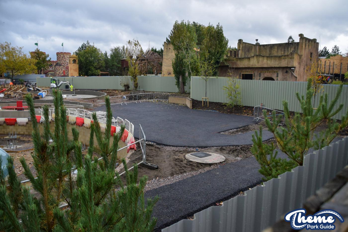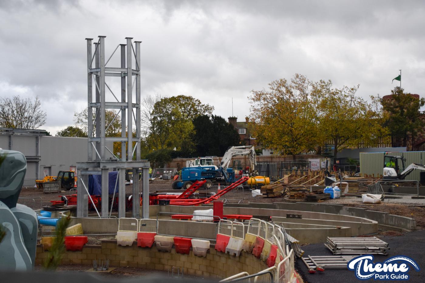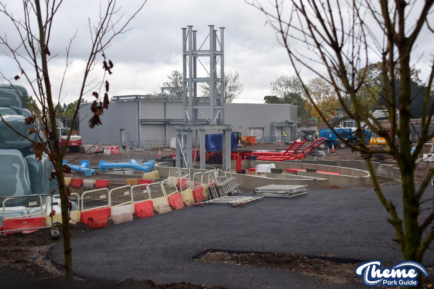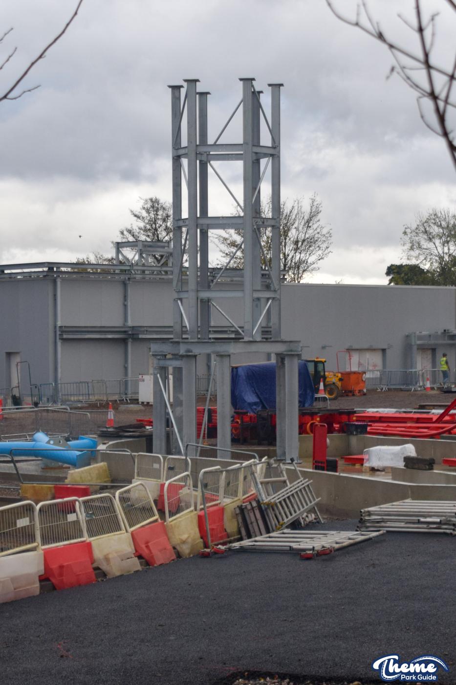 In the centre of the site, a brand-new metal structure has also been installed — this will form the base for the tower theming element, which is already shaping up to be a standout feature of the area. Once complete, this whole new land is set to look absolutely incredible.