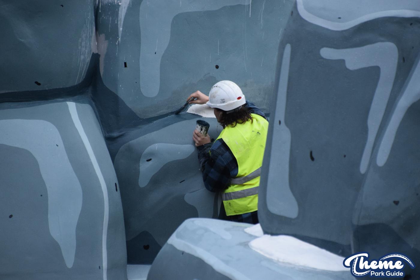 Meanwhile, the rock theming around the area is receiving its final touches, including some detailed paintwork to blend over the joints and bring the landscape to life.
