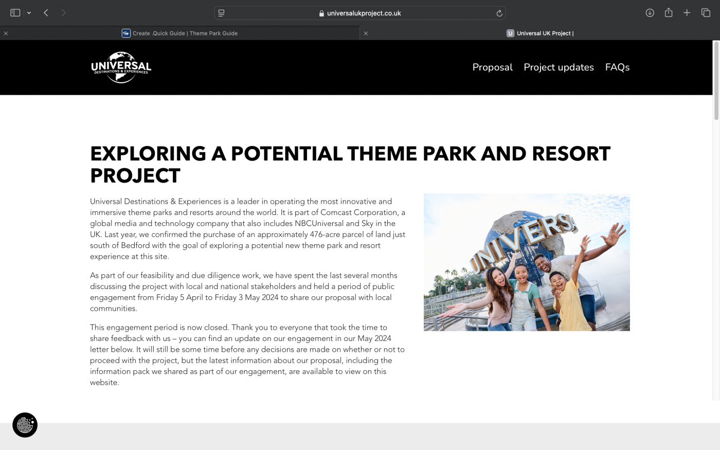 Universal Destinations & Experiences has announced plans to develop a new theme park and resort in Bedford, United Kingdom. The company has launched a dedicated website, Universal UK Project, to provide information about the project and engage with the public.