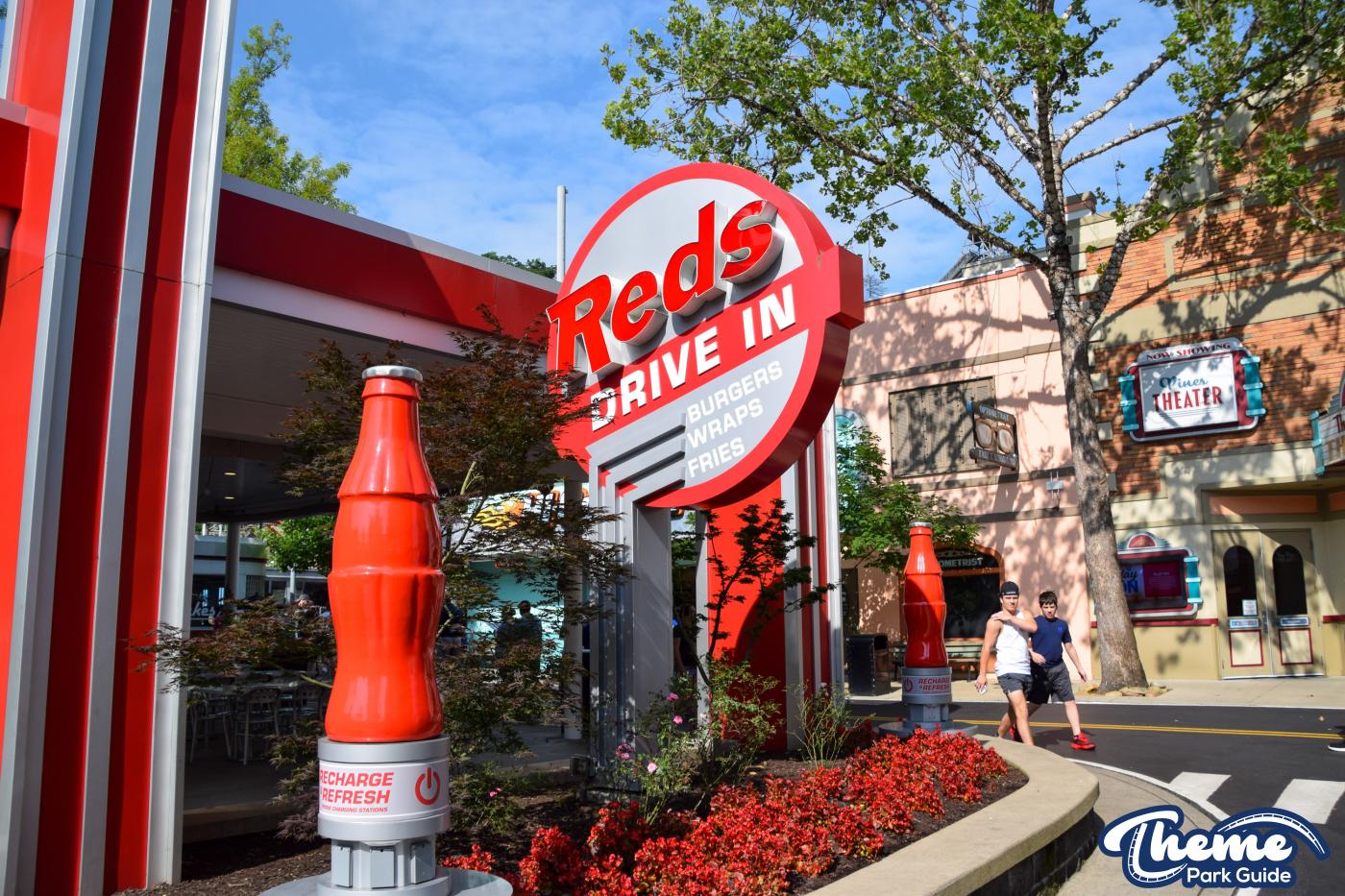 Red’s Drive-In brings 1950s Americana to life with classic diner décor, chrome accents, and nostalgic music. Located in Jukebox Junction, it serves favorites like burgers, fries, shakes, and hand-spun sodas. The atmosphere captures the charm of a retro roadside hangout, making it an ideal place to relax, enjoy comfort food, and soak in the park’s vintage vibes.