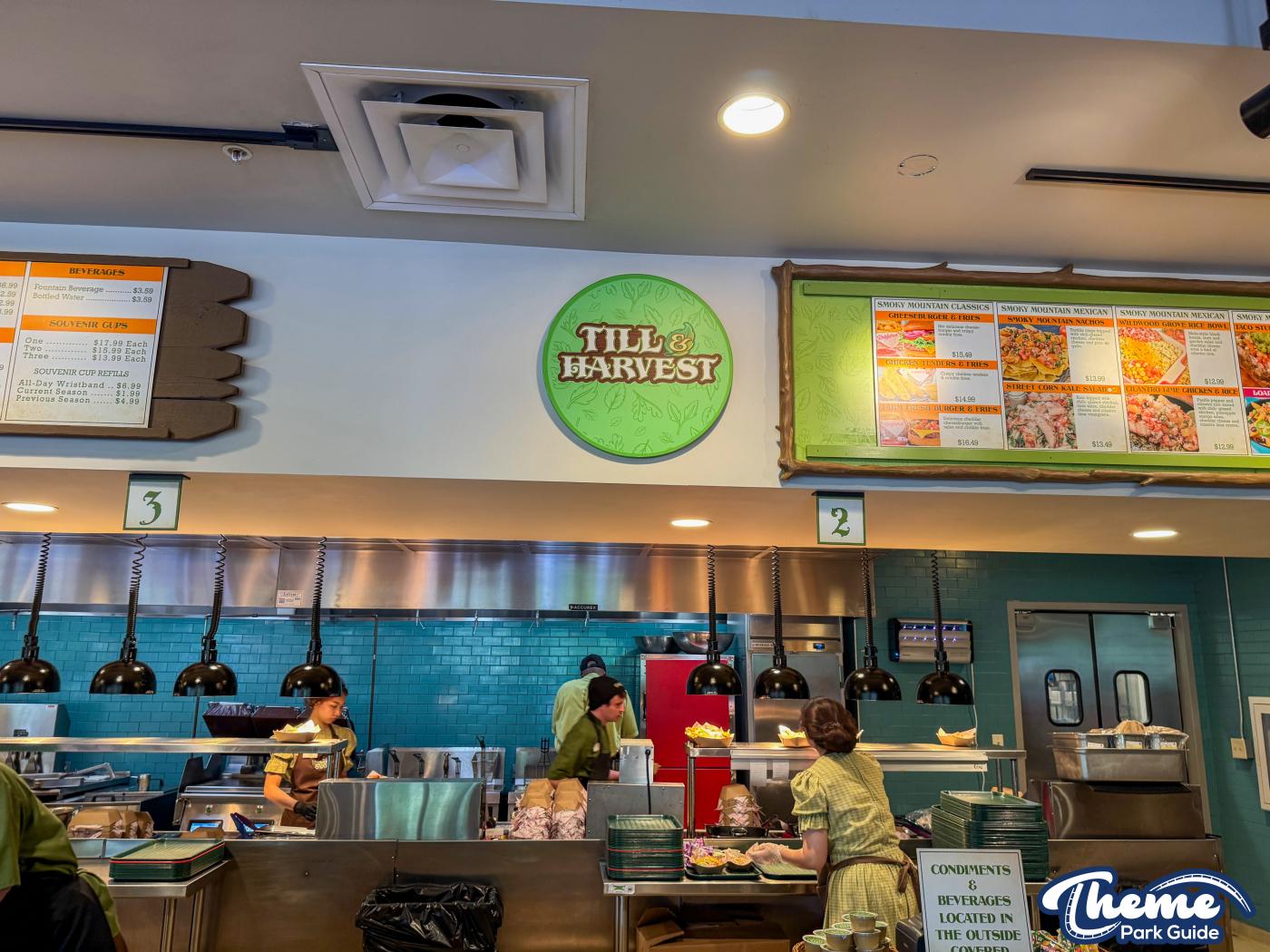 Till & Harvest offers fresh, Smoky Mountain–inspired Southwest cuisine served in a bright, airy setting in Wildwood Grove. Known for customizable bowls, flavorful street tacos, and freshly prepared toppings, it provides a healthier, vibrant dining option within the park. The restaurant’s design blends natural materials and botanical accents, creating an inviting atmosphere that pairs well with its hearty, modern flavors.