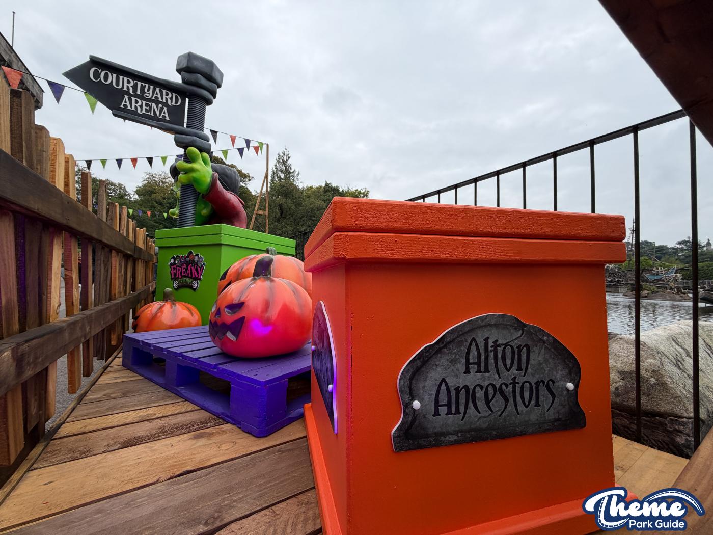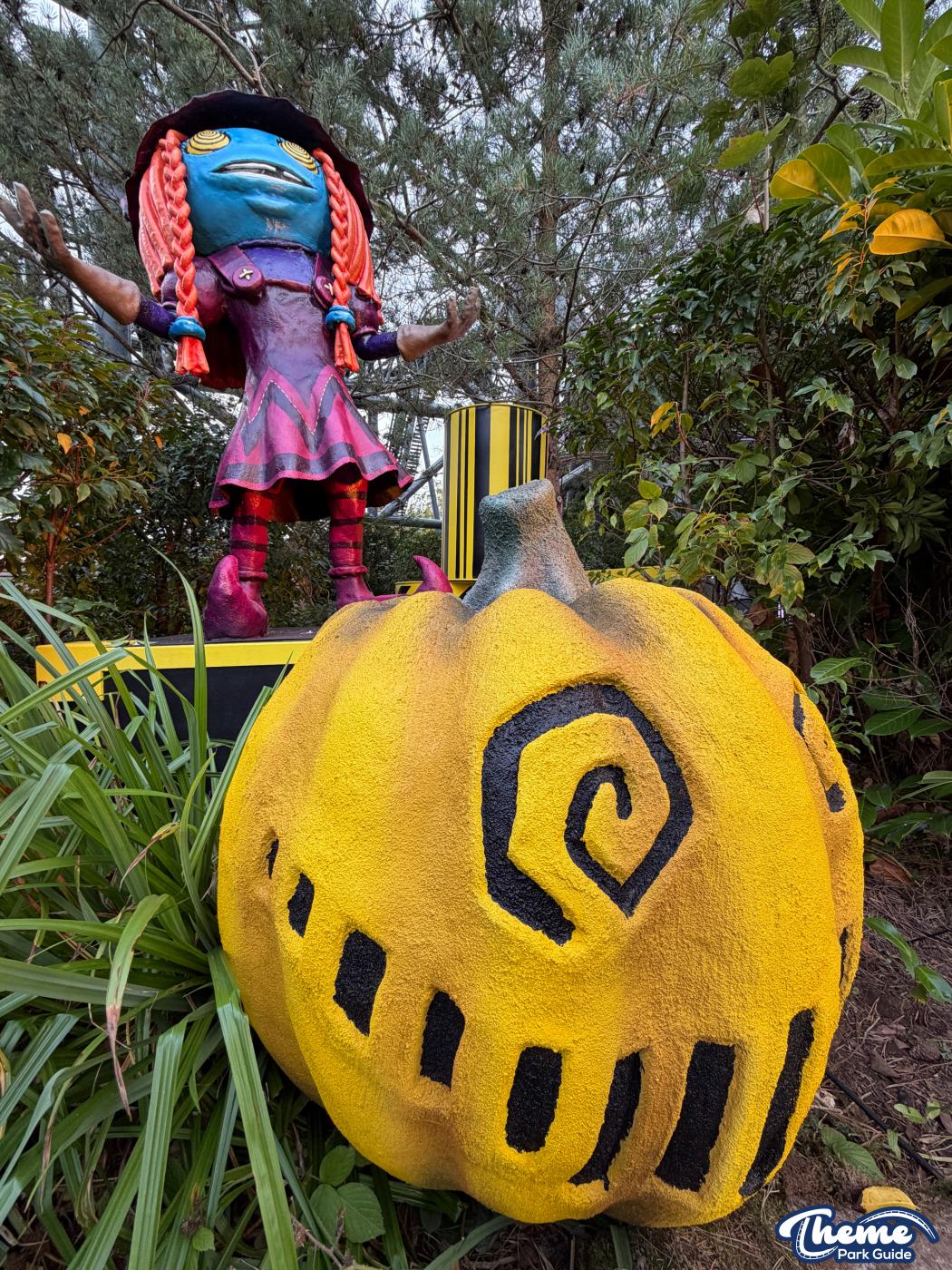 This year, Scarefest characters were scattered throughout the park, adding life and humour. From flags on the Towers to pumpkins delivered on the lawns, these little touches enhanced the atmosphere. The ride-themed pumpkins on Towers Street have also received repaints, with the Nemesis pumpkin now updated to reflect Nemesis Reborn. Even the famous frogs received a seasonal makeover.