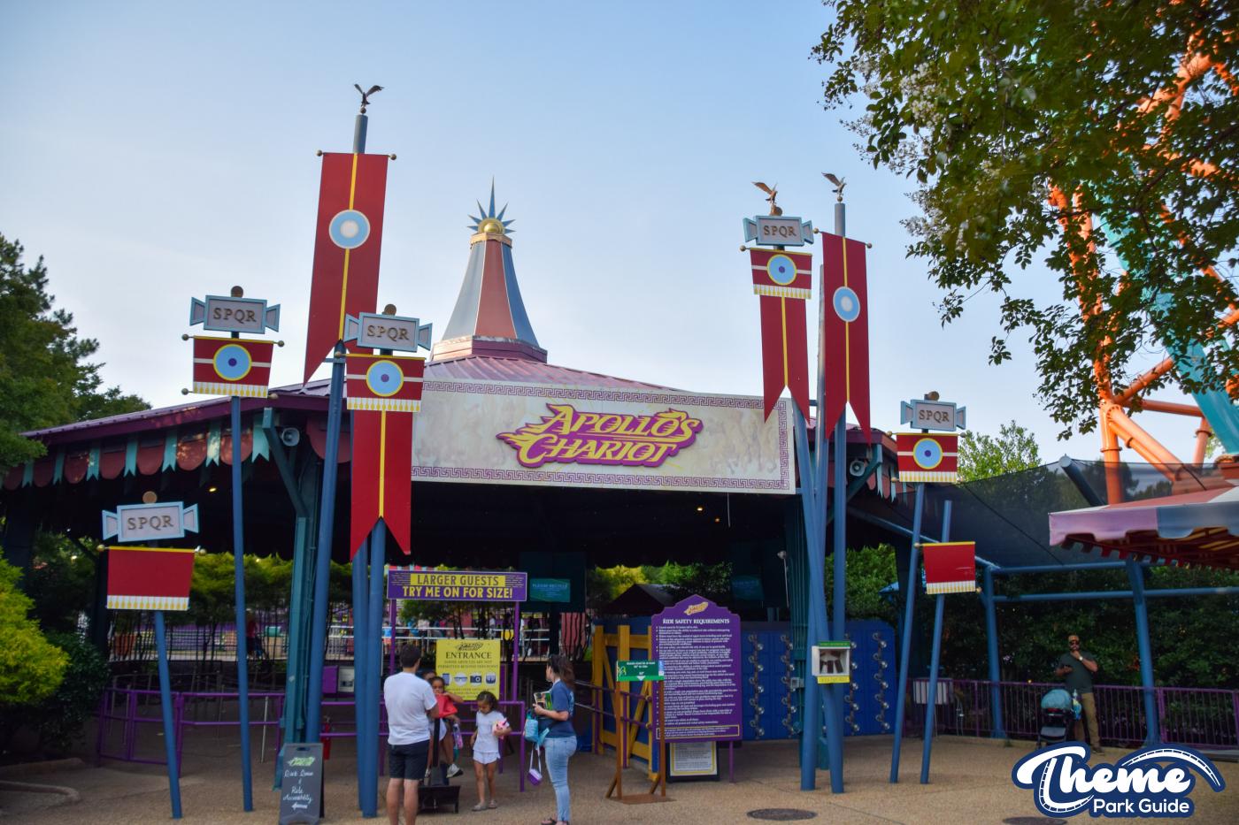 Apollo’s Chariot is a highly regarded hyper coaster celebrated for its smooth, fast layout and abundant airtime hills. It features a tall lift hill followed by a long, sweeping first drop that dives into the terrain, creating a dramatic sensation of floating. Riders experience multiple elevated camelback hills, large curves, and graceful pacing designed to emphasize speed and airtime rather than inversions. Since its debut, it has been considered one of the park’s flagship rides due to its elegant design and enduring popularity.