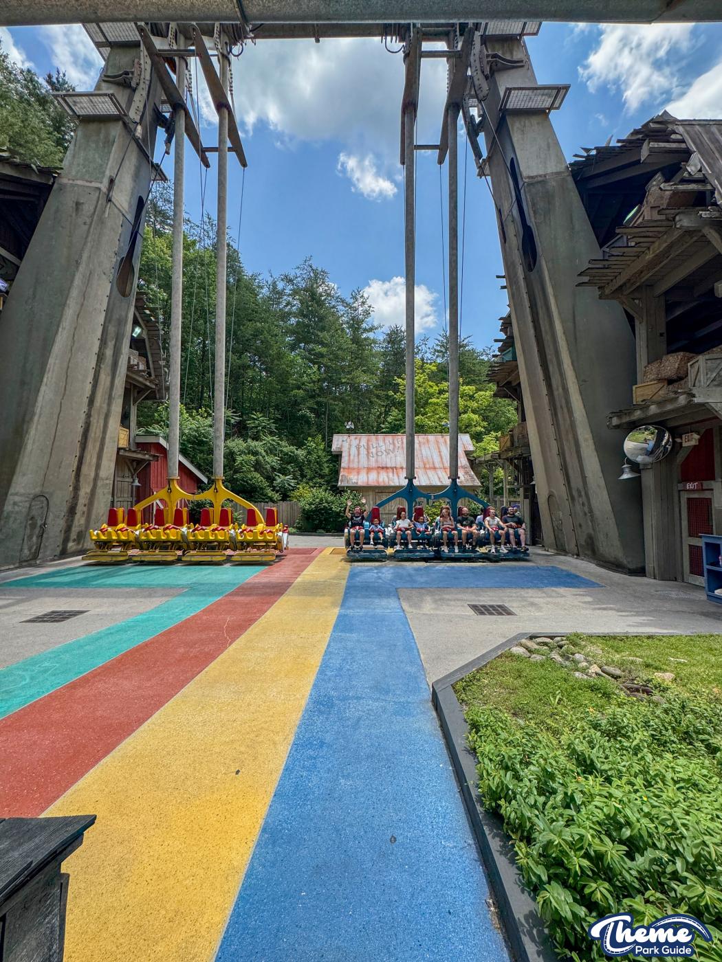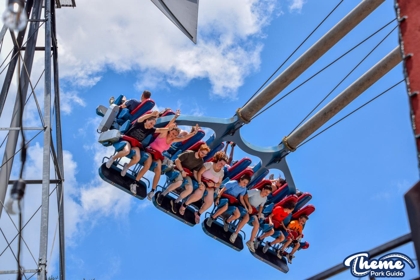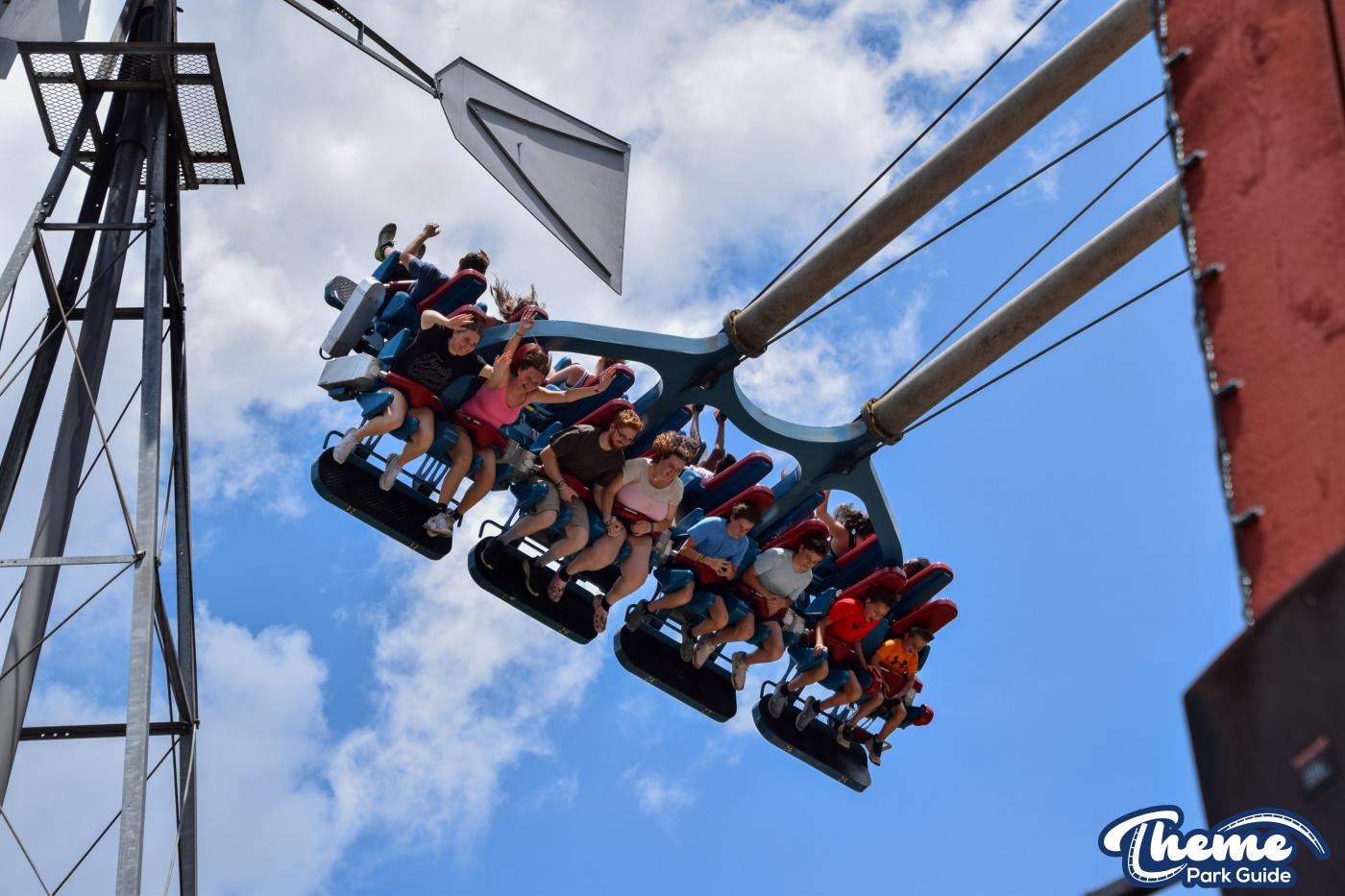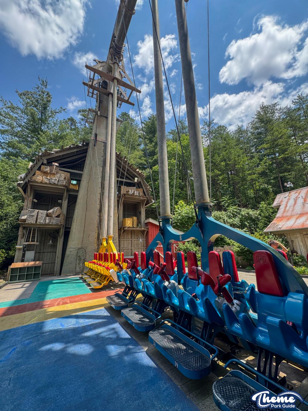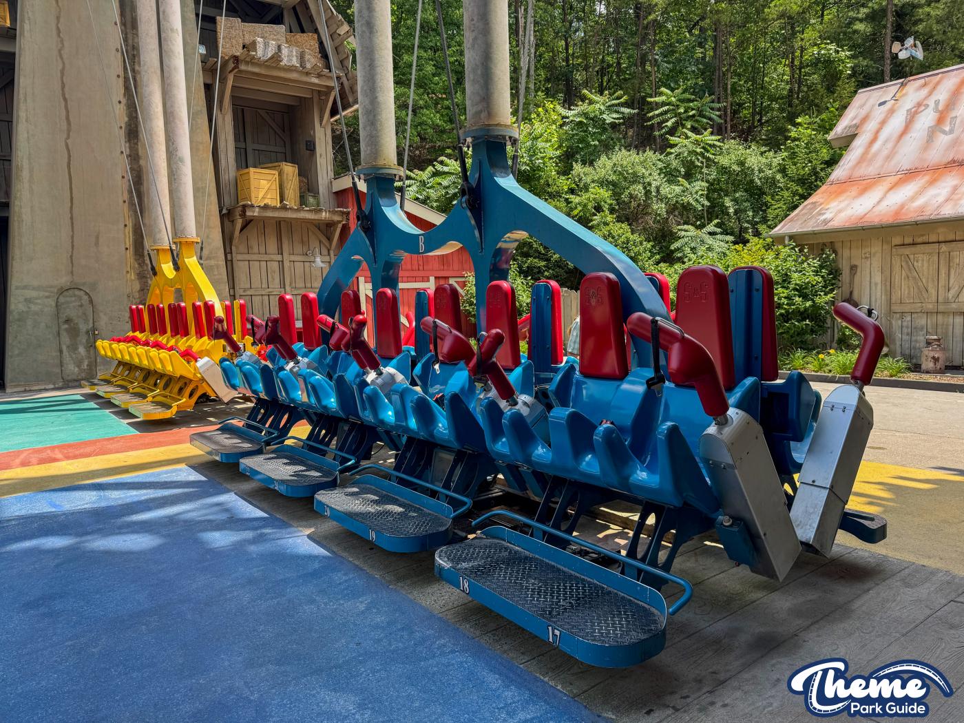 Barnstormer is a high-flying pendulum ride themed around vintage stunt pilots and daring aerial maneuvers. Located in Owens Farm, it sends riders soaring up to impressive heights while swinging back and forth with increasing speed. The open-air design and barnyard theming create a thrilling yet charming experience, offering sweeping views of the surrounding foothills.