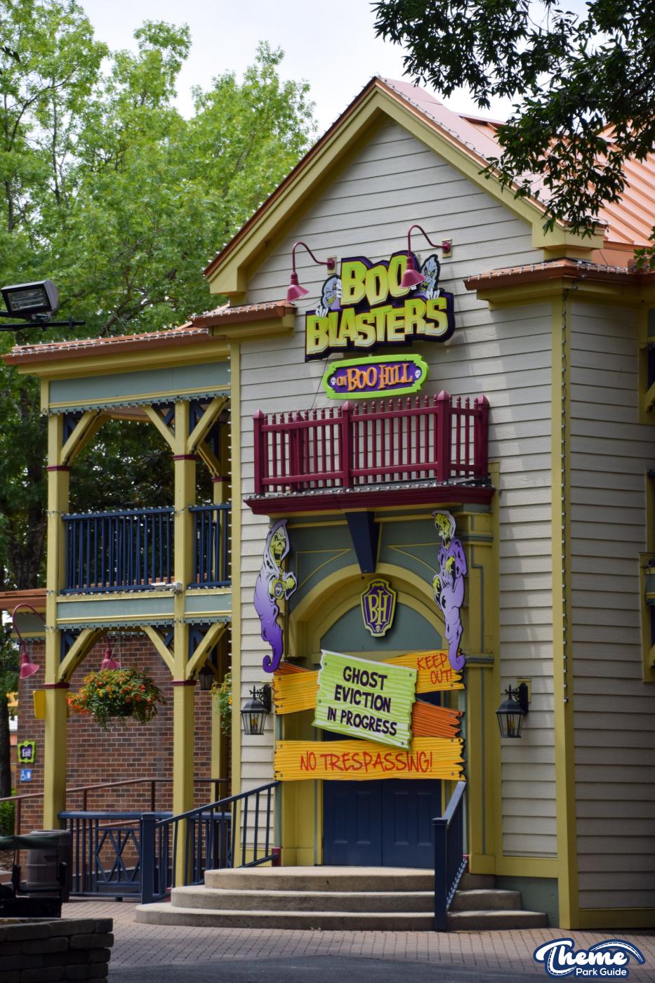 Boo Blasters on Boo Hill is an interactive dark ride where riders use laser blasters to hit spooky targets throughout a ghost-themed house. The scenes are colorful, playful, and filled with moving props that make every ride-through slightly different. It’s great for families looking for friendly competition.