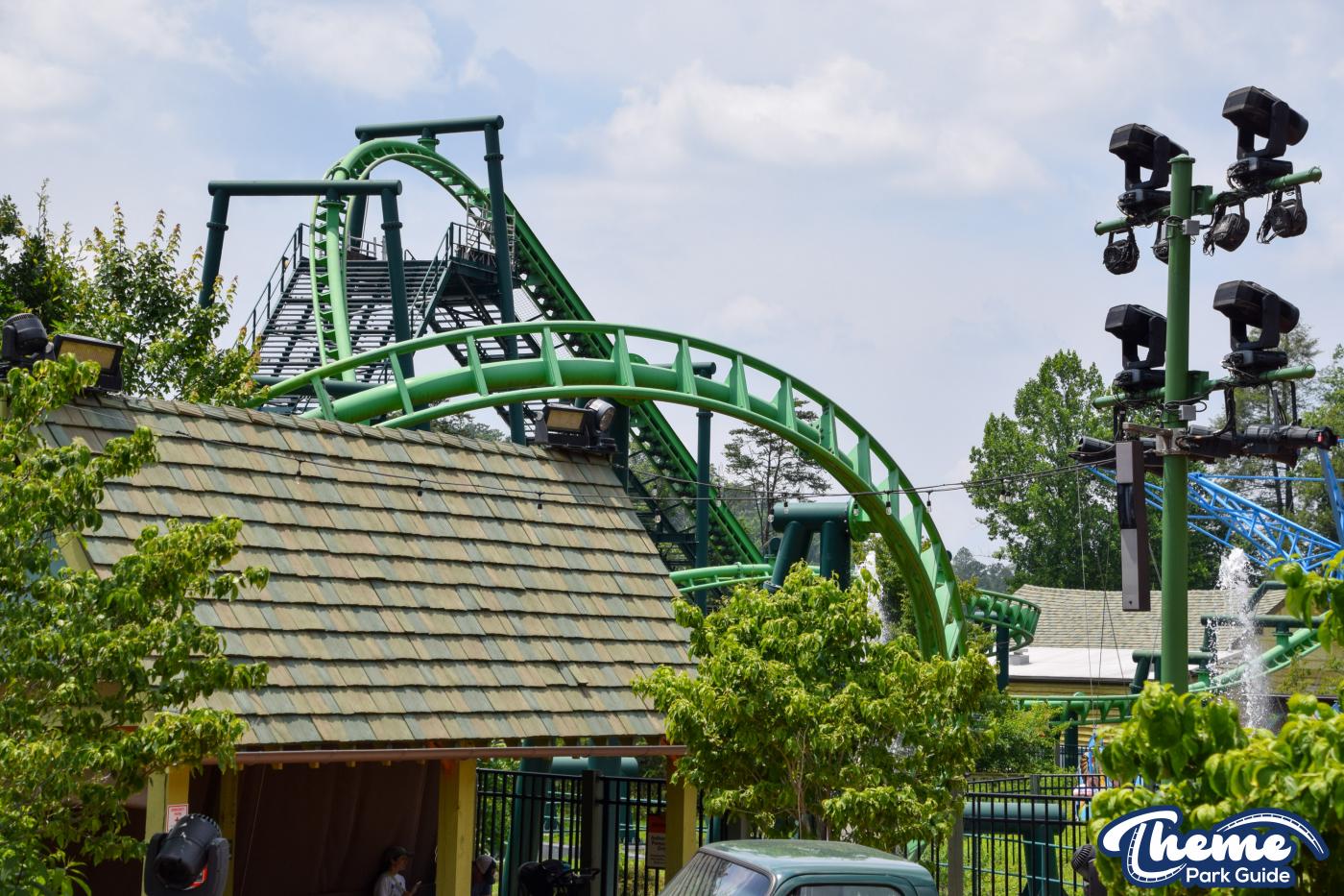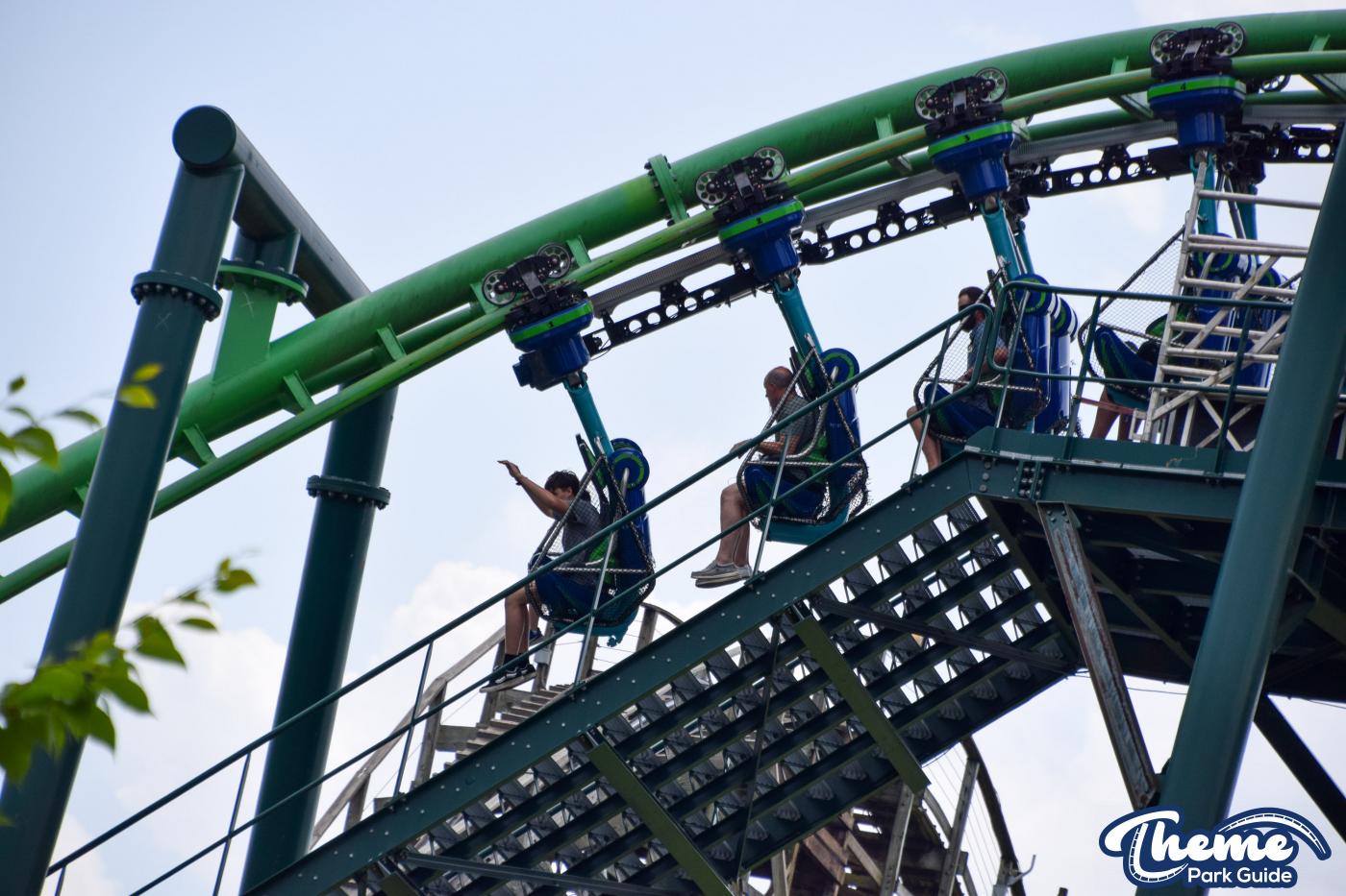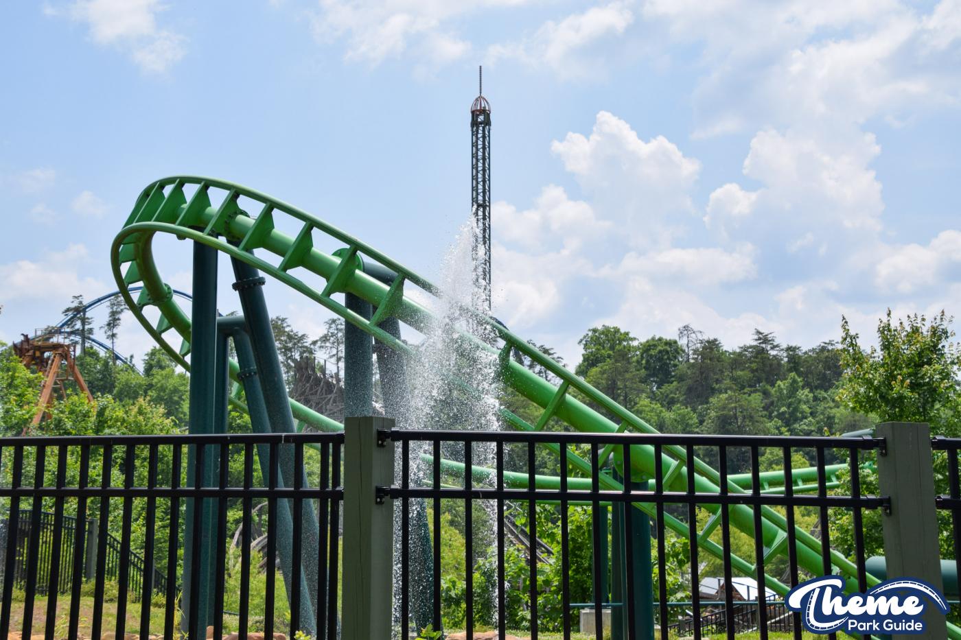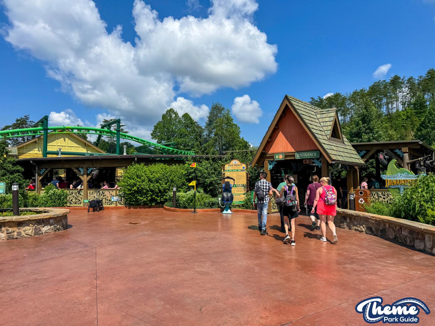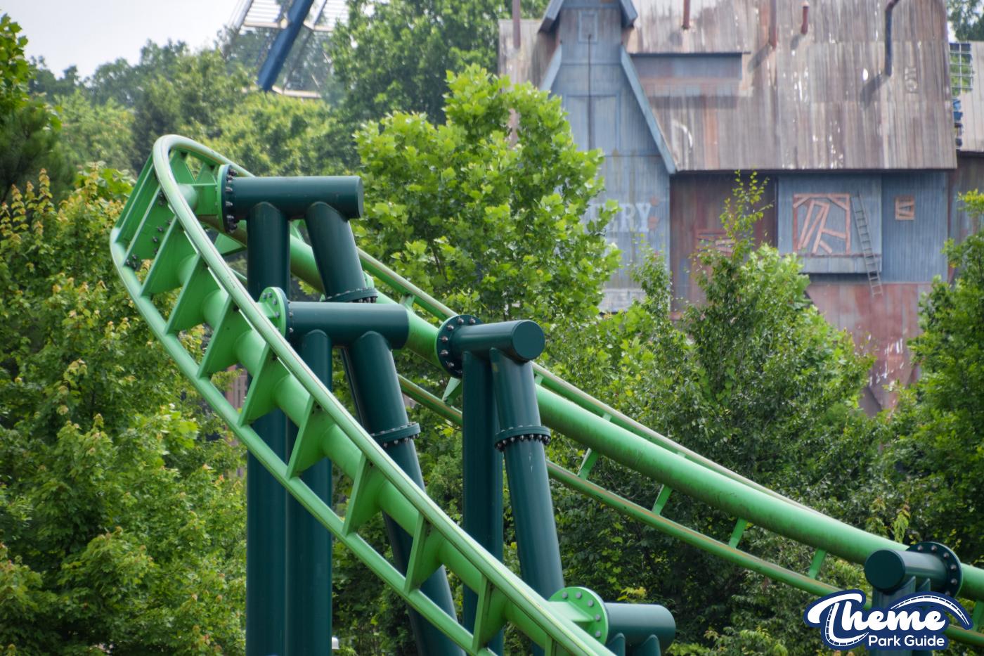 Dragonflier is a smooth, family-friendly suspended coaster found in the Wildwood Grove area. The trains hang beneath the track, swooping through low-to-the-ground curves, tunnels, and graceful maneuvers that imitate a dragonfly gliding over water. Its approachable speed and beautiful woodland setting make it a relaxing yet exciting ride.