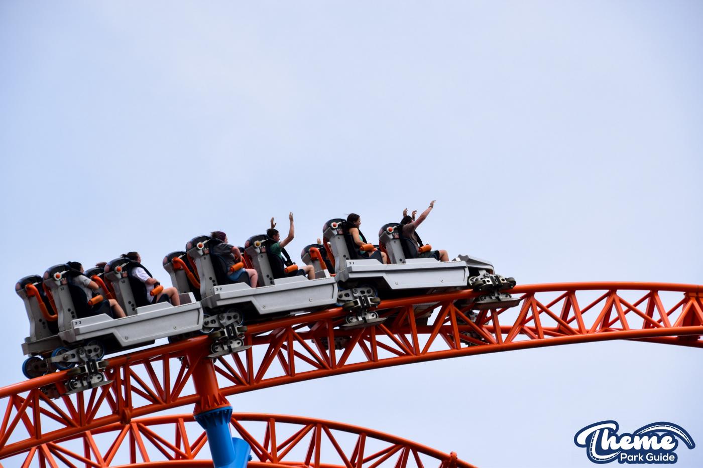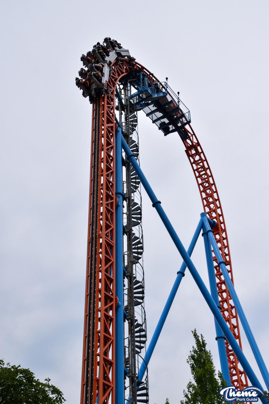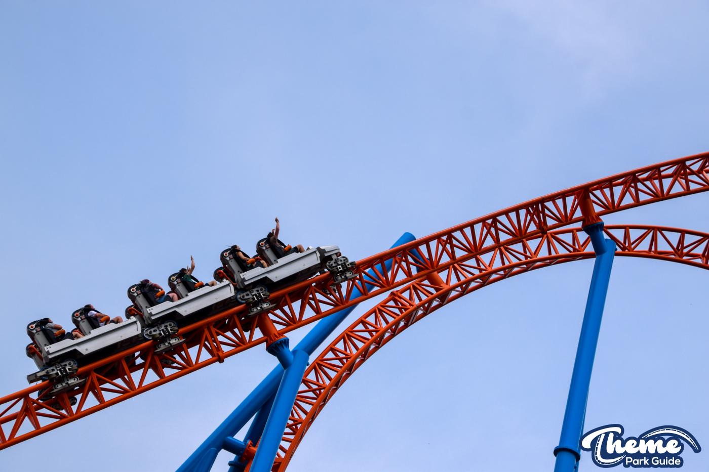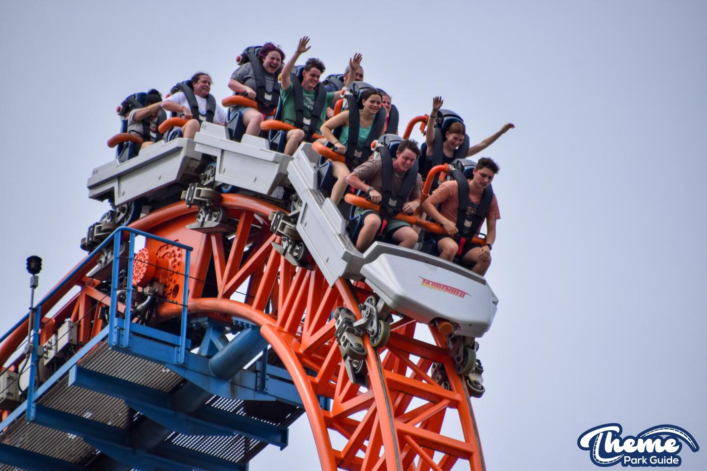 Fahrenheit begins with an impressive vertical lift before diving down a 97-degree beyond-vertical drop that instantly sets the tone for the intense experience ahead. With six tightly packed inversions—including a rare Norwegian loop—and snappy transitions, Fahrenheit delivers a high-adrenaline ride from start to finish. Its compact footprint makes the layout feel even more relentless, with each element flowing rapidly into the next.