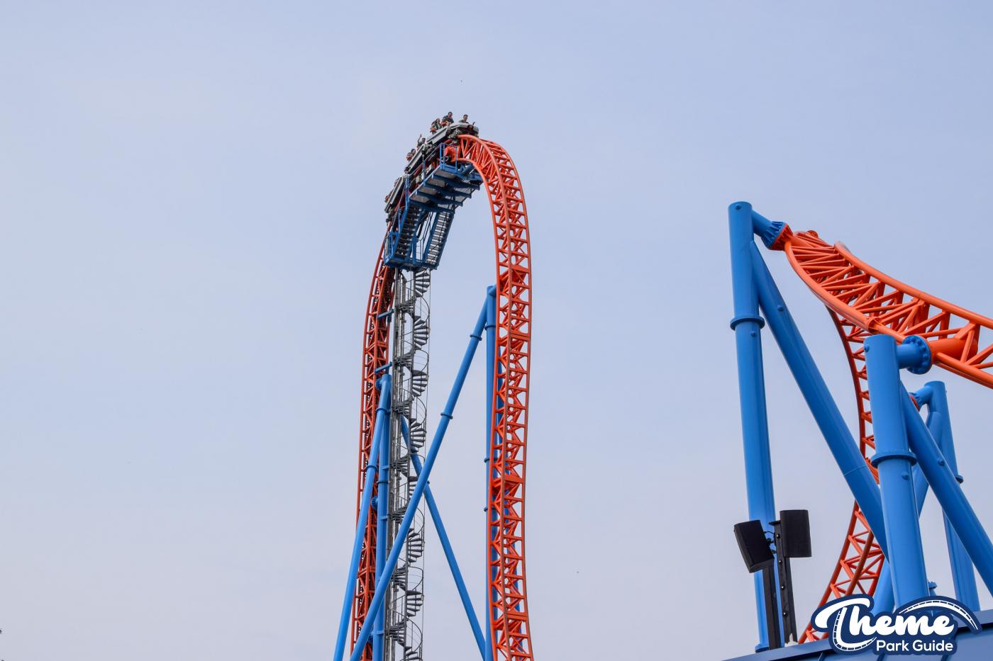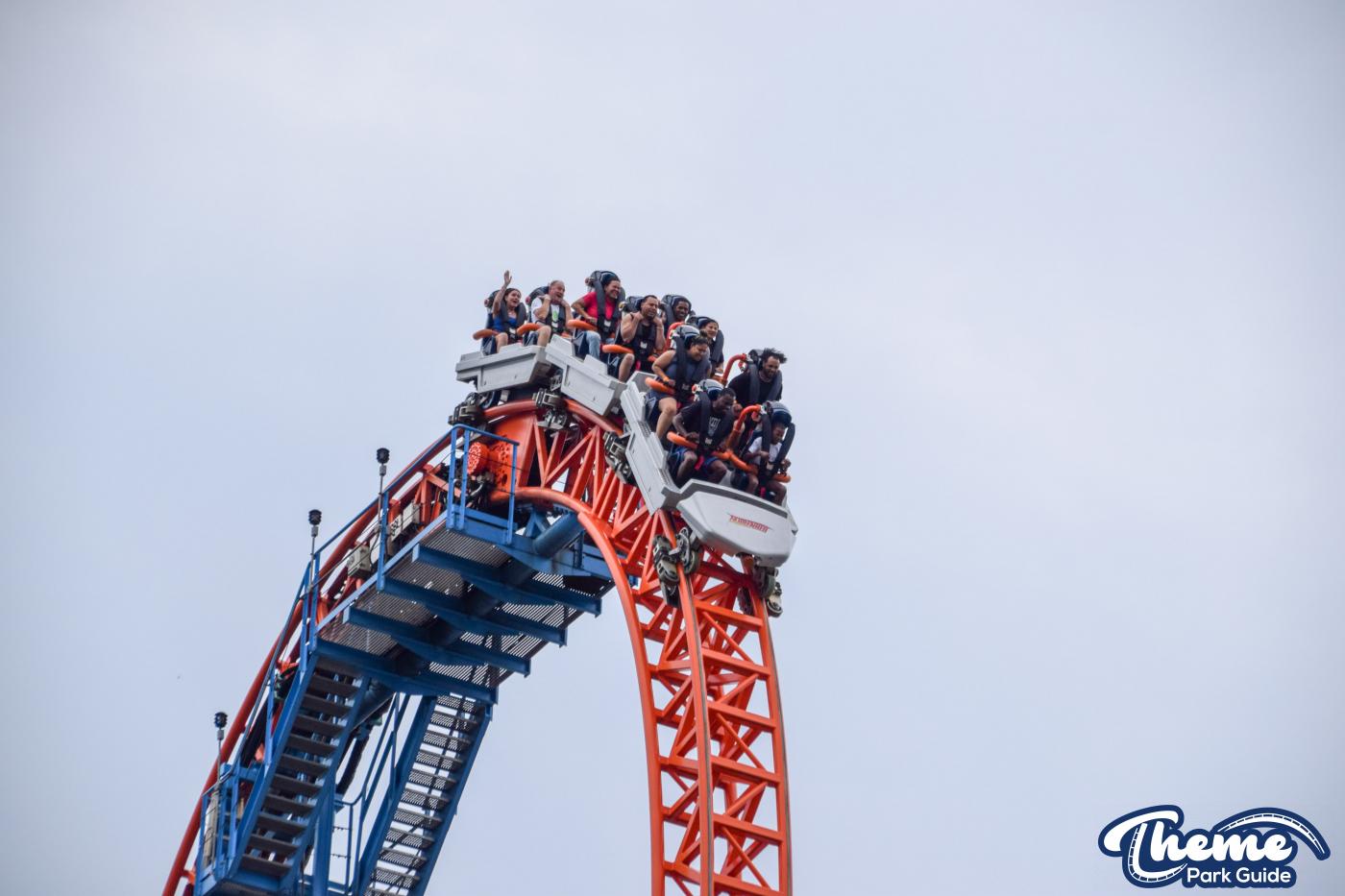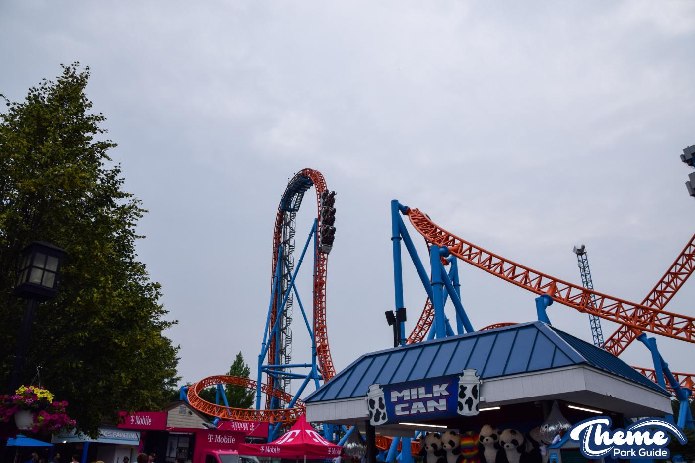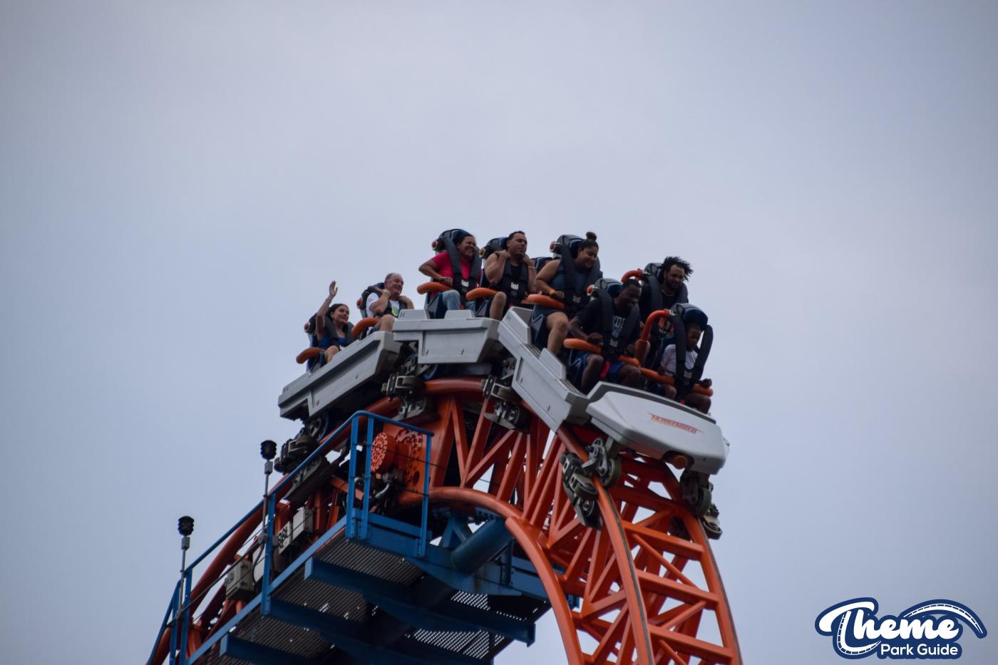 Fahrenheit begins with an impressive vertical lift before diving down a 97-degree beyond-vertical drop that instantly sets the tone for the intense experience ahead. With six tightly packed inversions—including a rare Norwegian loop—and snappy transitions, Fahrenheit delivers a high-adrenaline ride from start to finish. Its compact footprint makes the layout feel even more relentless, with each element flowing rapidly into the next.