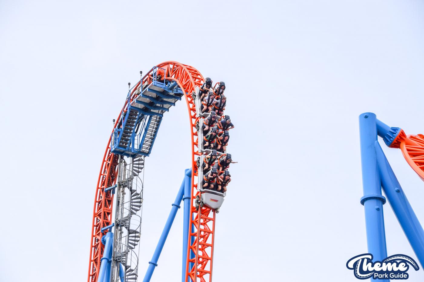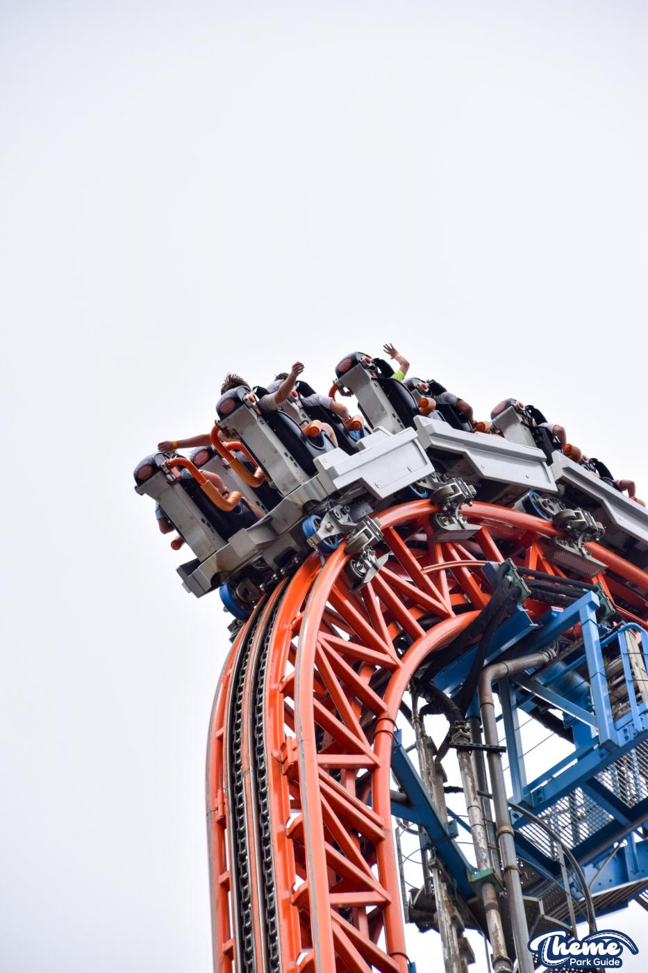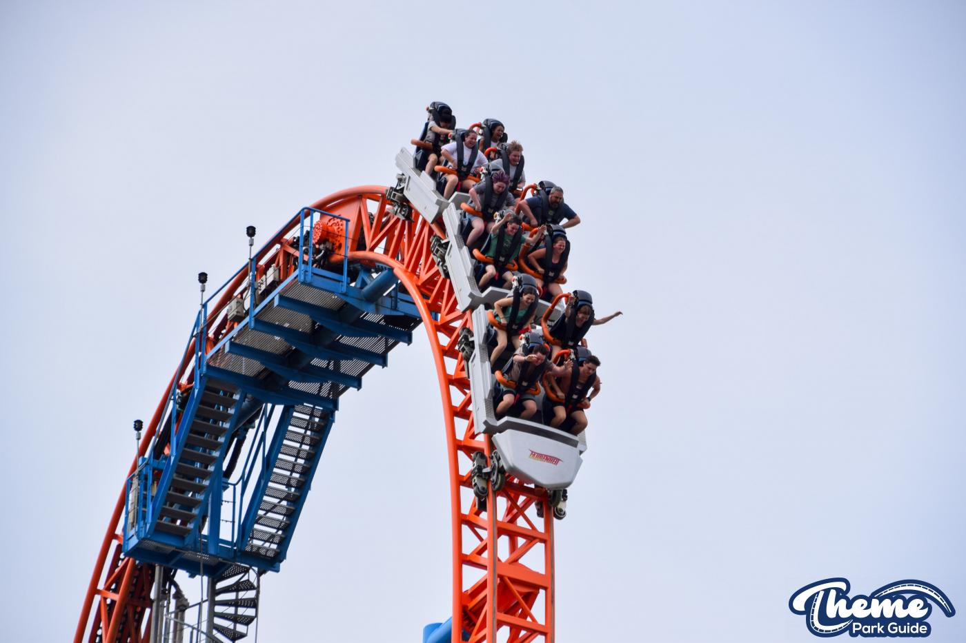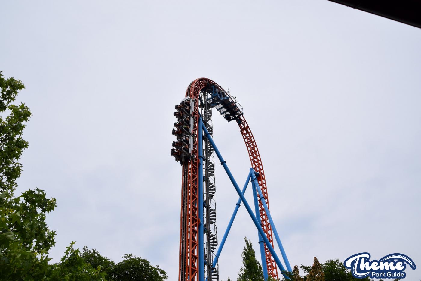 Fahrenheit begins with an impressive vertical lift before diving down a 97-degree beyond-vertical drop that instantly sets the tone for the intense experience ahead. With six tightly packed inversions—including a rare Norwegian loop—and snappy transitions, Fahrenheit delivers a high-adrenaline ride from start to finish. Its compact footprint makes the layout feel even more relentless, with each element flowing rapidly into the next.