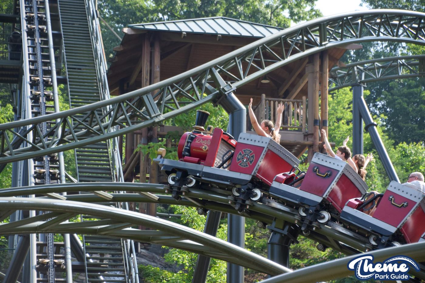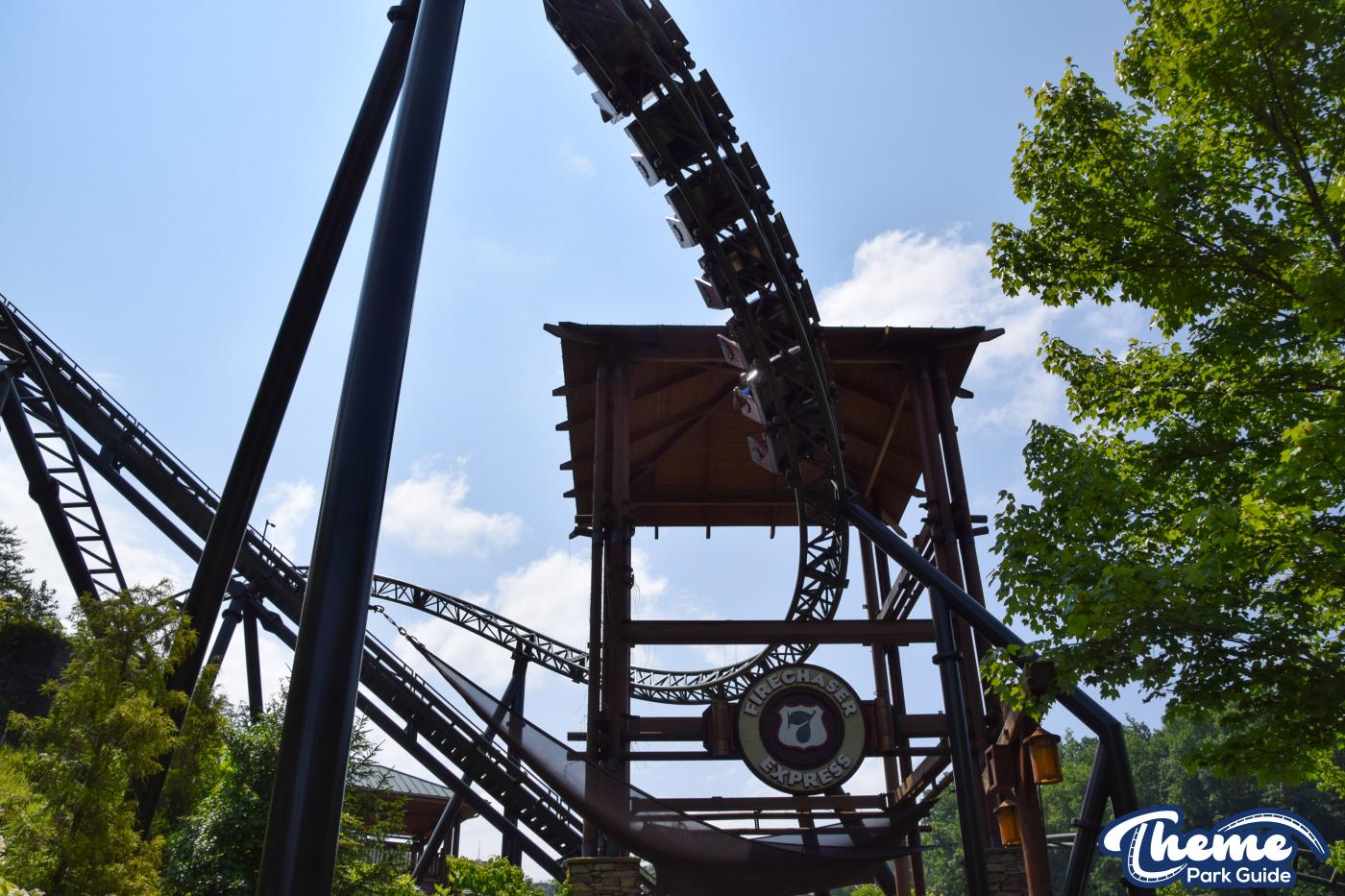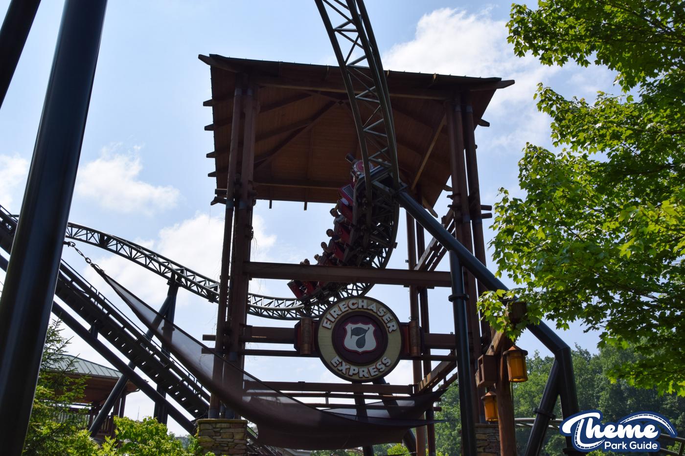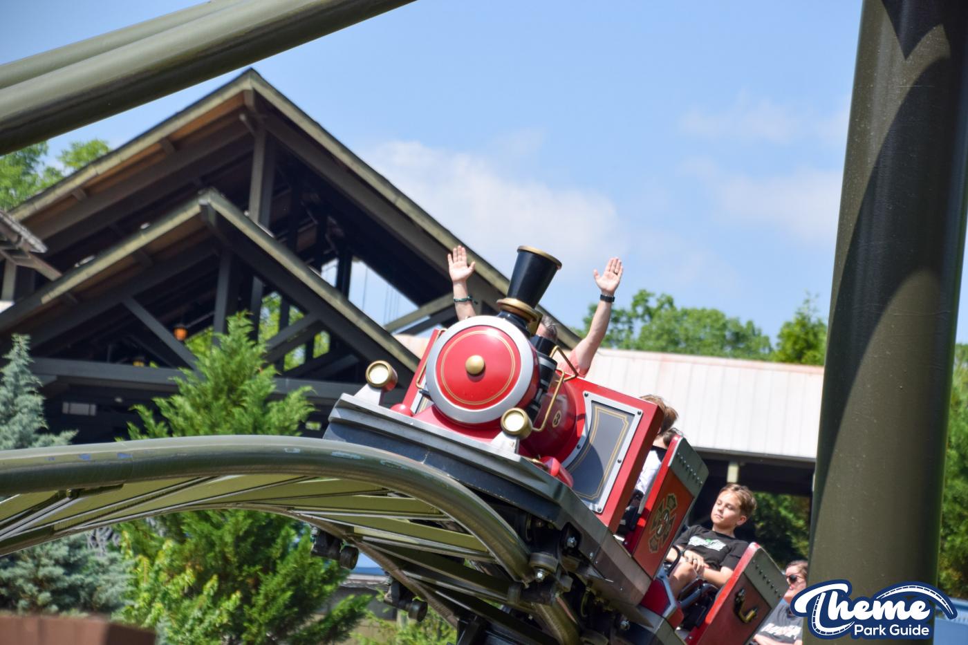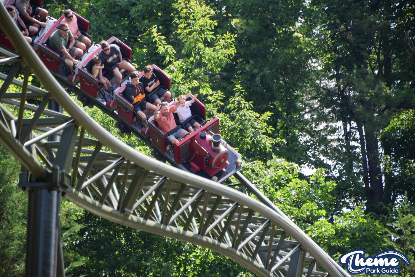 FireChaser Express is a family-thrill coaster themed around volunteer firefighters and explosive emergencies. Riders launch forward from the station, zooming through mild airtime hills and scenic structures before arriving at a surprise story moment. From there, the coaster launches backward, sending guests racing in reverse through the rest of the course. Its dual-direction layout makes it fun and unpredictable for all ages.