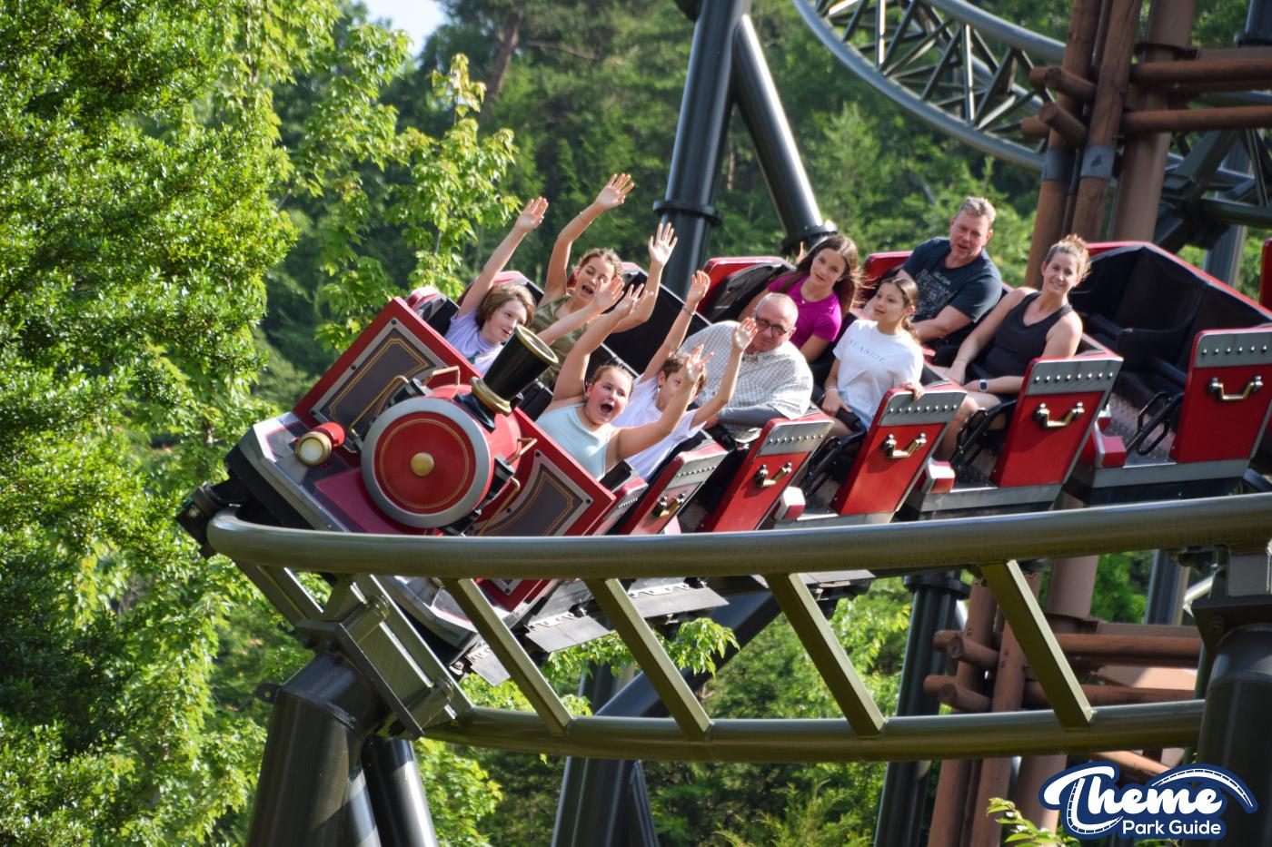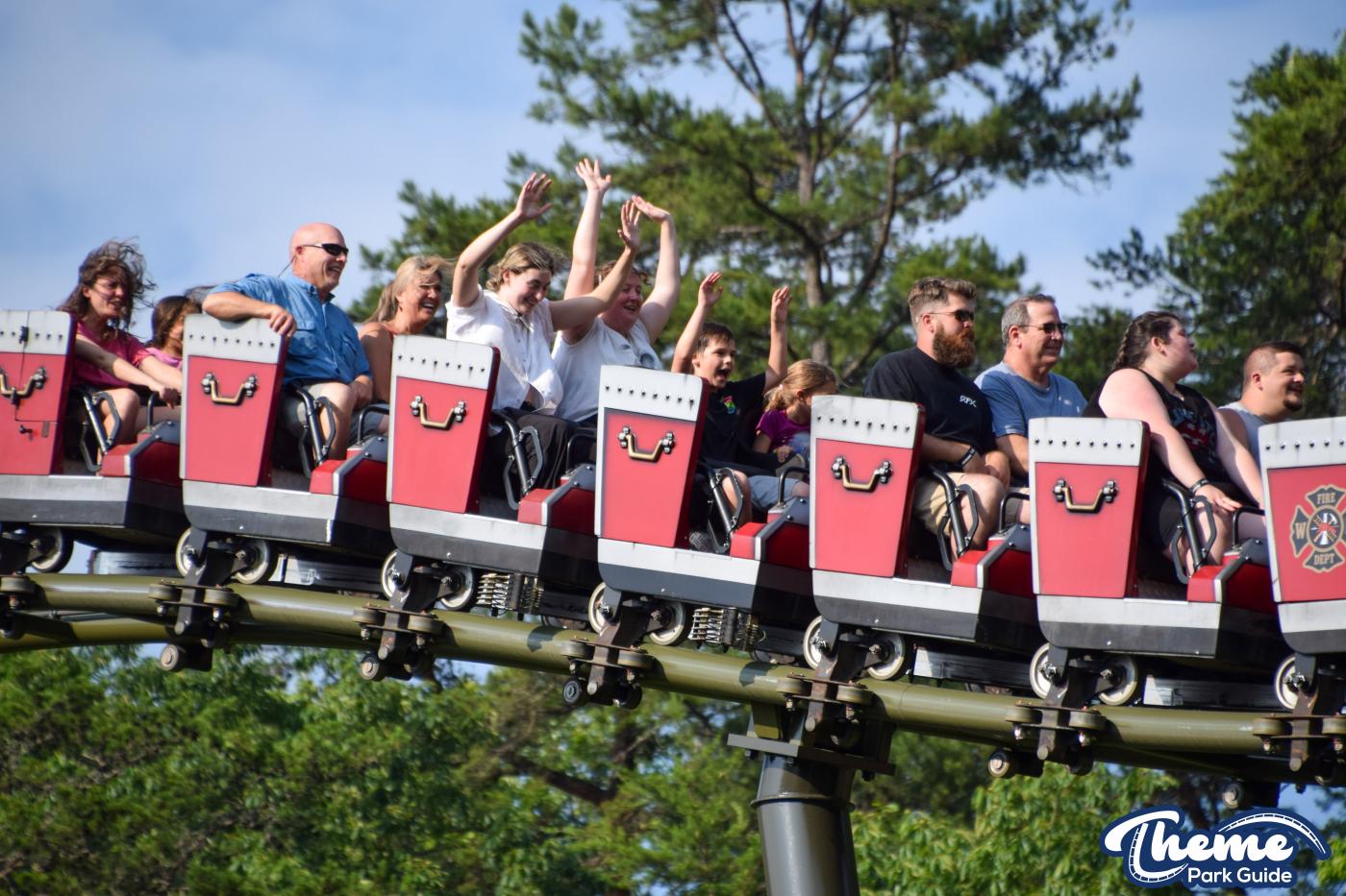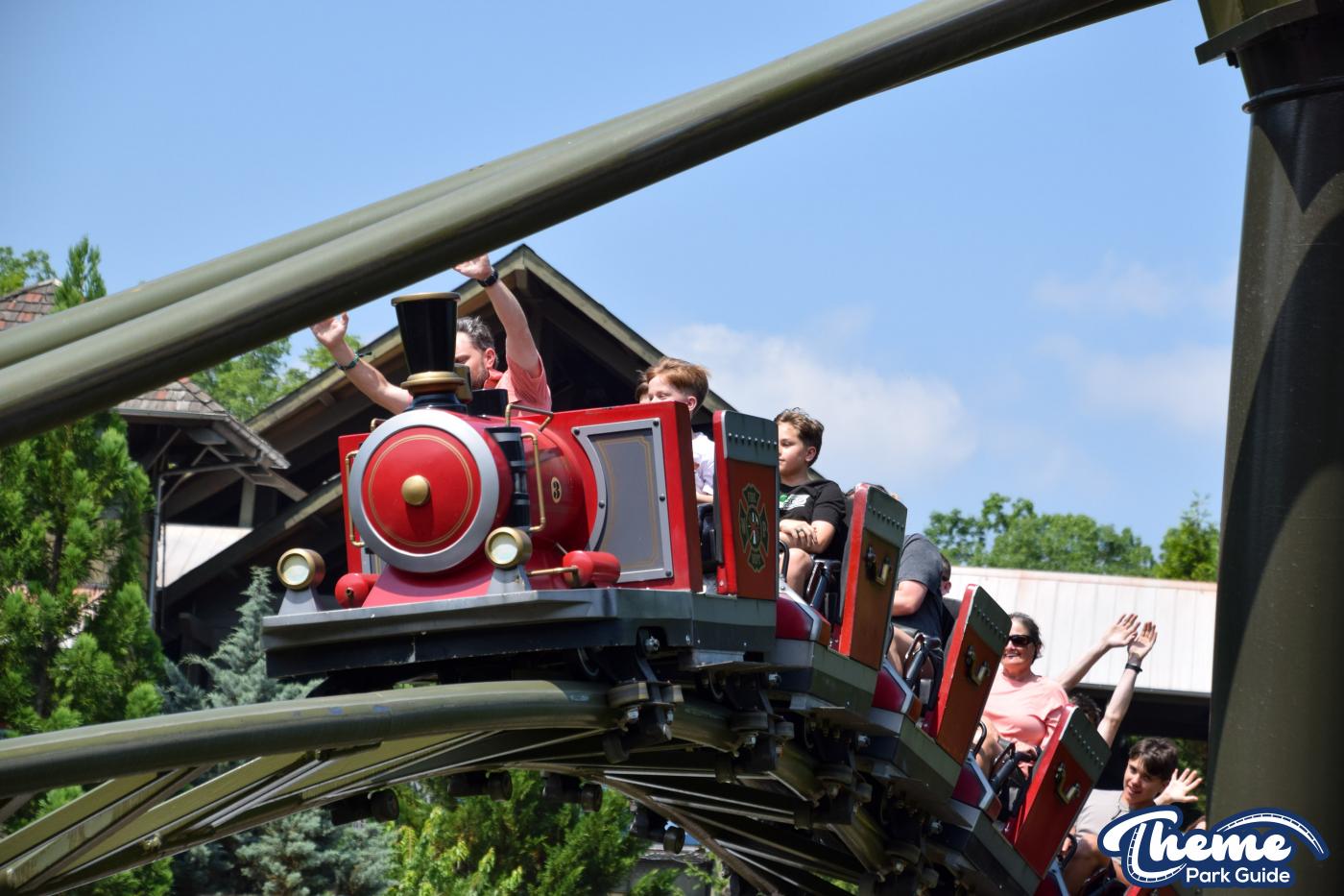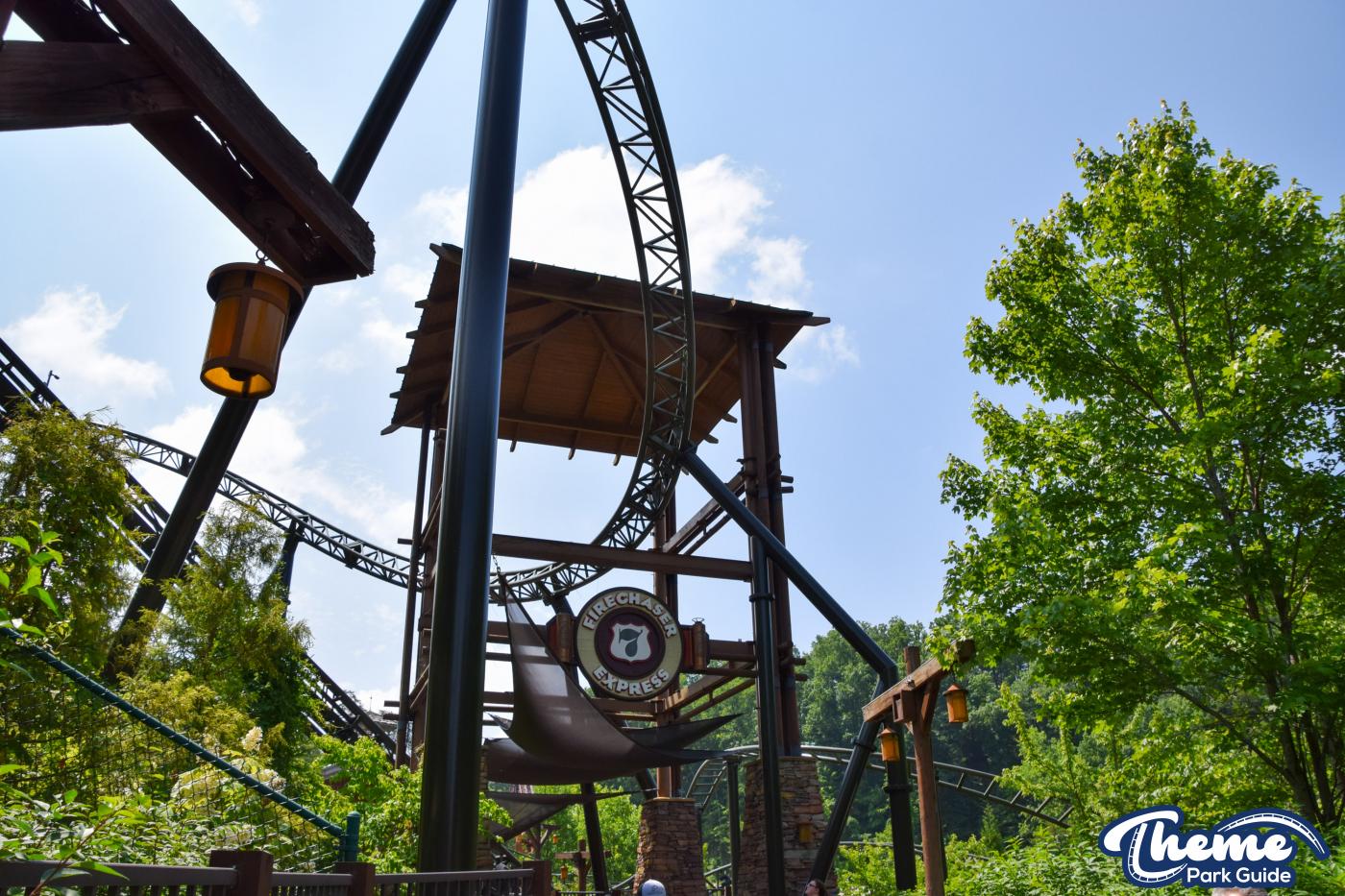 FireChaser Express is a family-thrill coaster themed around volunteer firefighters and explosive emergencies. Riders launch forward from the station, zooming through mild airtime hills and scenic structures before arriving at a surprise story moment. From there, the coaster launches backward, sending guests racing in reverse through the rest of the course. Its dual-direction layout makes it fun and unpredictable for all ages.