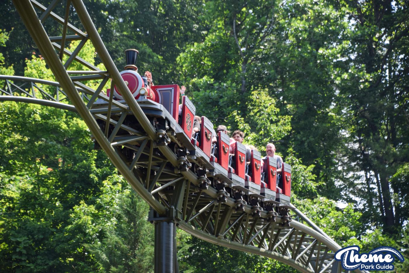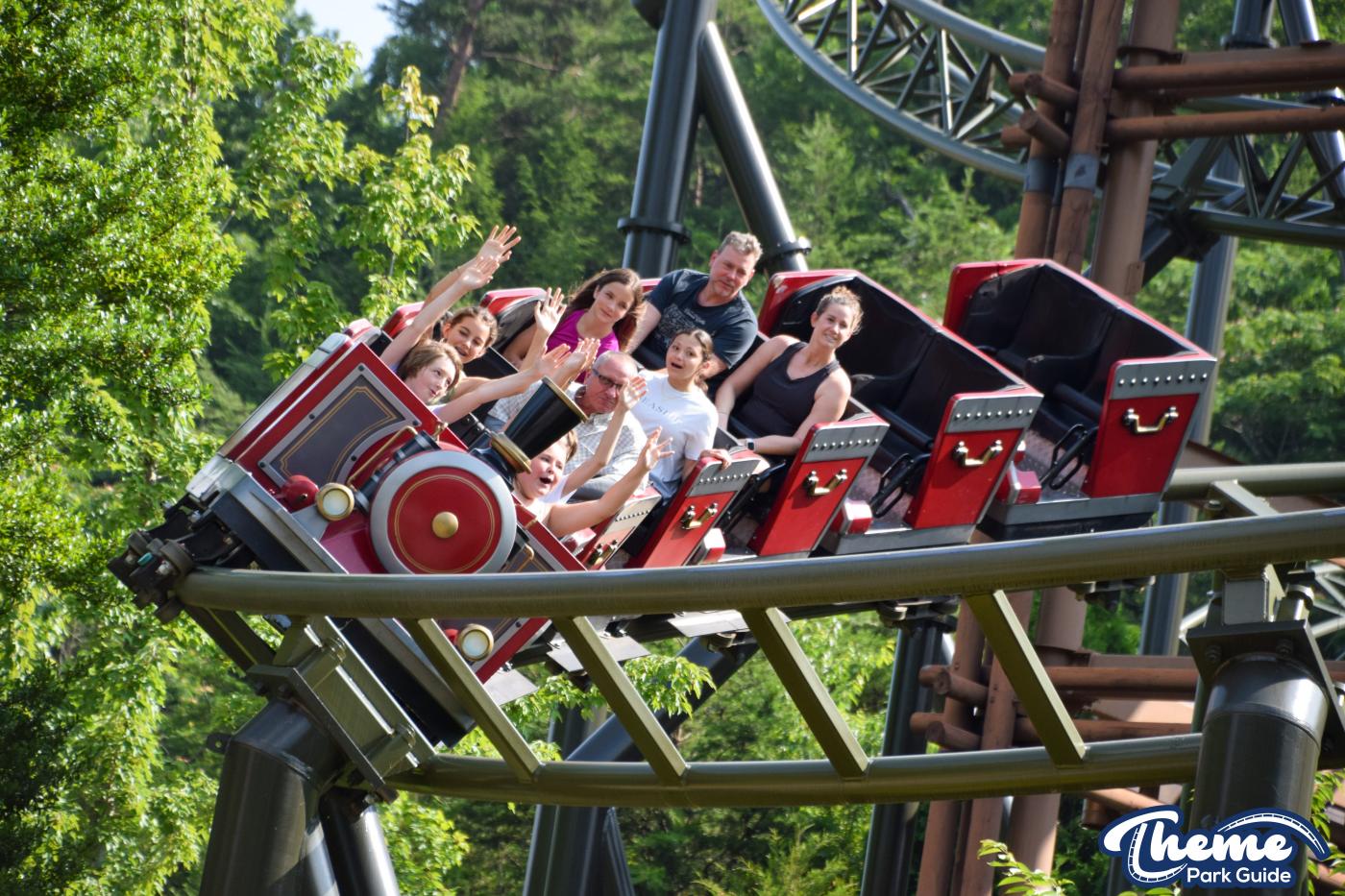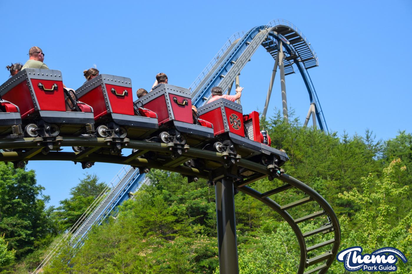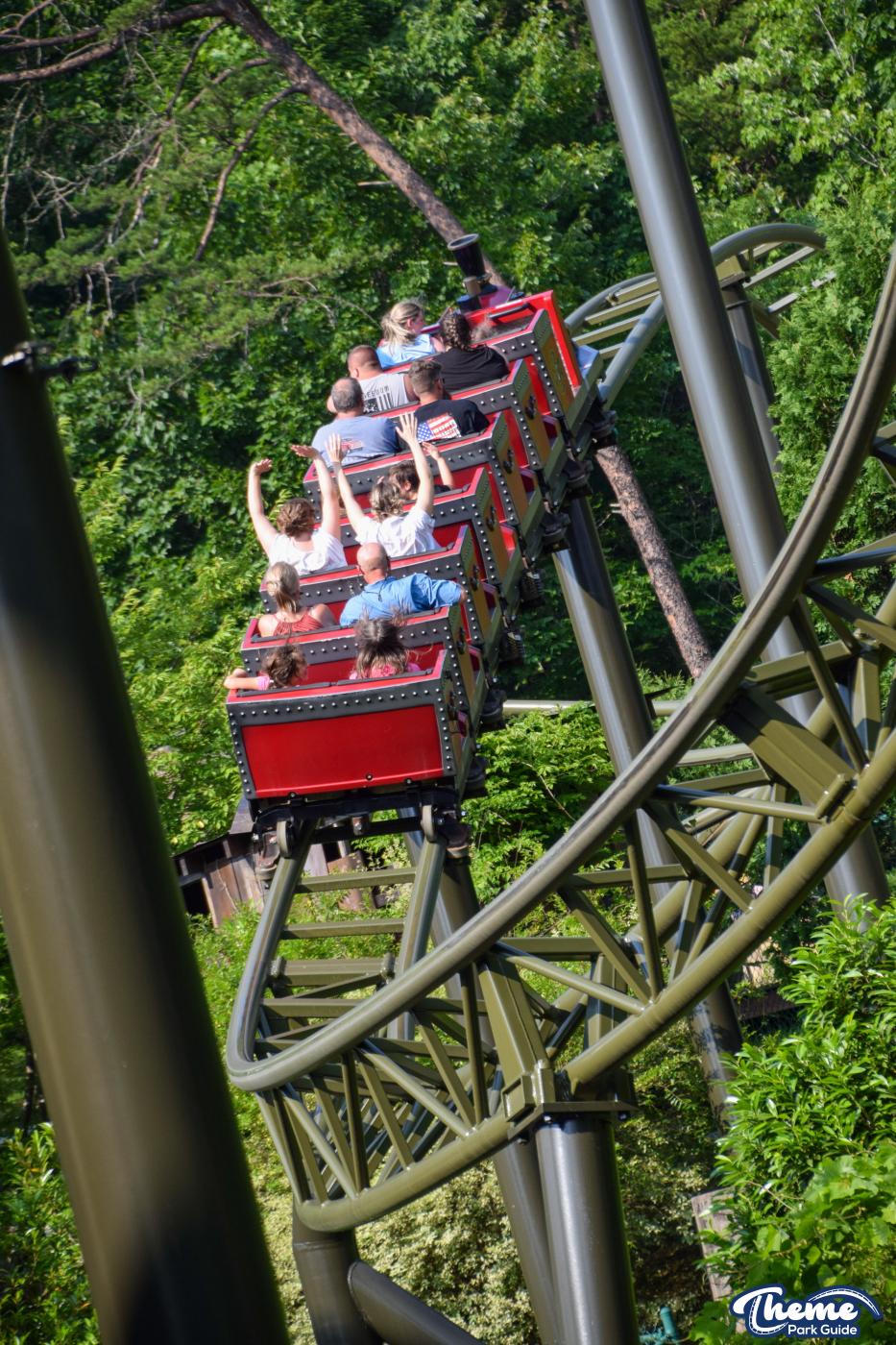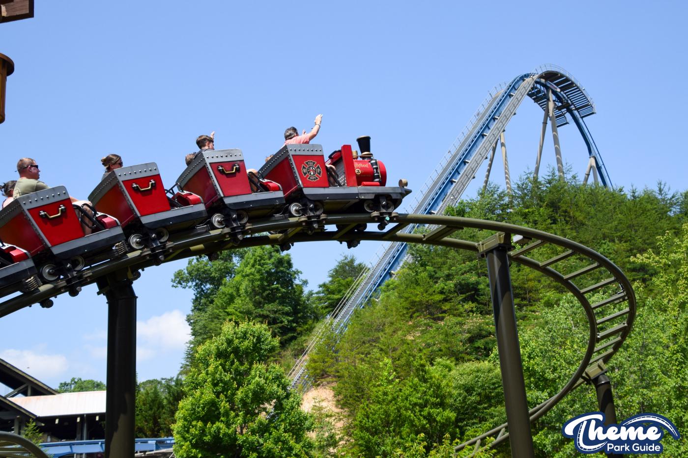 FireChaser Express is a family-thrill coaster themed around volunteer firefighters and explosive emergencies. Riders launch forward from the station, zooming through mild airtime hills and scenic structures before arriving at a surprise story moment. From there, the coaster launches backward, sending guests racing in reverse through the rest of the course. Its dual-direction layout makes it fun and unpredictable for all ages.