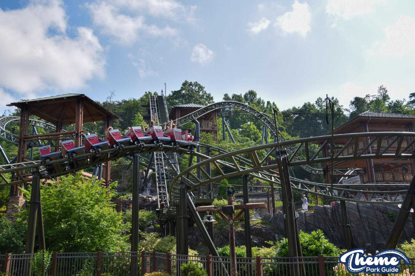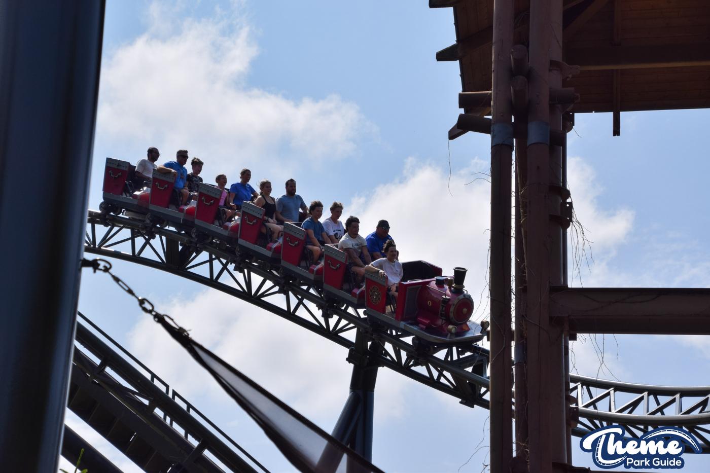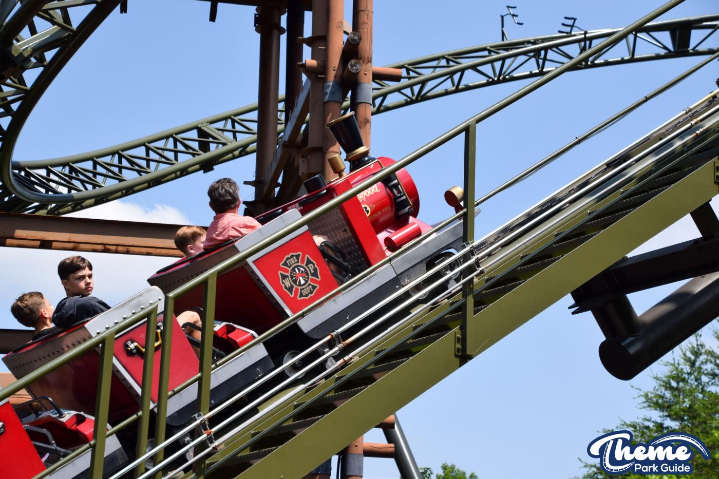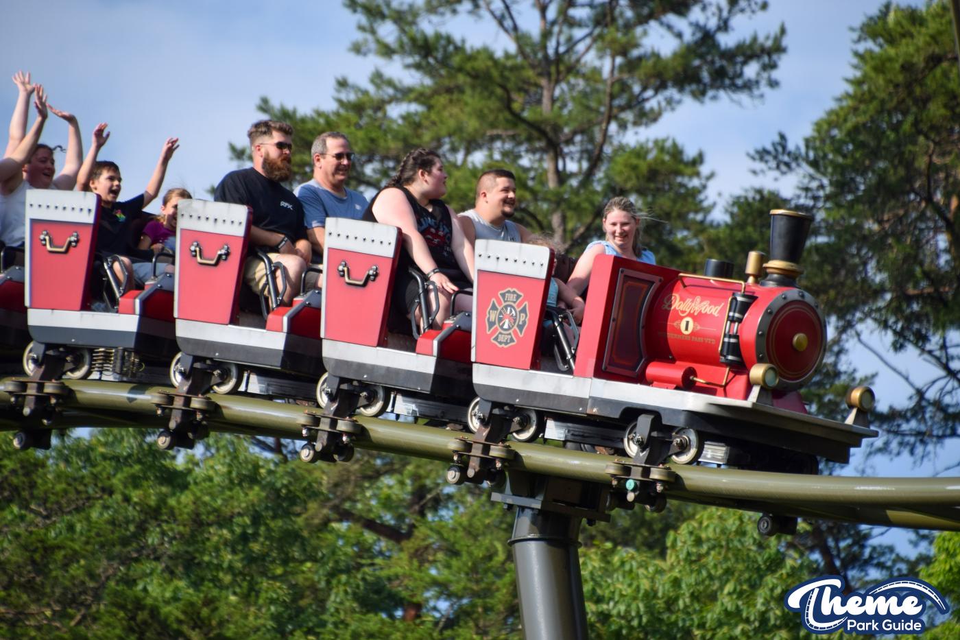 FireChaser Express is a family-thrill coaster themed around volunteer firefighters and explosive emergencies. Riders launch forward from the station, zooming through mild airtime hills and scenic structures before arriving at a surprise story moment. From there, the coaster launches backward, sending guests racing in reverse through the rest of the course. Its dual-direction layout makes it fun and unpredictable for all ages.