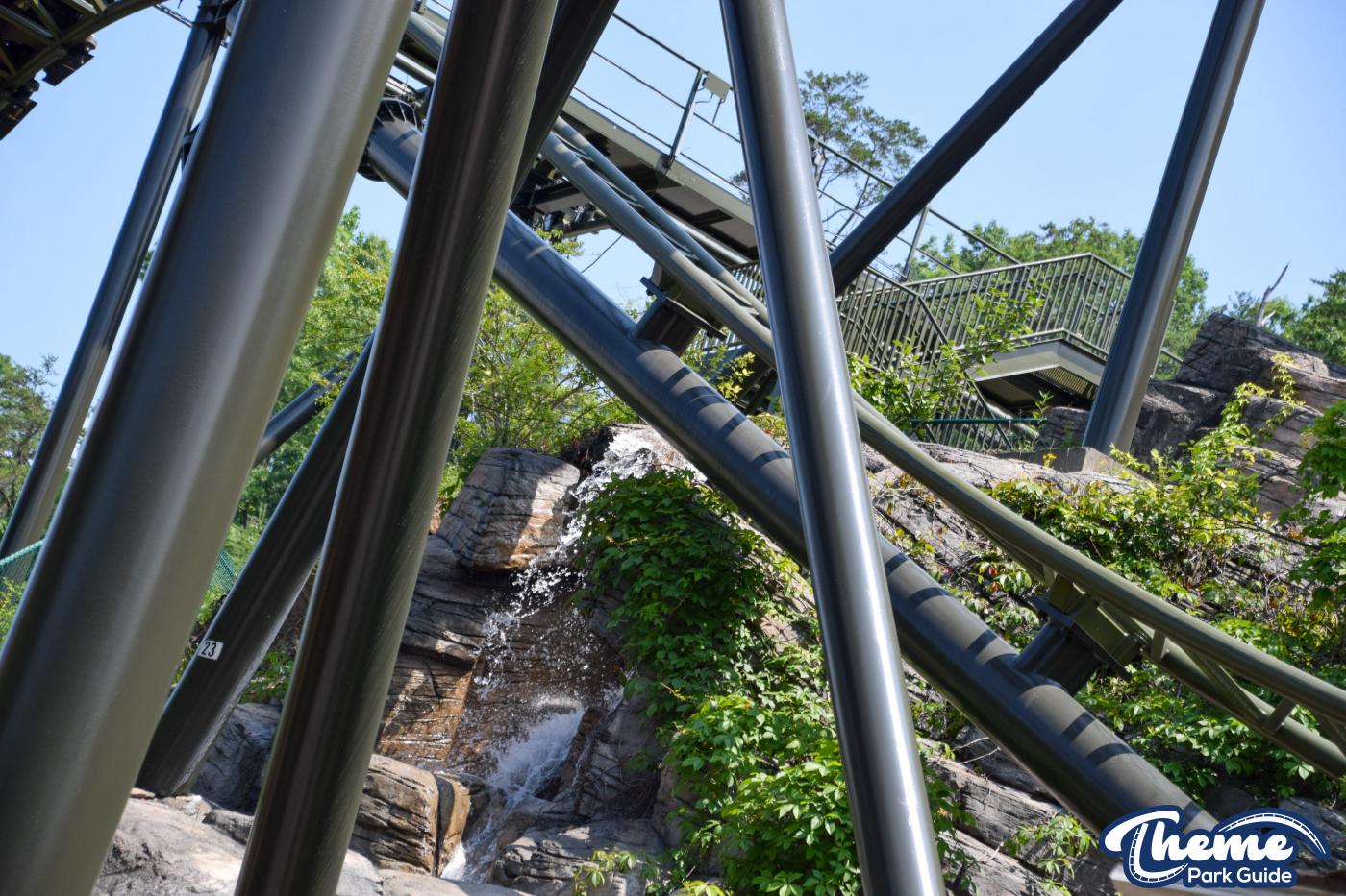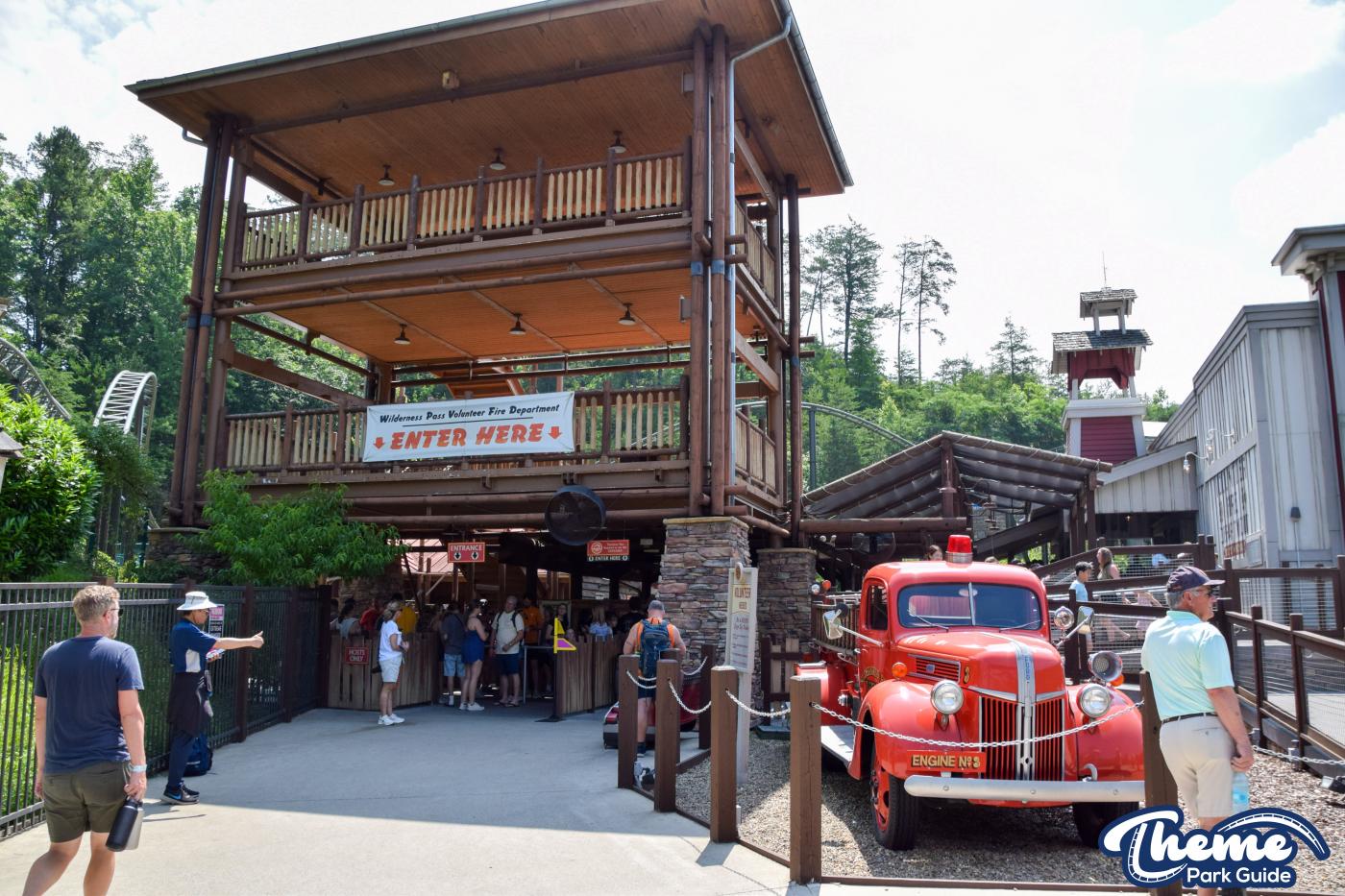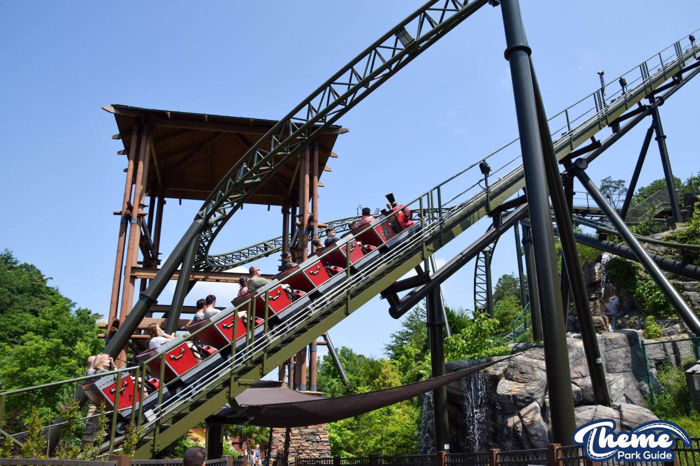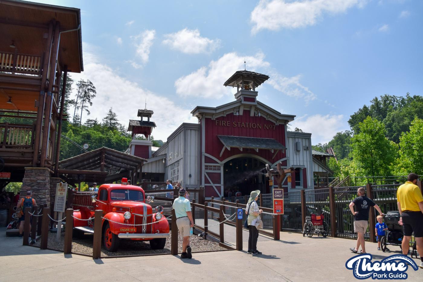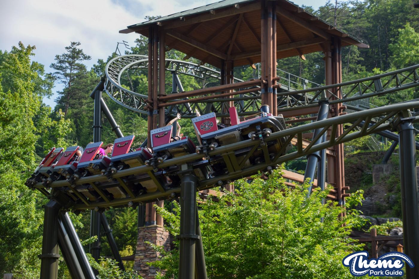 FireChaser Express is a family-thrill coaster themed around volunteer firefighters and explosive emergencies. Riders launch forward from the station, zooming through mild airtime hills and scenic structures before arriving at a surprise story moment. From there, the coaster launches backward, sending guests racing in reverse through the rest of the course. Its dual-direction layout makes it fun and unpredictable for all ages.