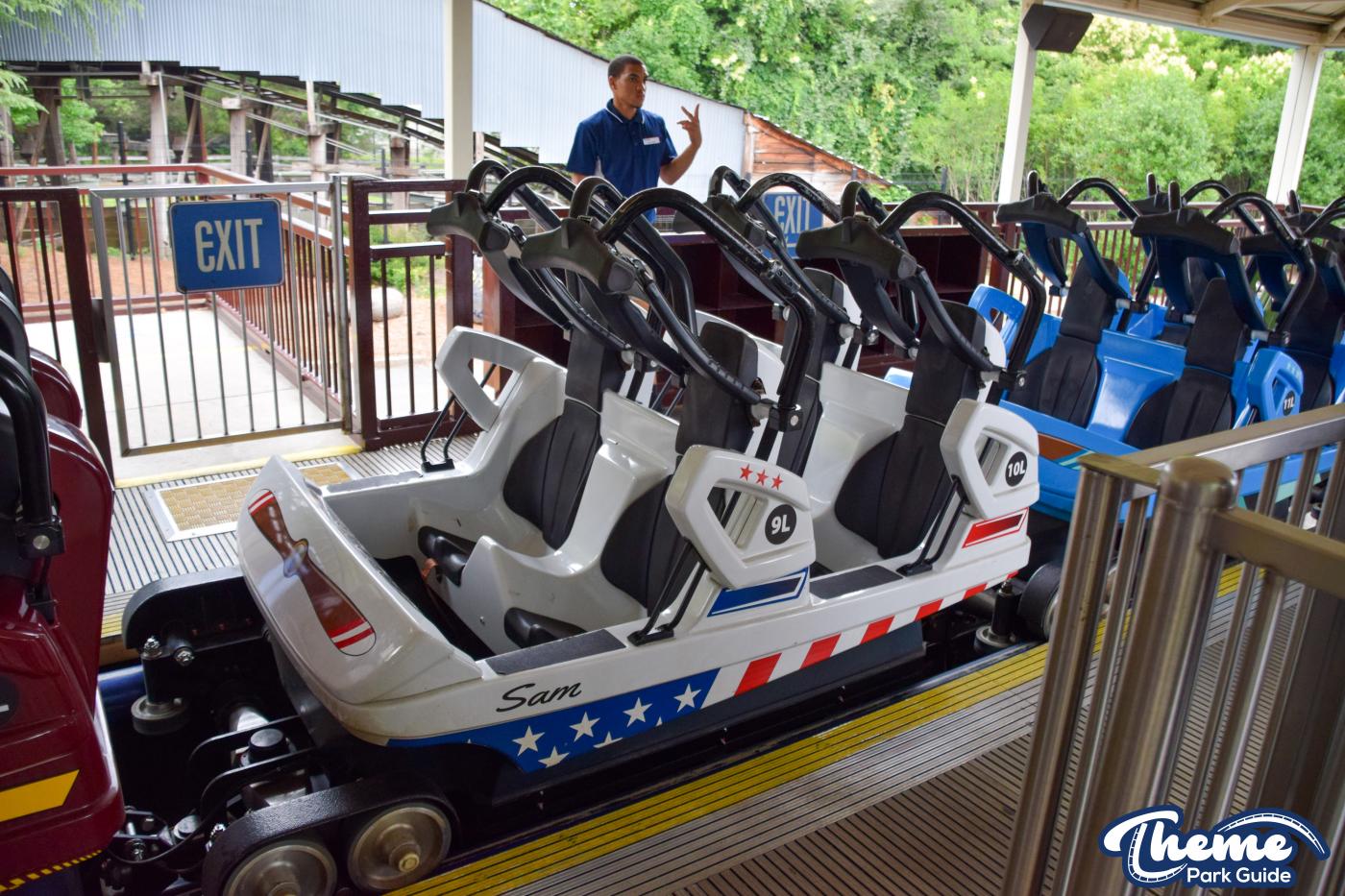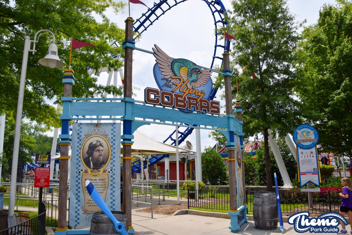 Flying Cobras is a boomerang-style coaster that sends riders forward through inversions before pulling them backward through the same track. This forward-and-reverse motion gives it a distinctive thrill. The bright cobra theming adds flair to the ride’s dramatic movement.