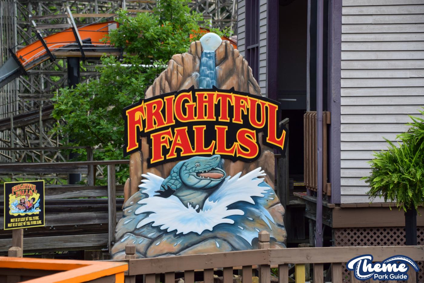 Frightful Falls is a classic log-flume ride that combines serene wooded scenery with a spooky theme. Riders drift through shadowy tunnels and past eerie decor before being sent over a sudden final drop that splashes down into cool water. The mixture of suspense, atmospheric theming, and a refreshing finale makes it a longtime fan favorite.