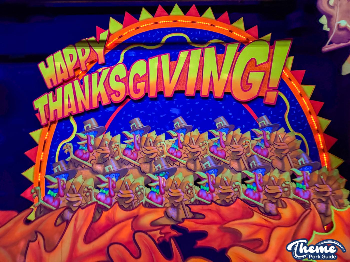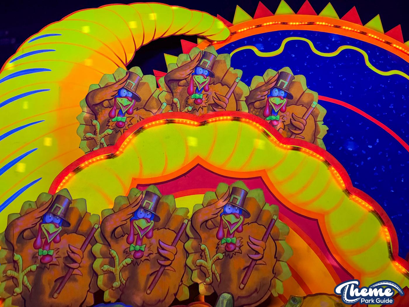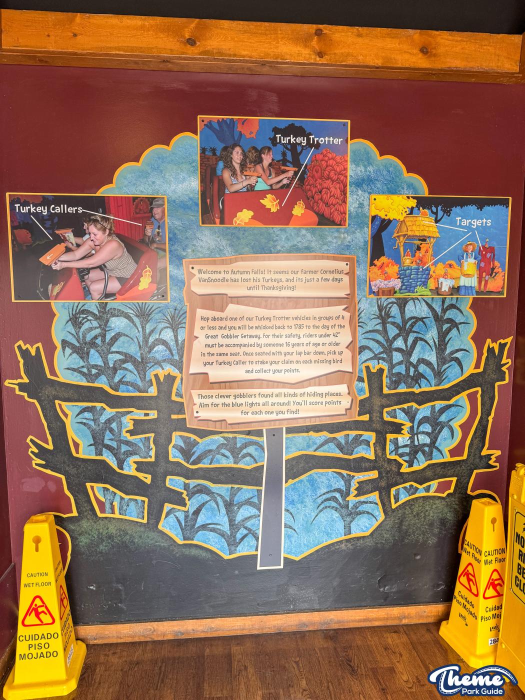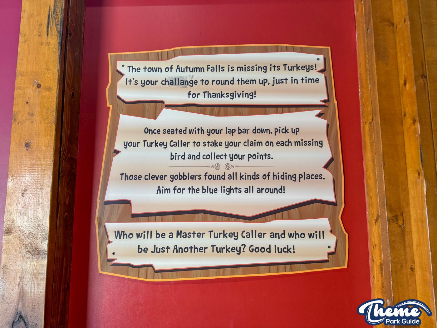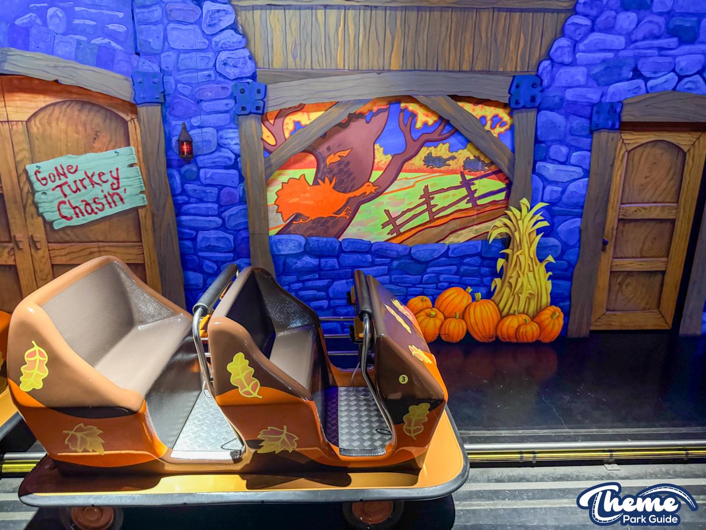 Gobbler Getaway is a charming, family-friendly dark ride located in Holiday World’s Thanksgiving section. Guests board slow-moving vehicles equipped with “turkey callers,” which they use to help the citizens of the fictional town of Autumn Falls round up runaway turkeys before the big holiday feast. The ride blends whimsical sets, gentle humor, and interactive competition, making it enjoyable for all ages and a perfect break from the park’s high-intensity attractions.
