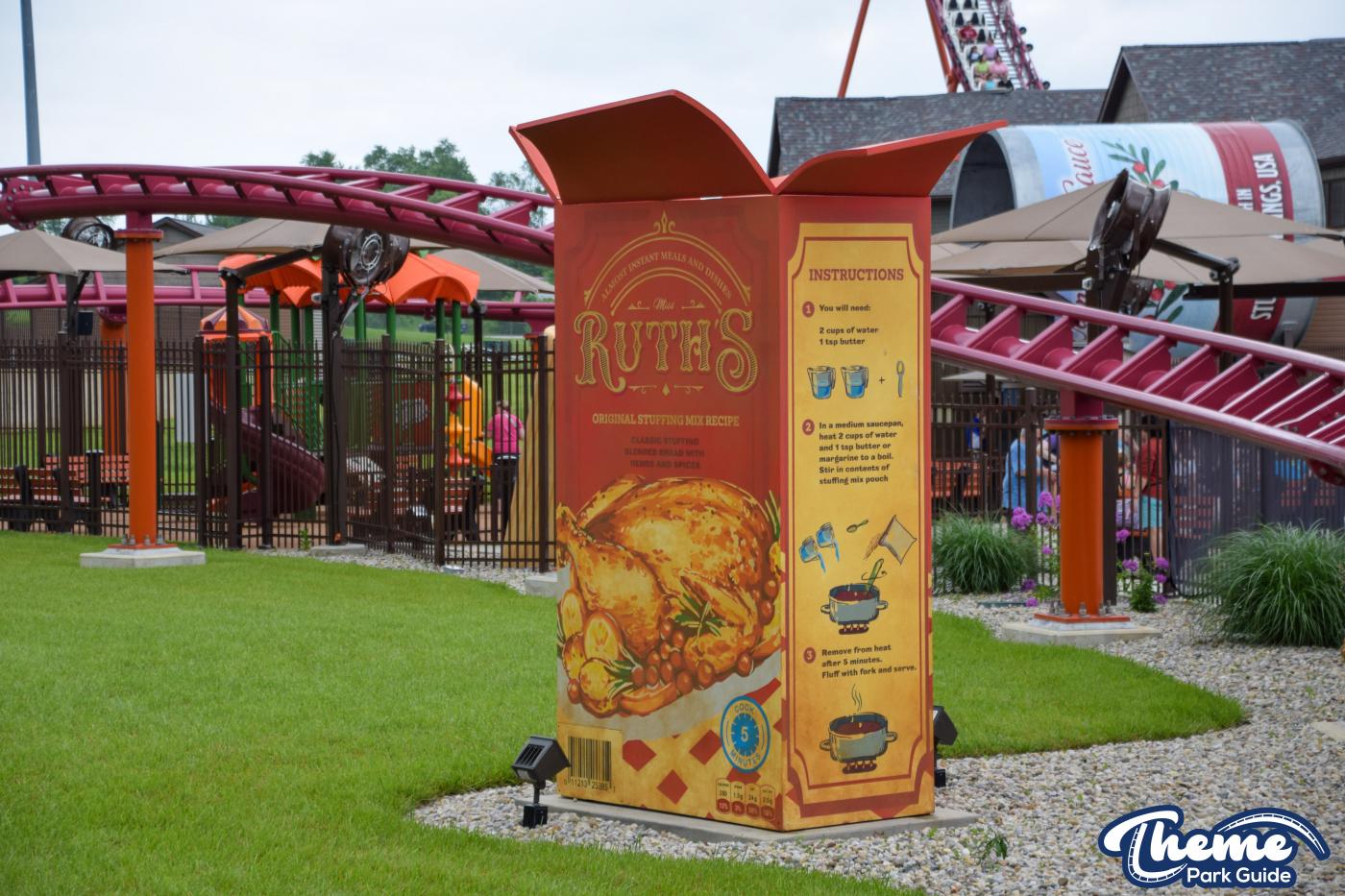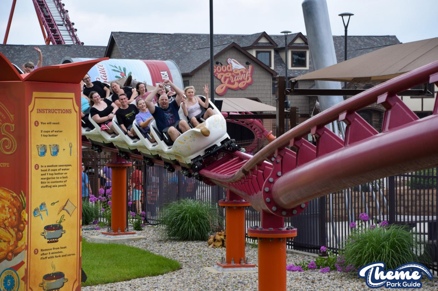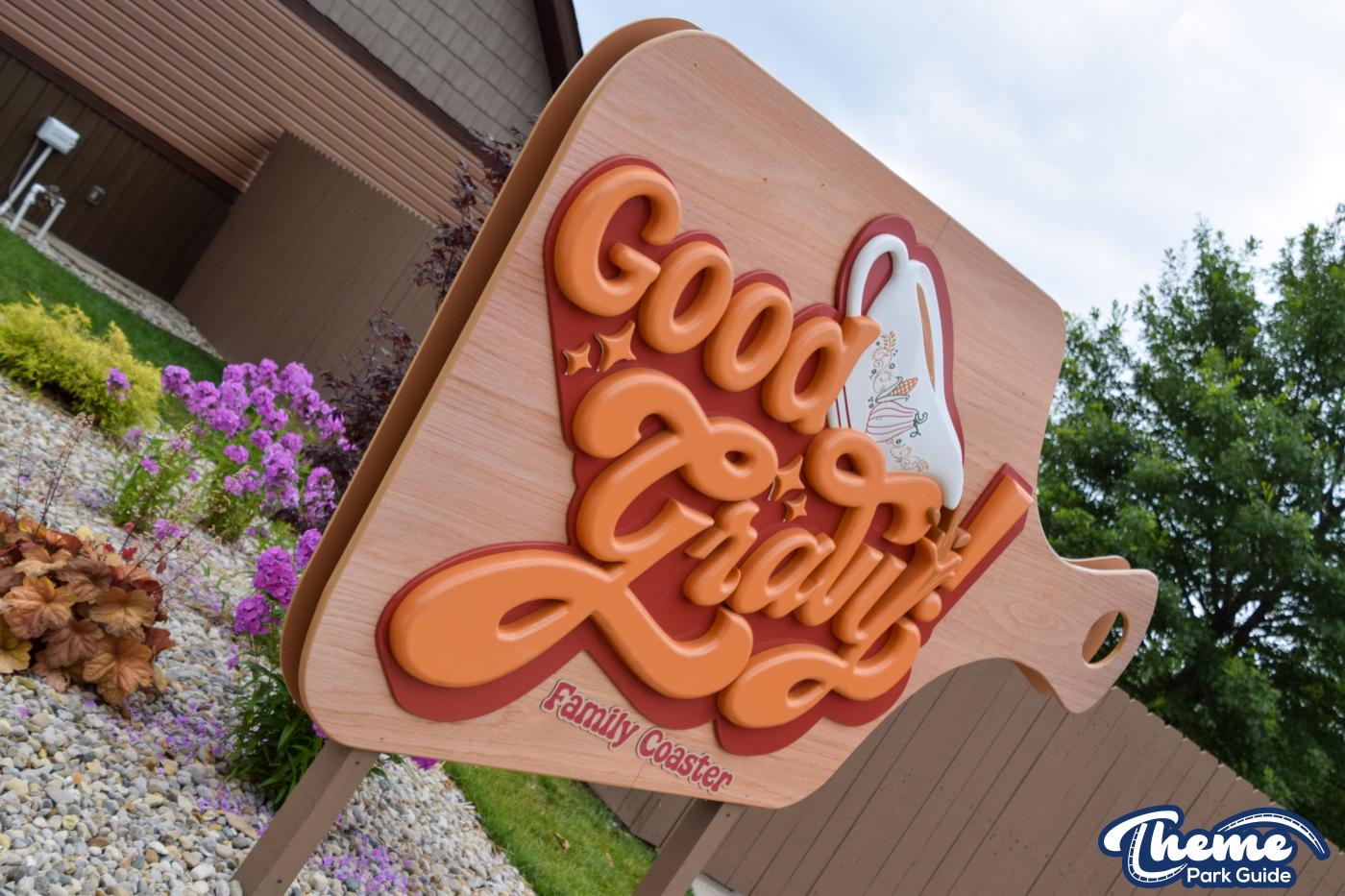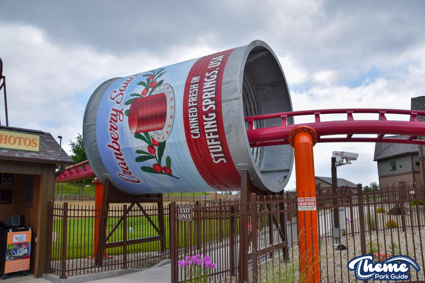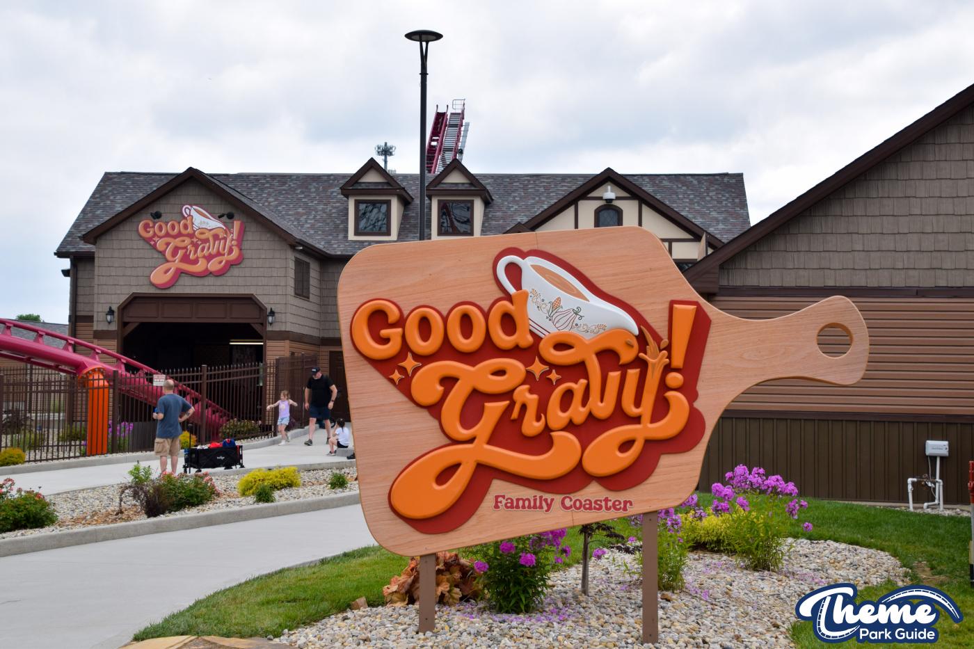 Good Gravy! is a whimsically themed family coaster centered around the playful chaos of Thanksgiving cooking. Guests board “gravy boat” themed trains and race through oversized kitchen props such as giant milk cartons, whisks, and cans of cranberry sauce. The track layout offers mild thrills with a charming sense of humor, making it delightful for kids and adults alike.