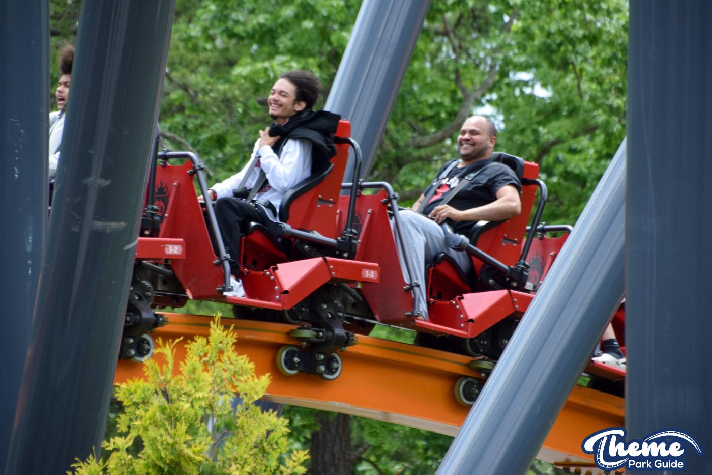 Its layout is designed for nonstop pacing—quick transitions, relentless speed, and tight maneuvers that give the impression of chasing (or being chased by) the mythical Jersey Devil itself. The theming features eerie woodland elements, rustic station design, and storytelling touches that contribute to the ride’s mysterious atmosphere. With its combination of intense thrills and a unique ride system, the Jersey Devil Coaster stands out as one of Six Flags Great Adventure’s most innovative and exciting attractions.