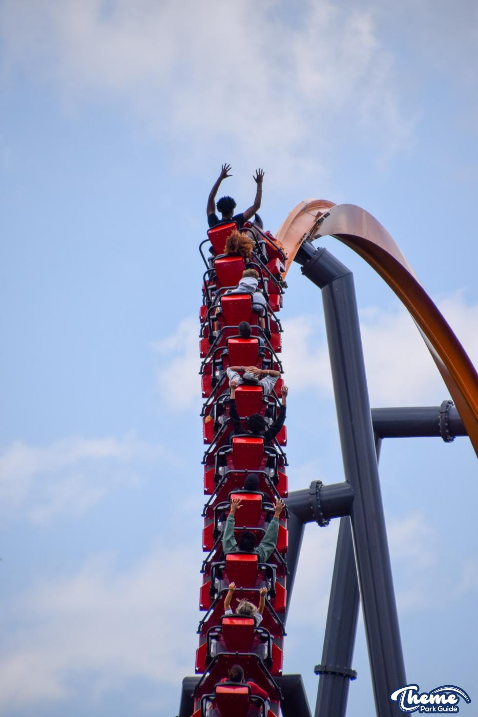 The Jersey Devil Coaster is a record-breaking single-rail RMC (Rocky Mountain Construction) coaster themed after the legendary creature said to roam the Pine Barrens of New Jersey. With riders seated in a single-file inline train, the narrow monorail-style track delivers an unusually agile and smooth experience. The coaster begins with a towering lift hill that leads into a near-vertical first drop, followed by rapid airtime hills, off-axis turns, and a signature zero-gravity roll that creates a thrilling sensation of floating.