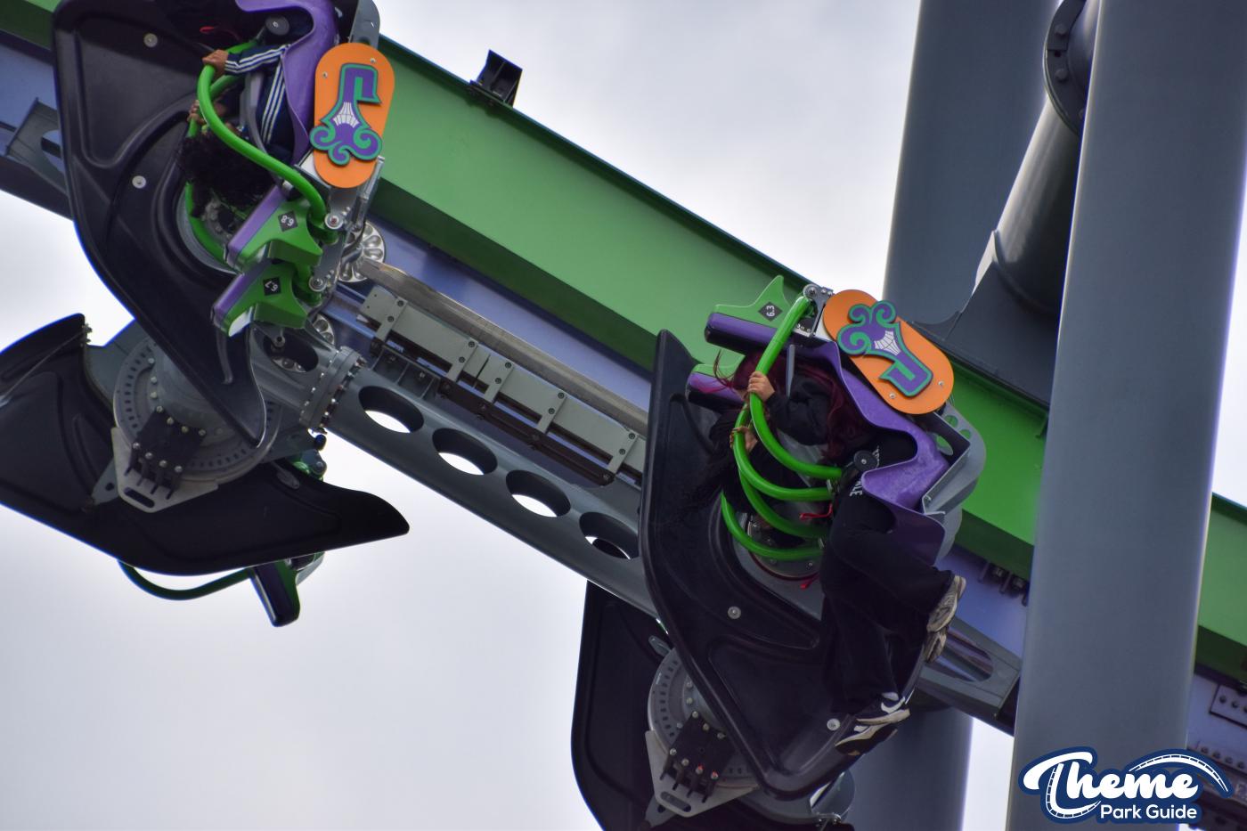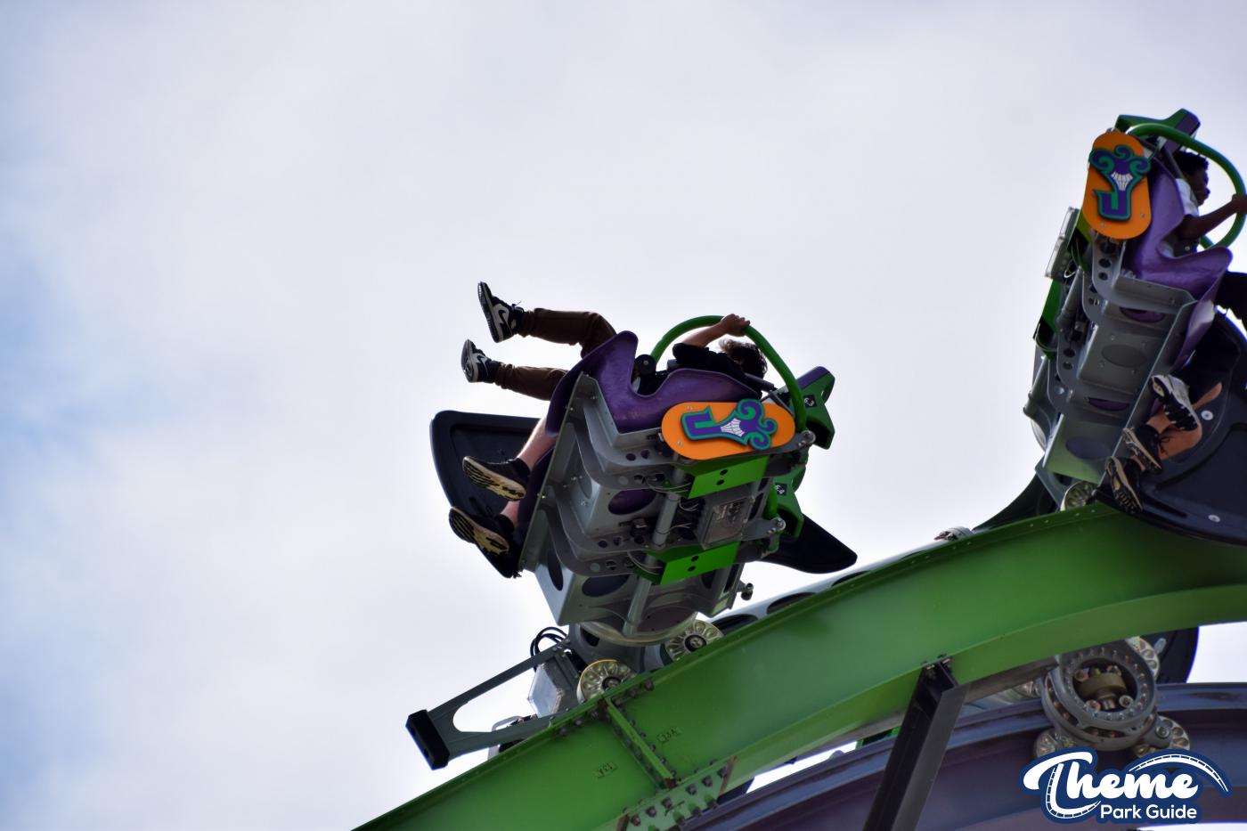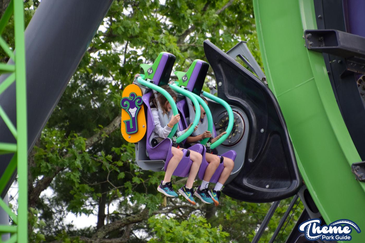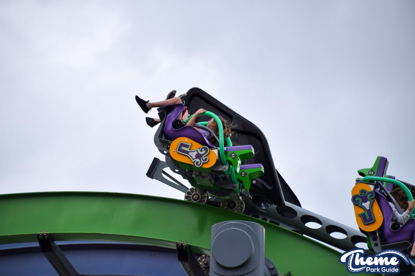 The Joker is a free-spin coaster with unpredictable movement. Cars rotate independently during the ride. Riders may flip multiple times or not at all. This randomness adds excitement. The ride features steep drops and twists. It offers a different experience every time.