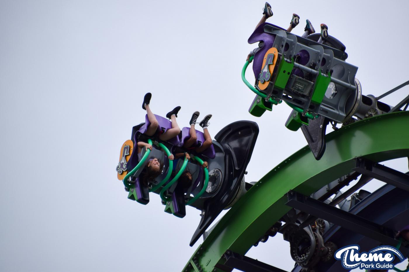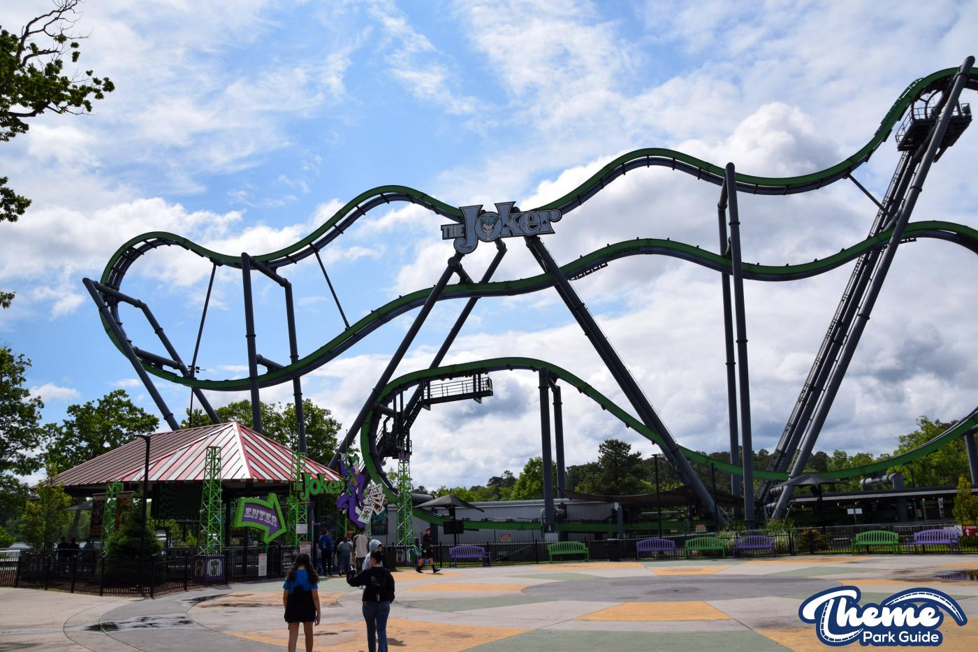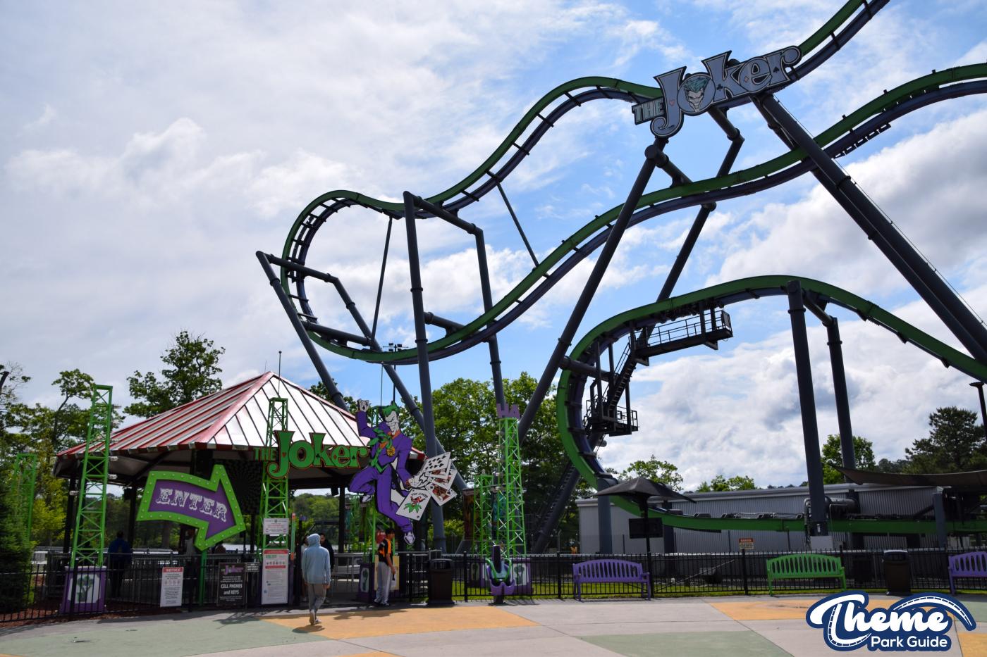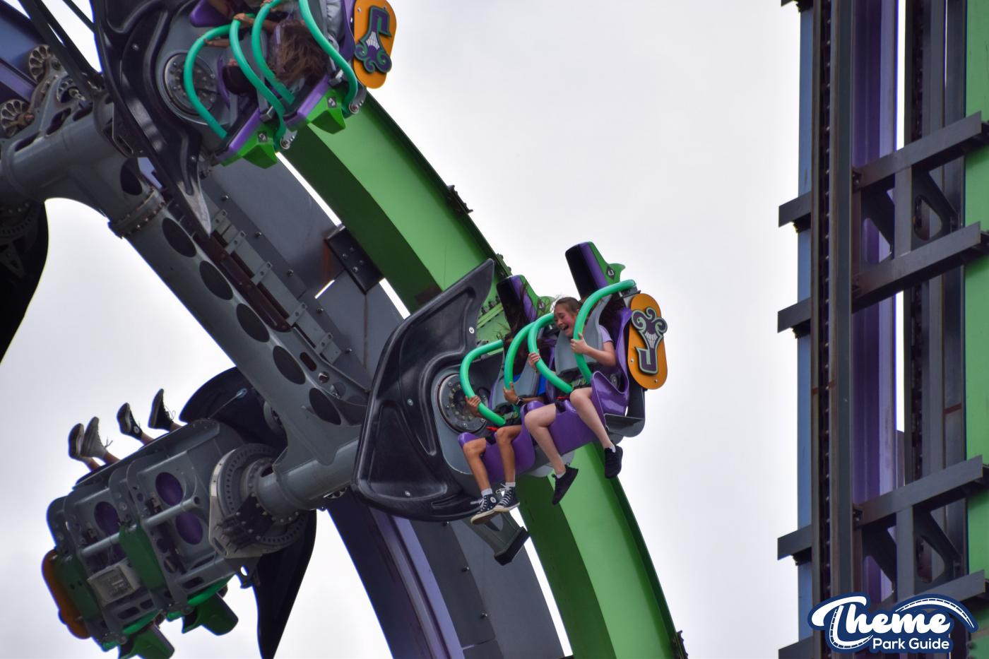 The Joker is a free-spin coaster with unpredictable movement. Cars rotate independently during the ride. Riders may flip multiple times or not at all. This randomness adds excitement. The ride features steep drops and twists. It offers a different experience every time.