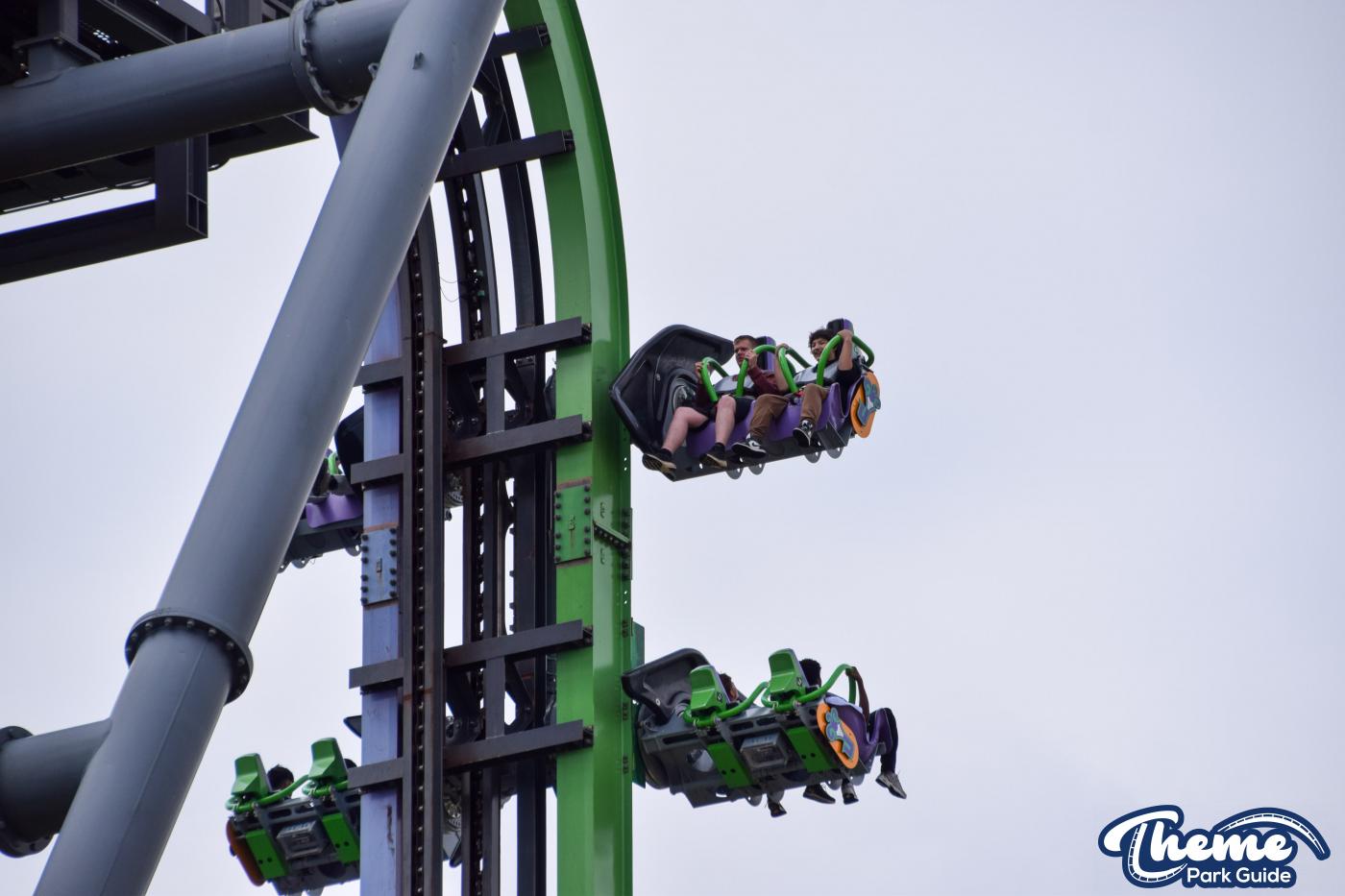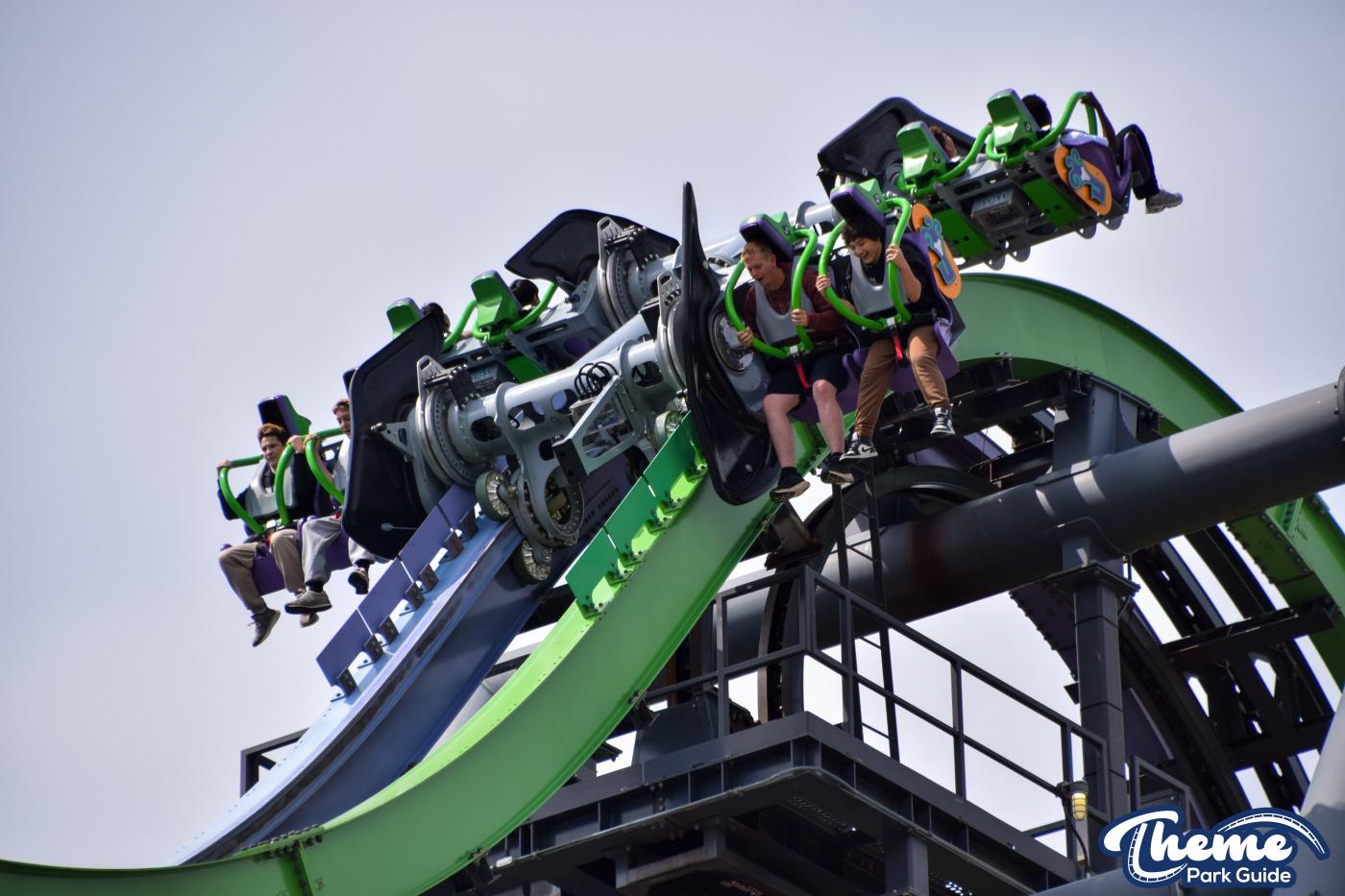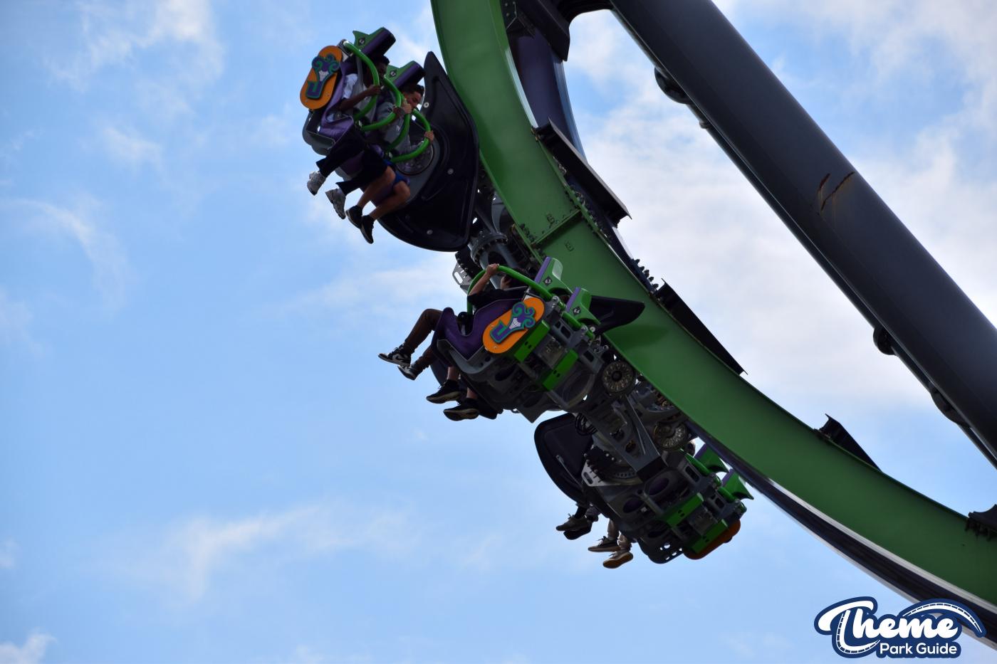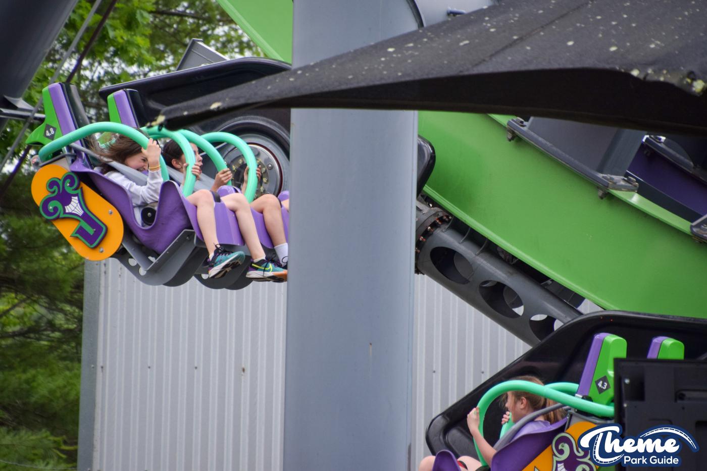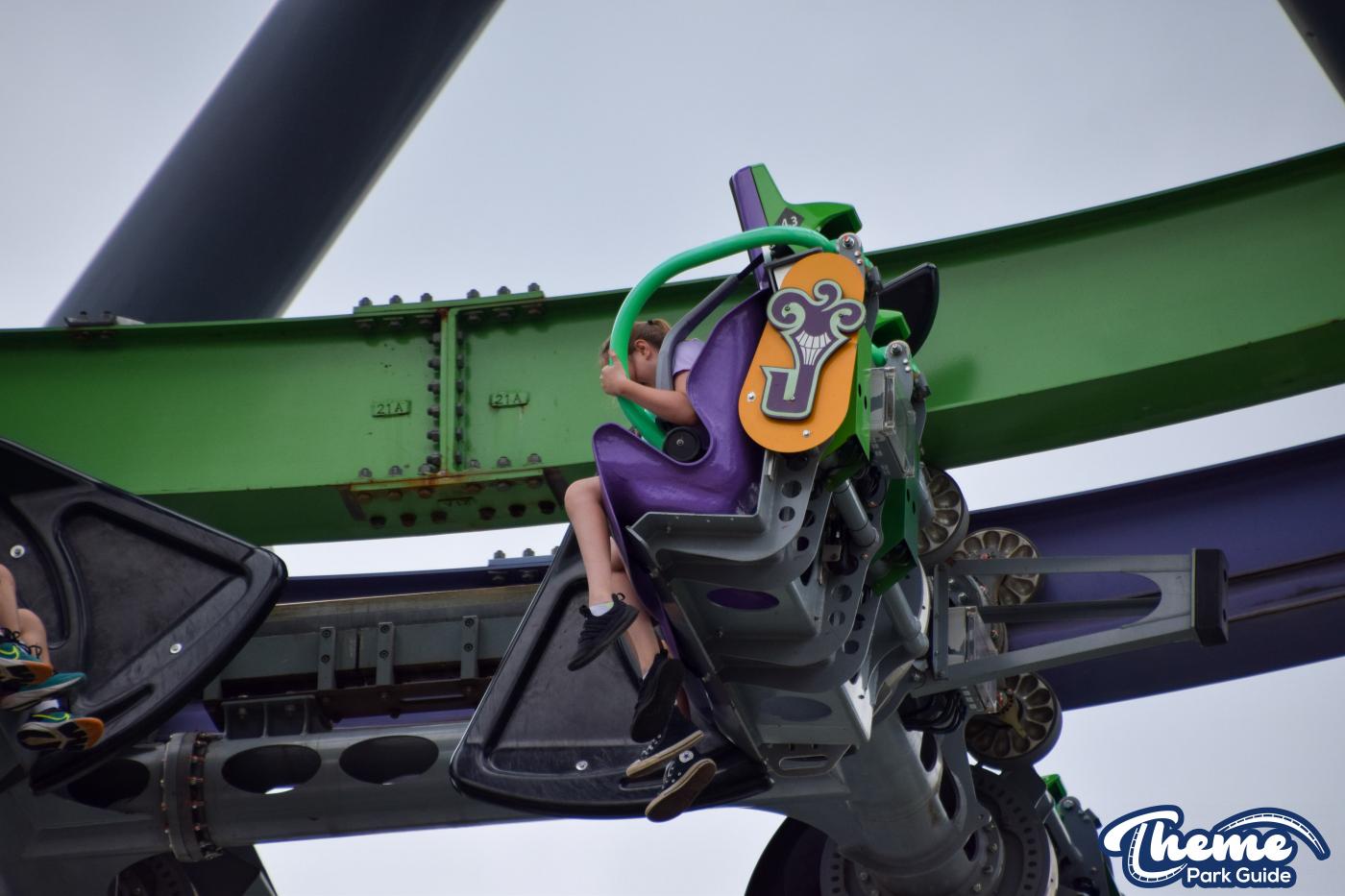 The Joker is a free-spin coaster with unpredictable movement. Cars rotate independently during the ride. Riders may flip multiple times or not at all. This randomness adds excitement. The ride features steep drops and twists. It offers a different experience every time.